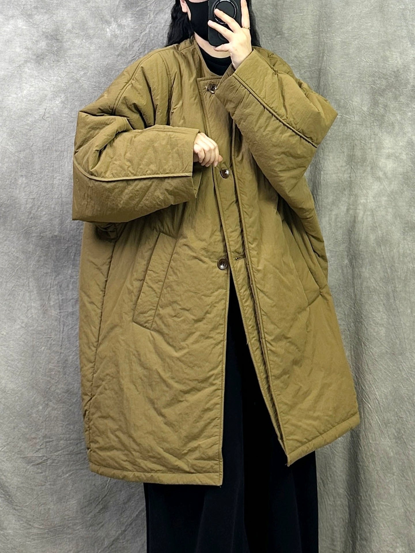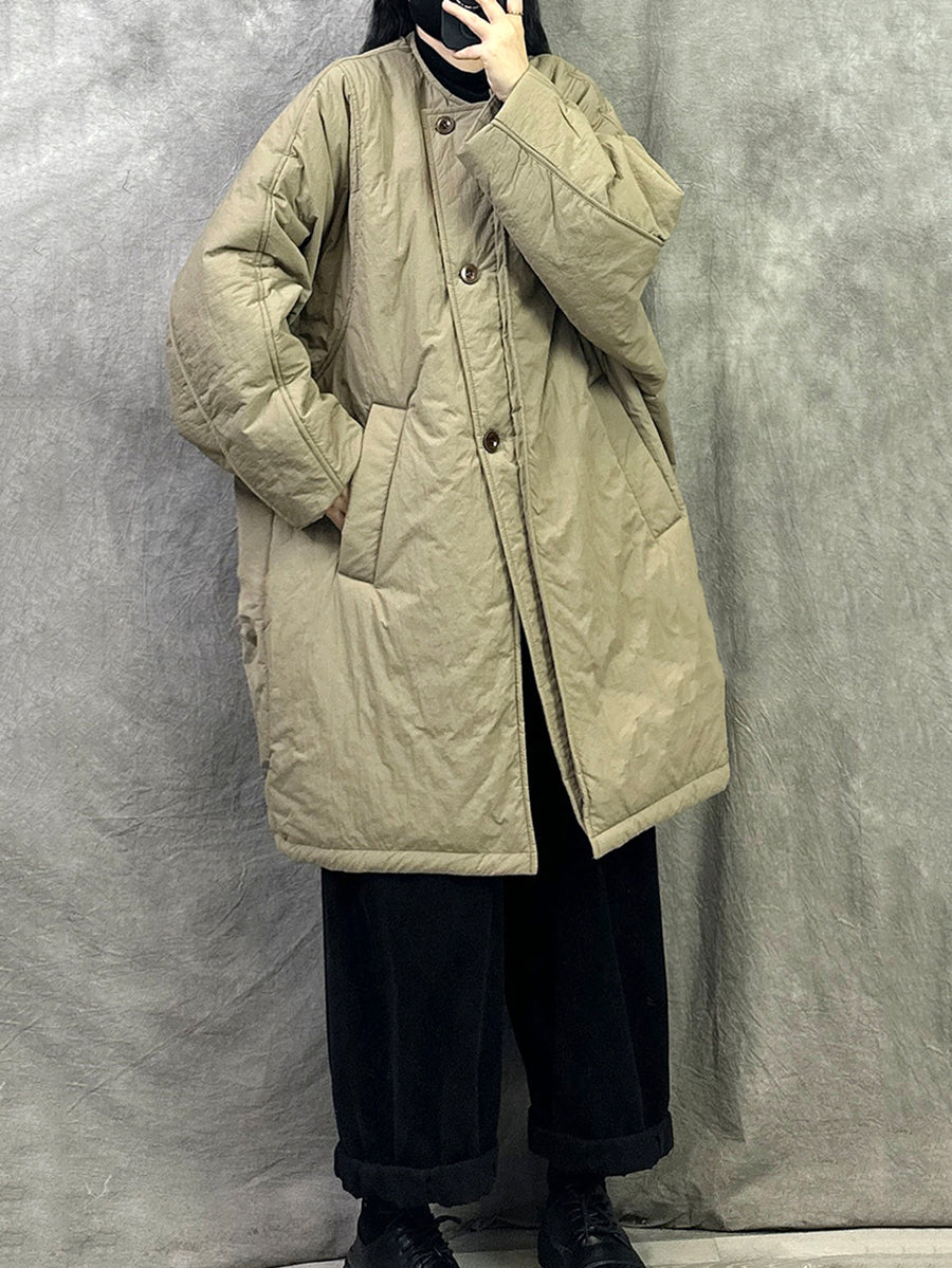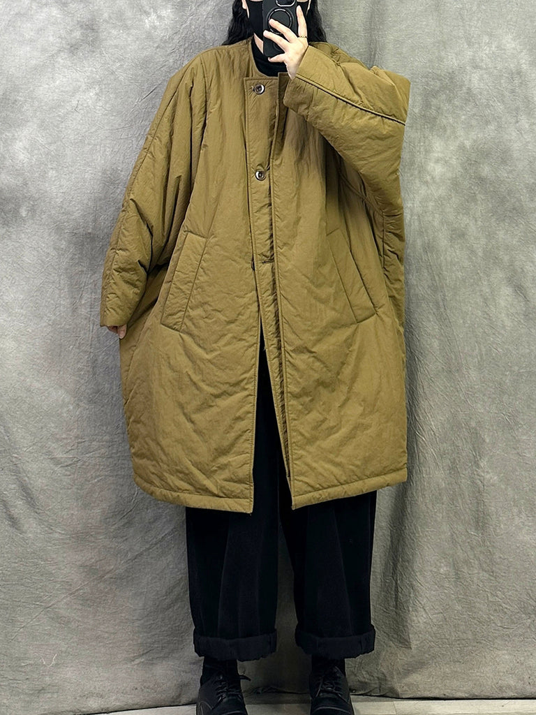 Women Winter Casual Pure Color Padded O-Neck Coat