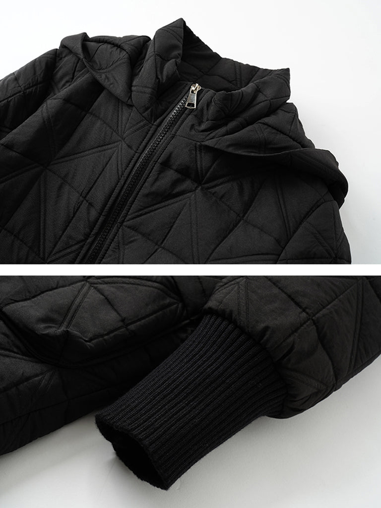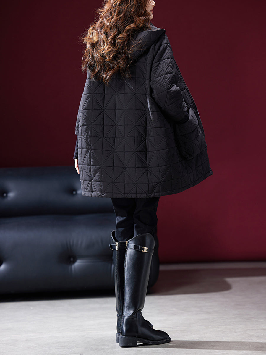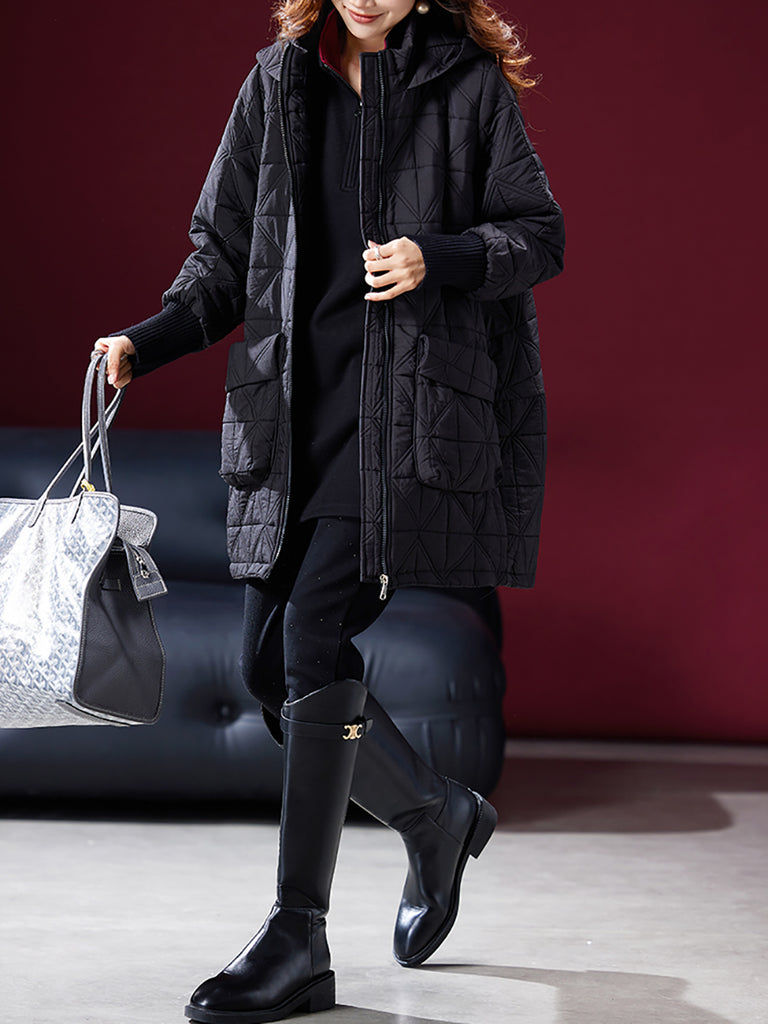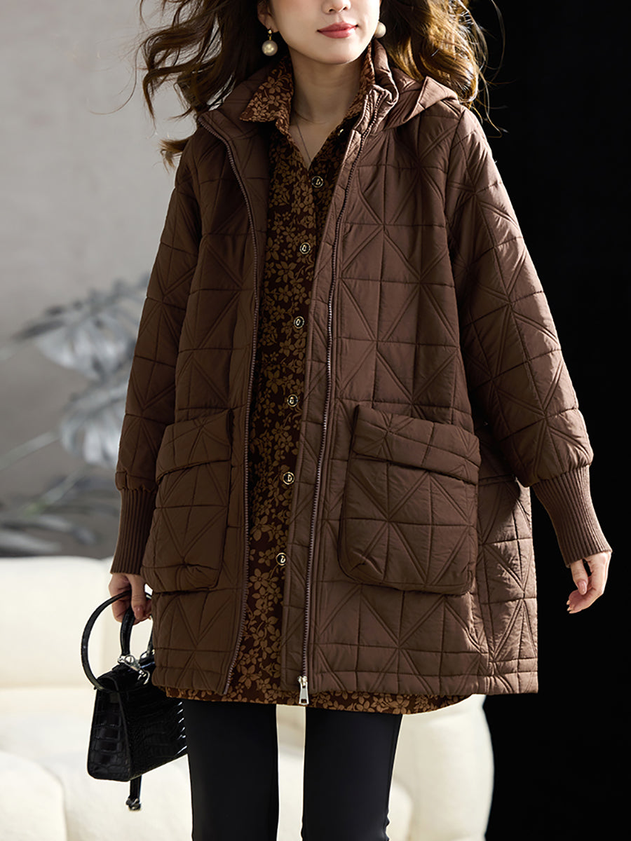 Women Winter Casual Pure Color Rhomboids Padded Hooded Coat