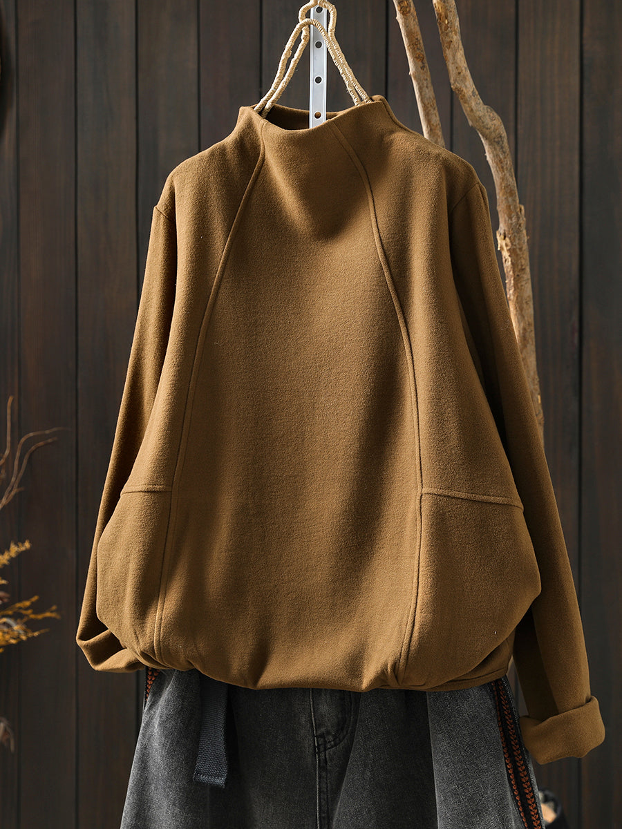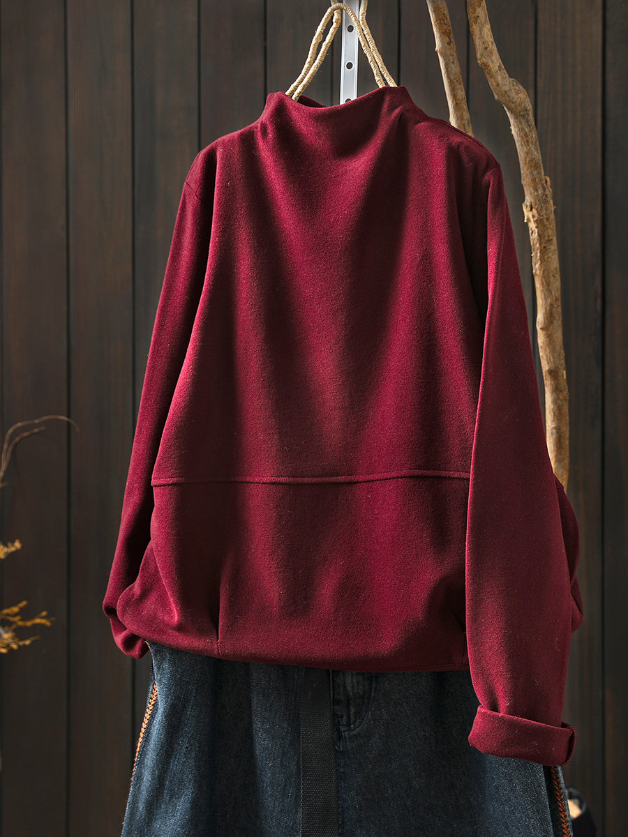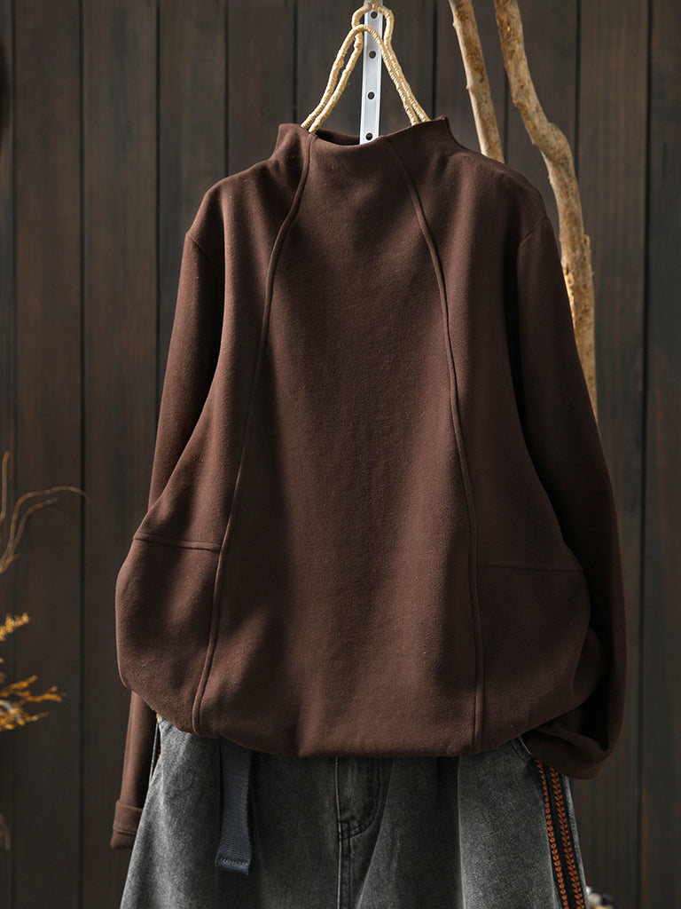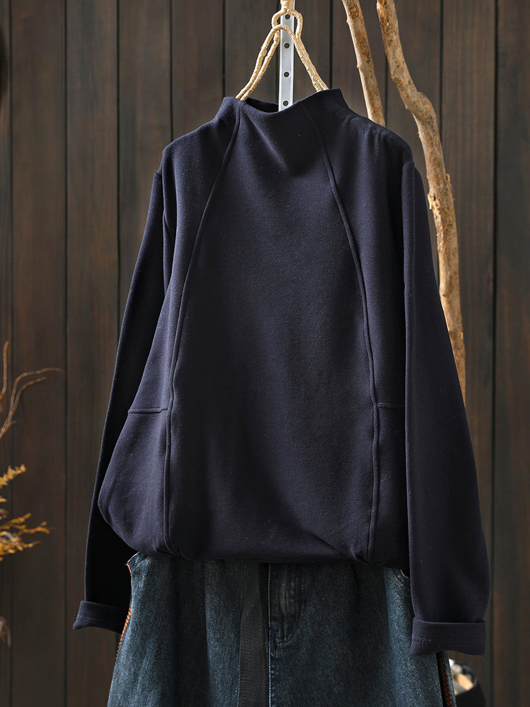 Women Winter Casual Pure Color Spliced Half-Turtleneck Blouse