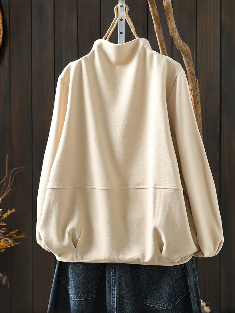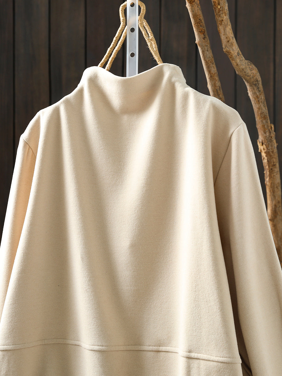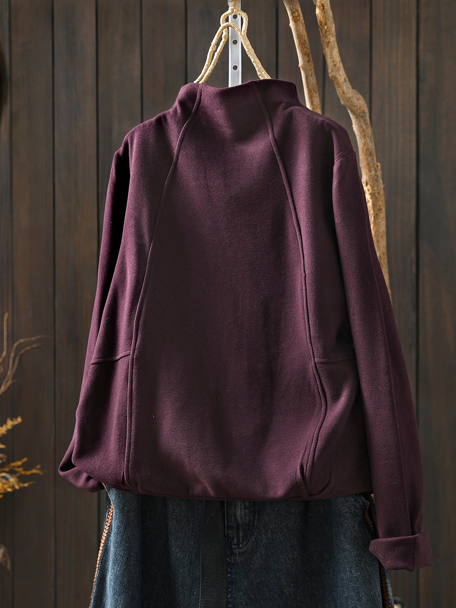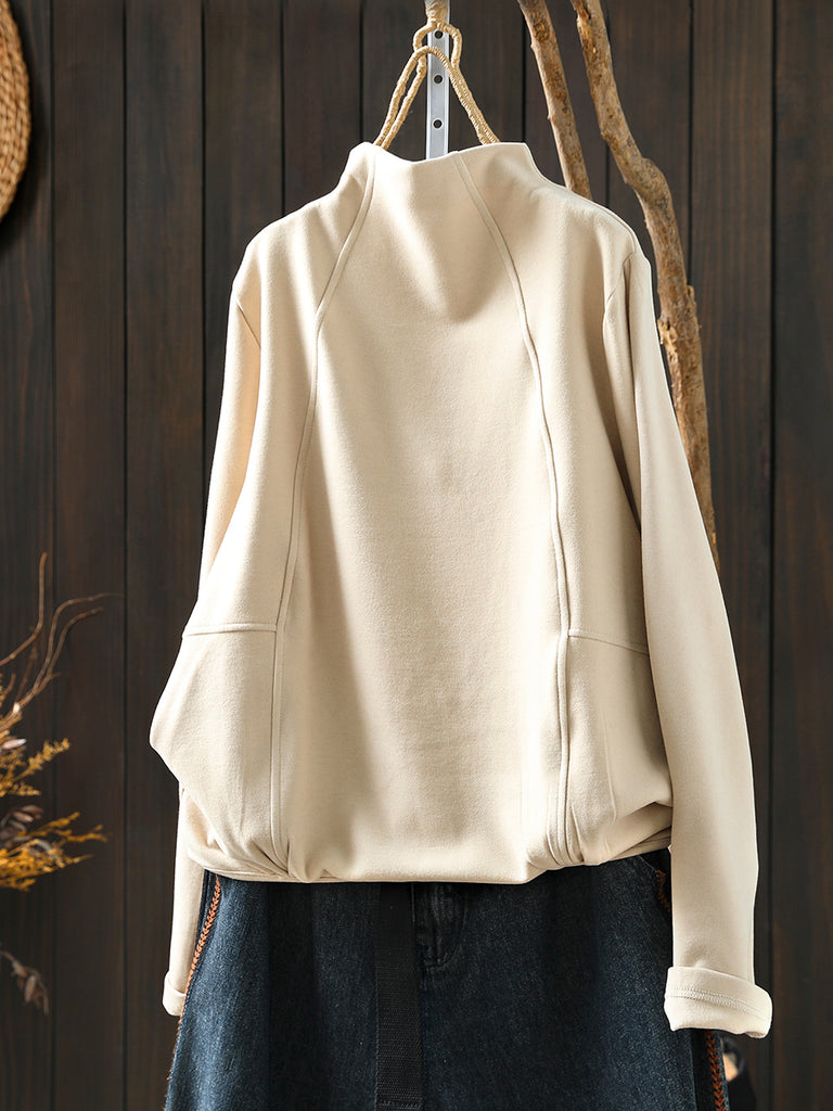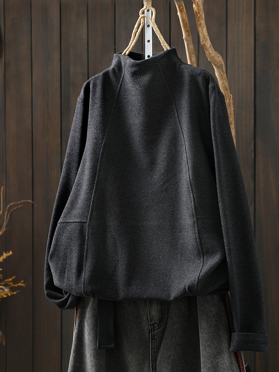 Women Winter Casual Pure Color Spliced Half-Turtleneck Blouse