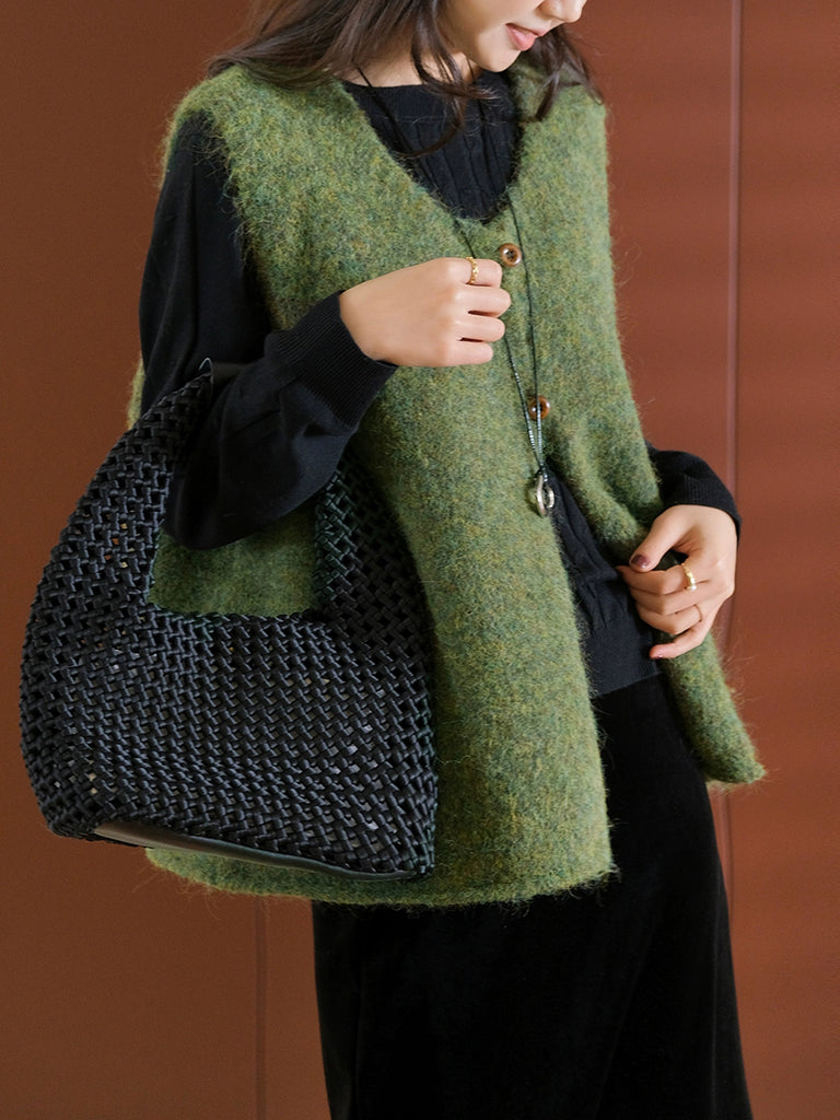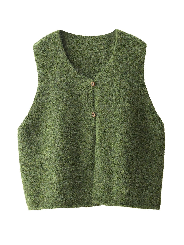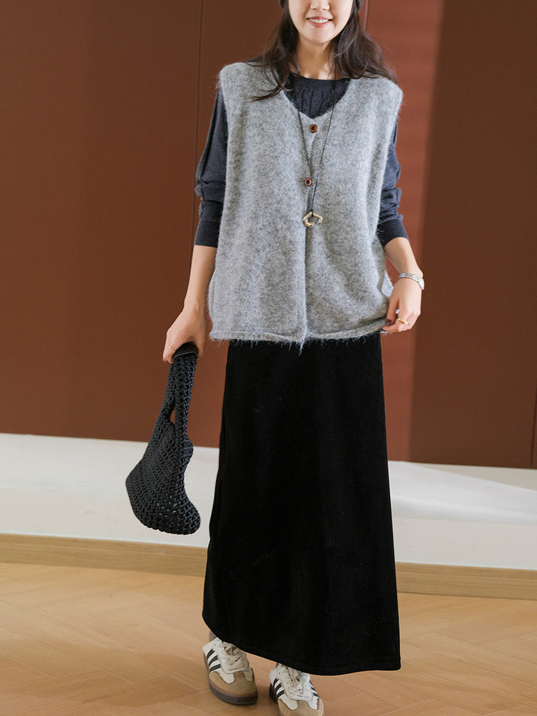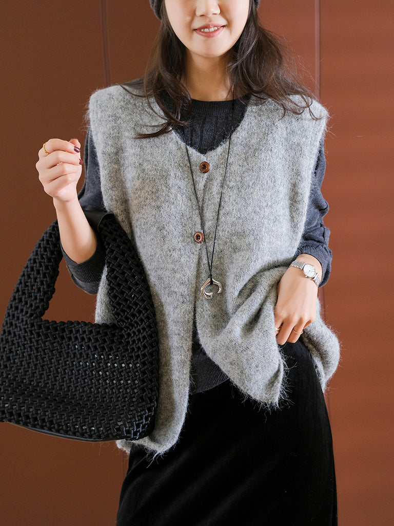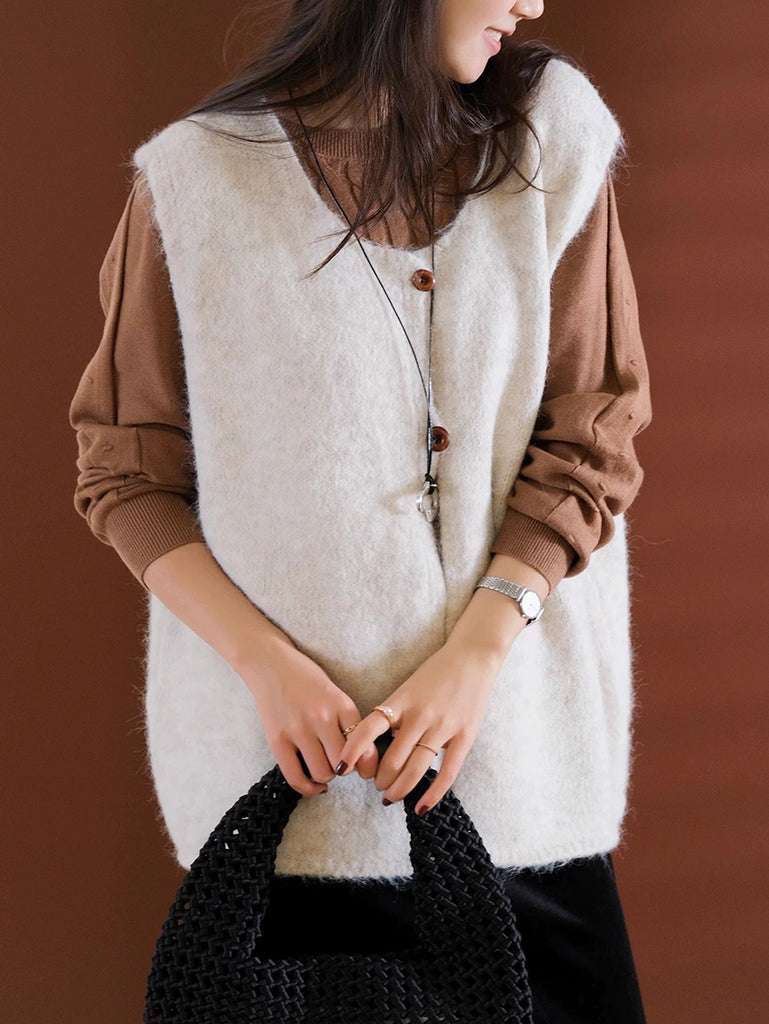 Women Winter Casual Pure Color V-Neck Wool Vest
