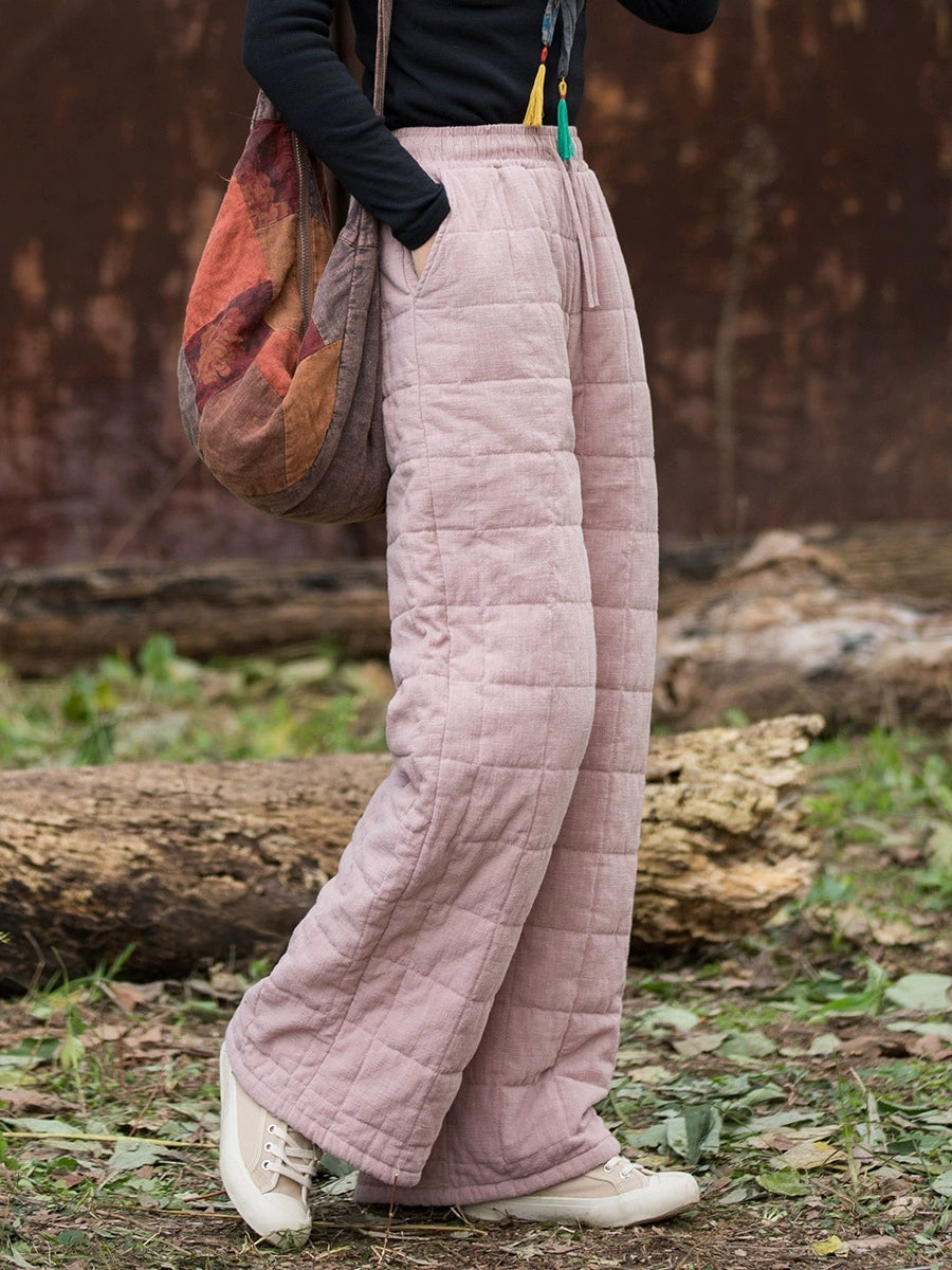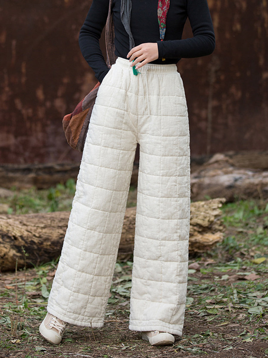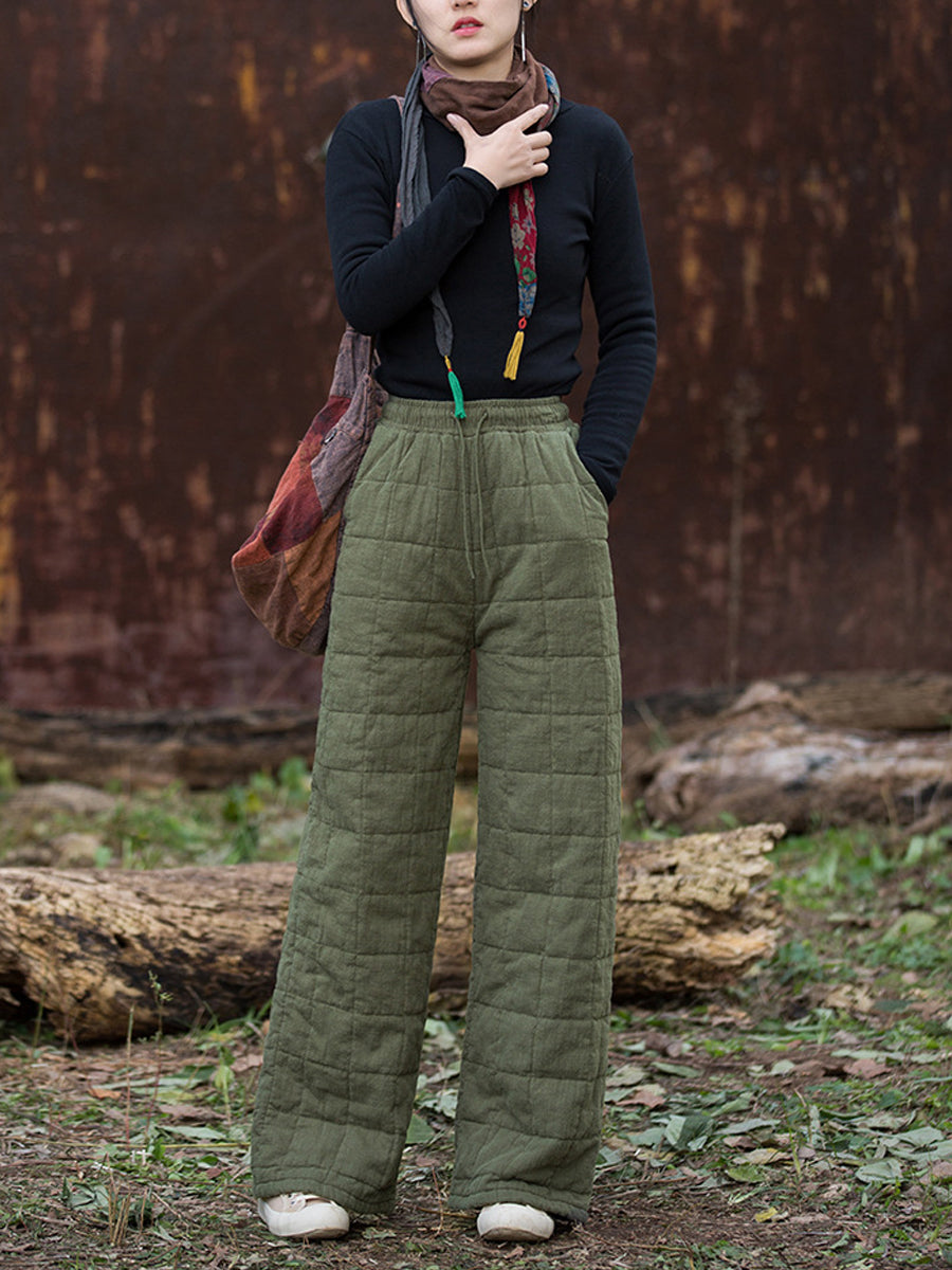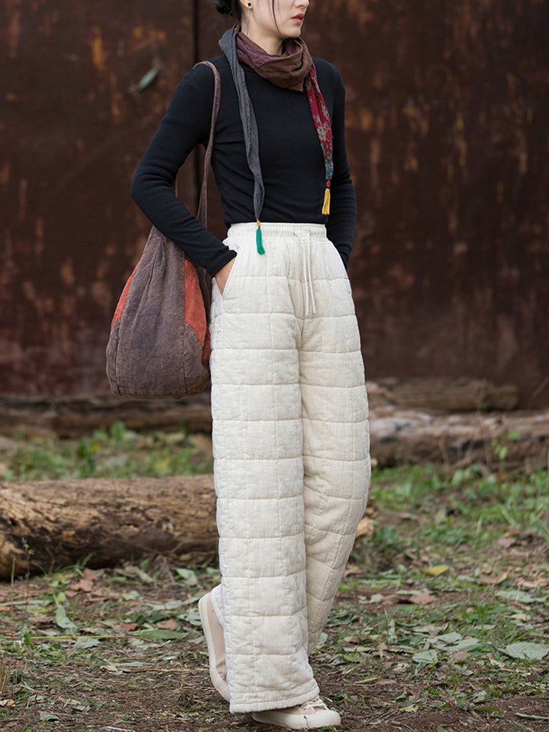 Women Winter Casual Ramie Fleece-lined Straight Pants