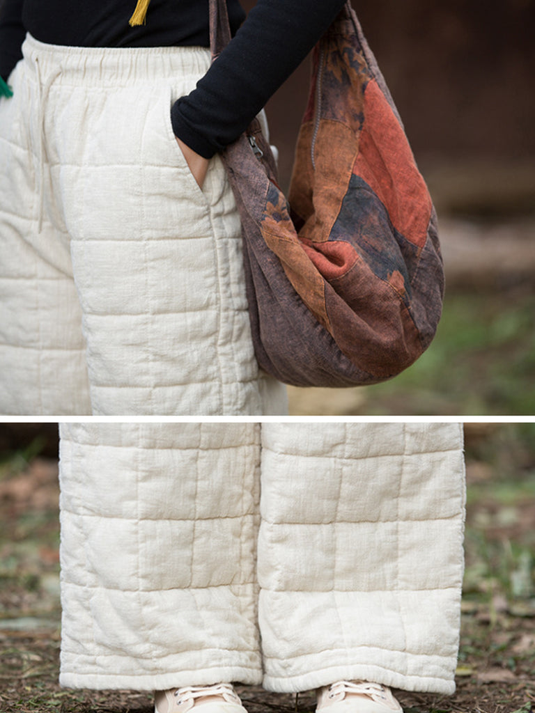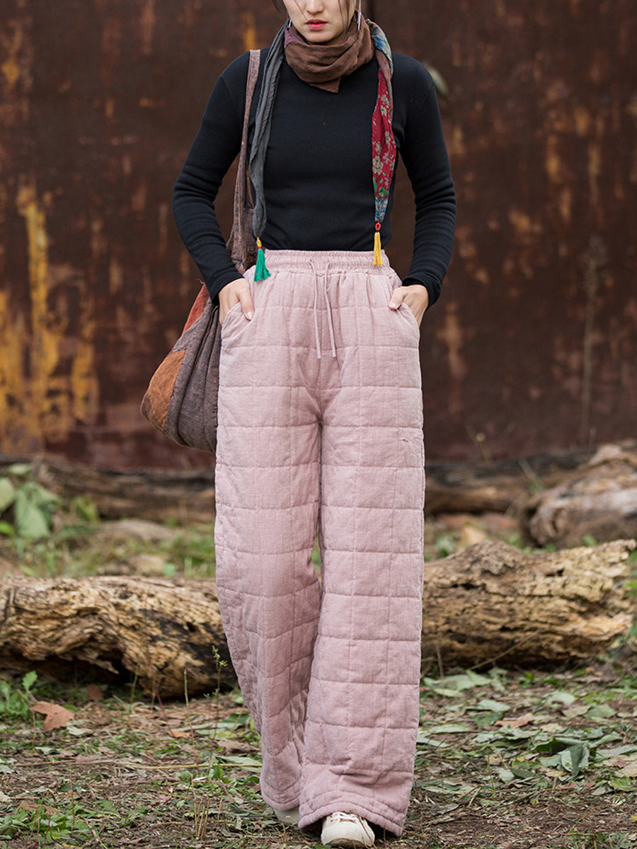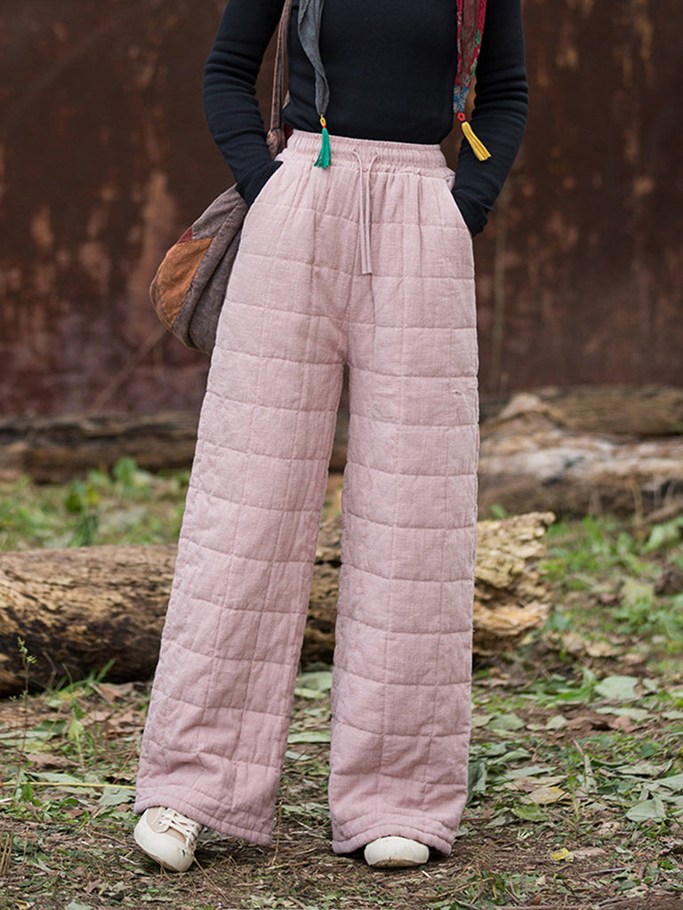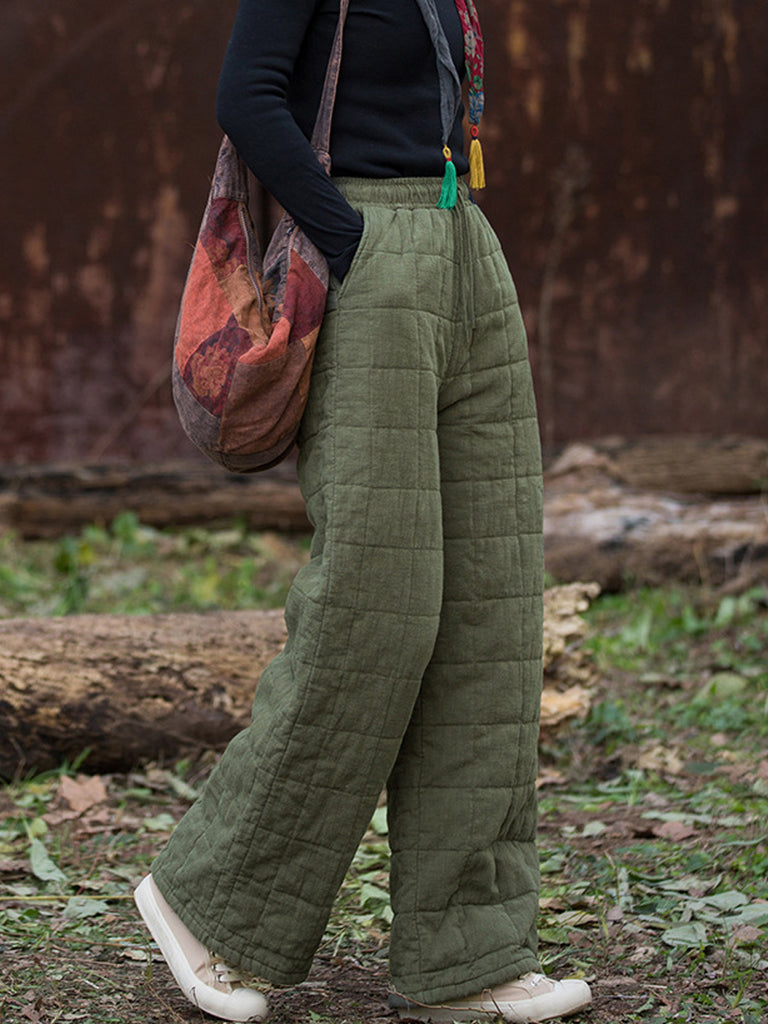 Women Winter Casual Ramie Fleece-lined Straight Pants