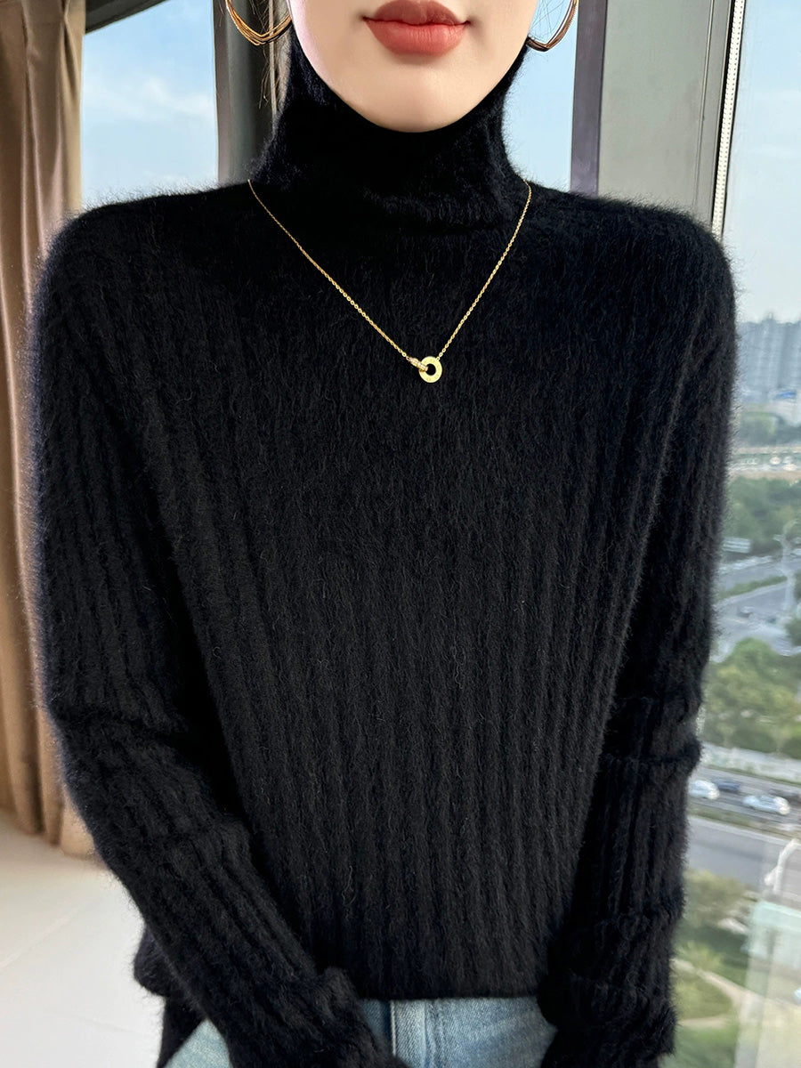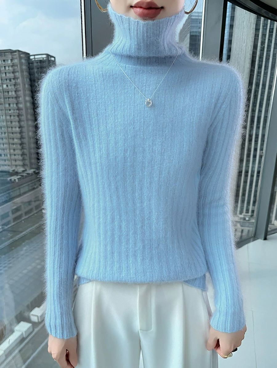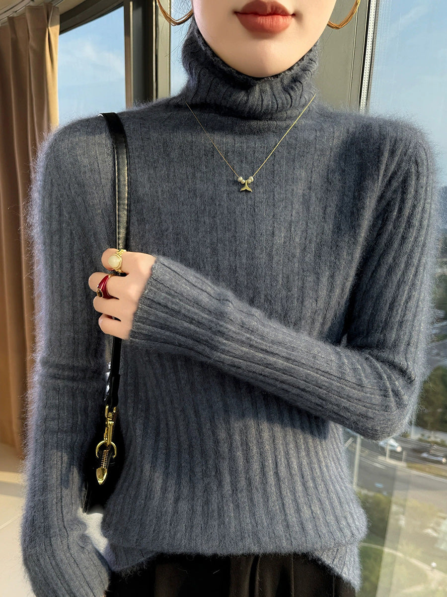 Women Winter Casual Turtleneck Pure Color Knitted Sweater