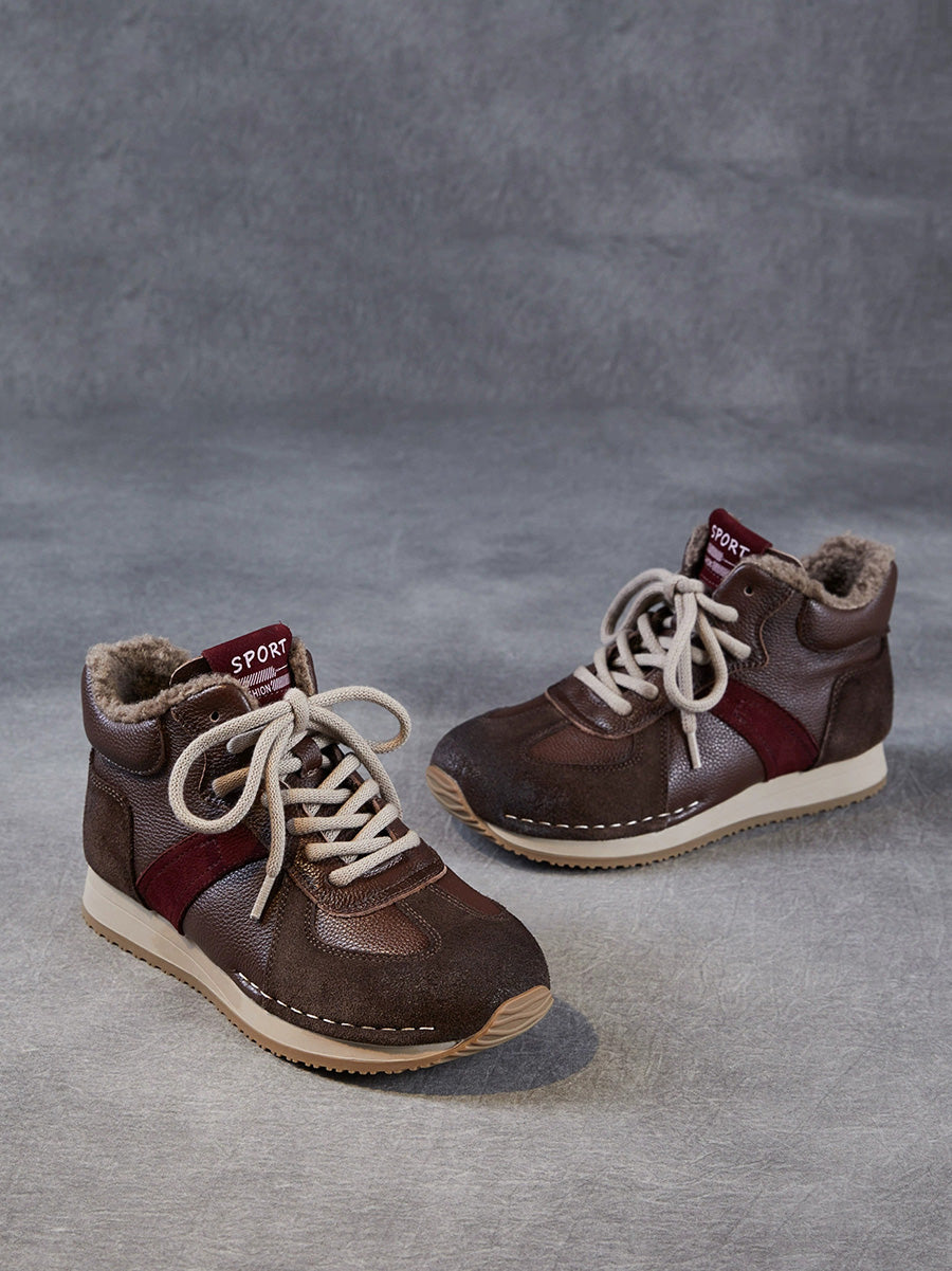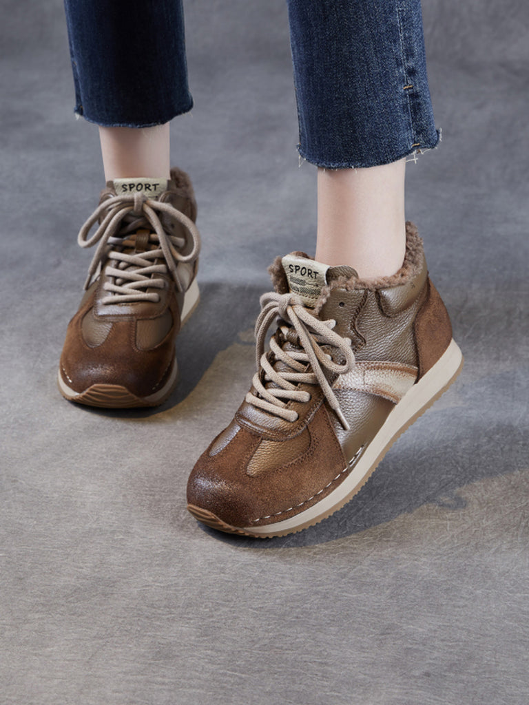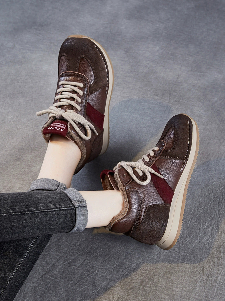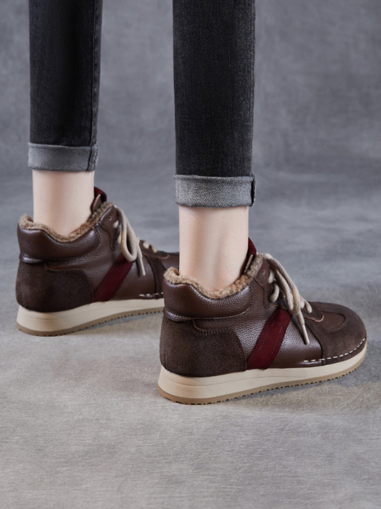 Women Winter Colorblock Leather Fleece-lined Shoes