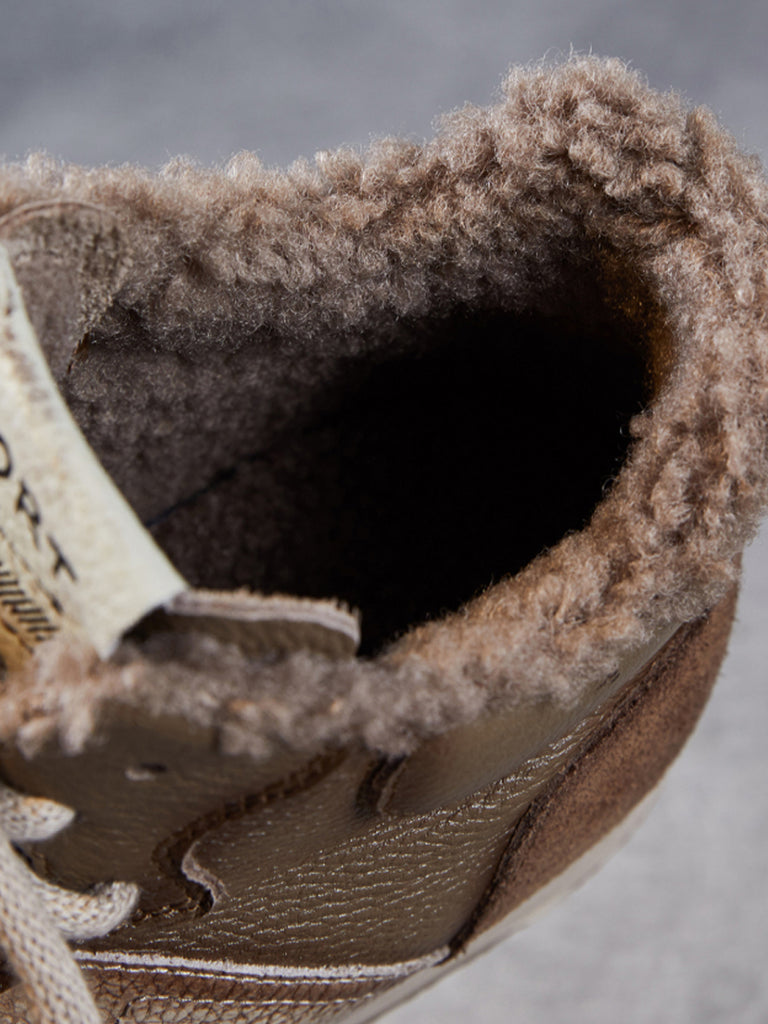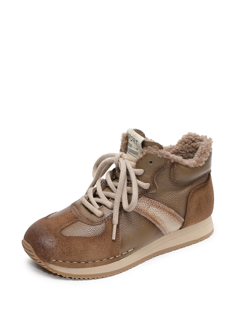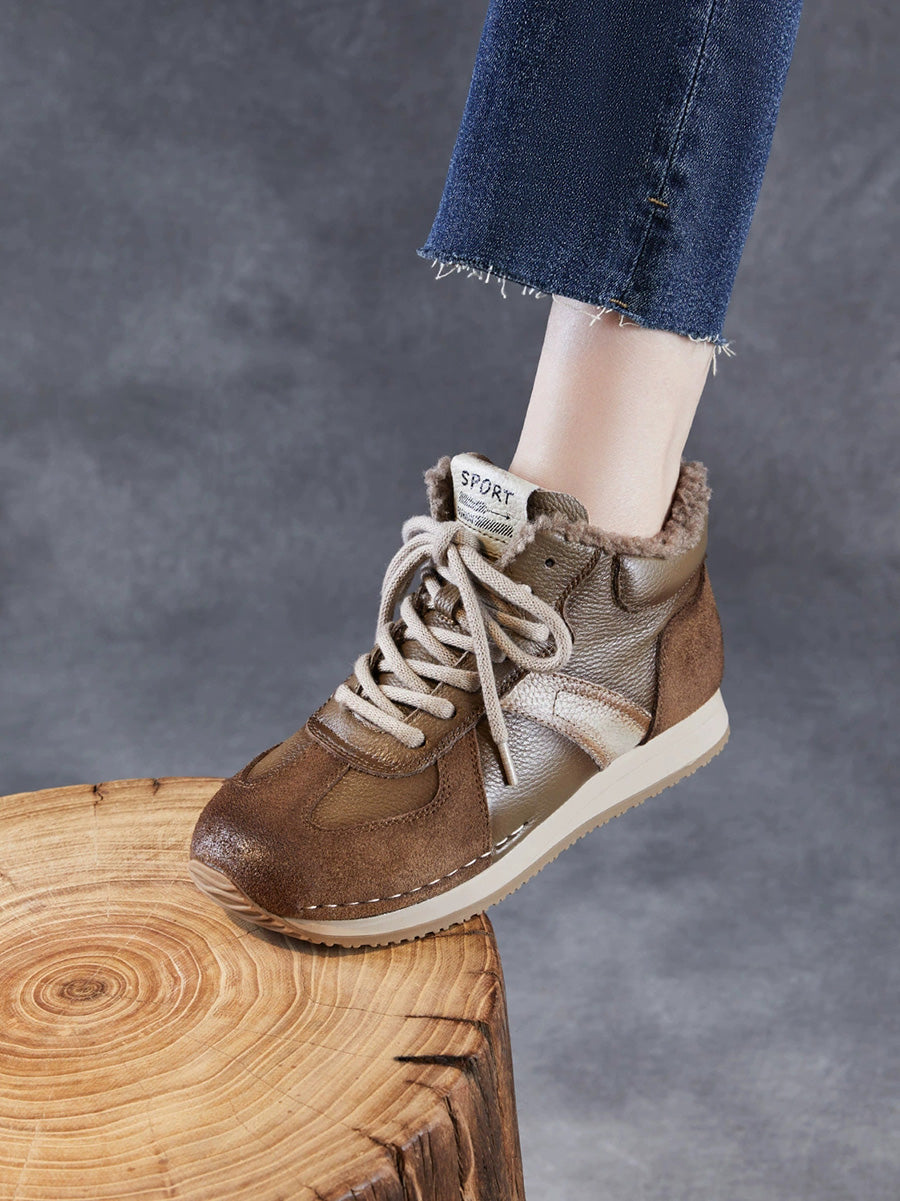 Women Winter Colorblock Leather Fleece-lined Shoes