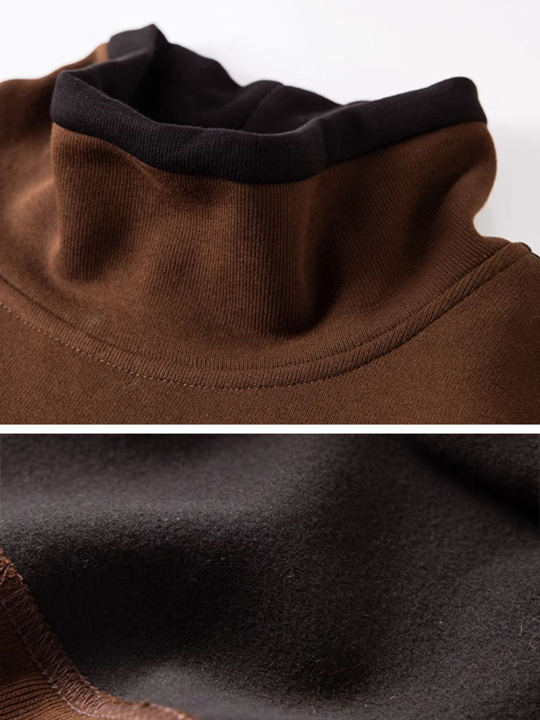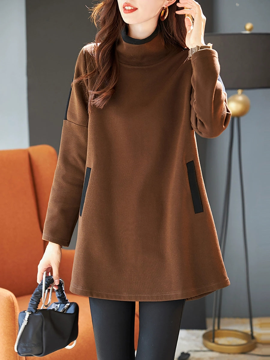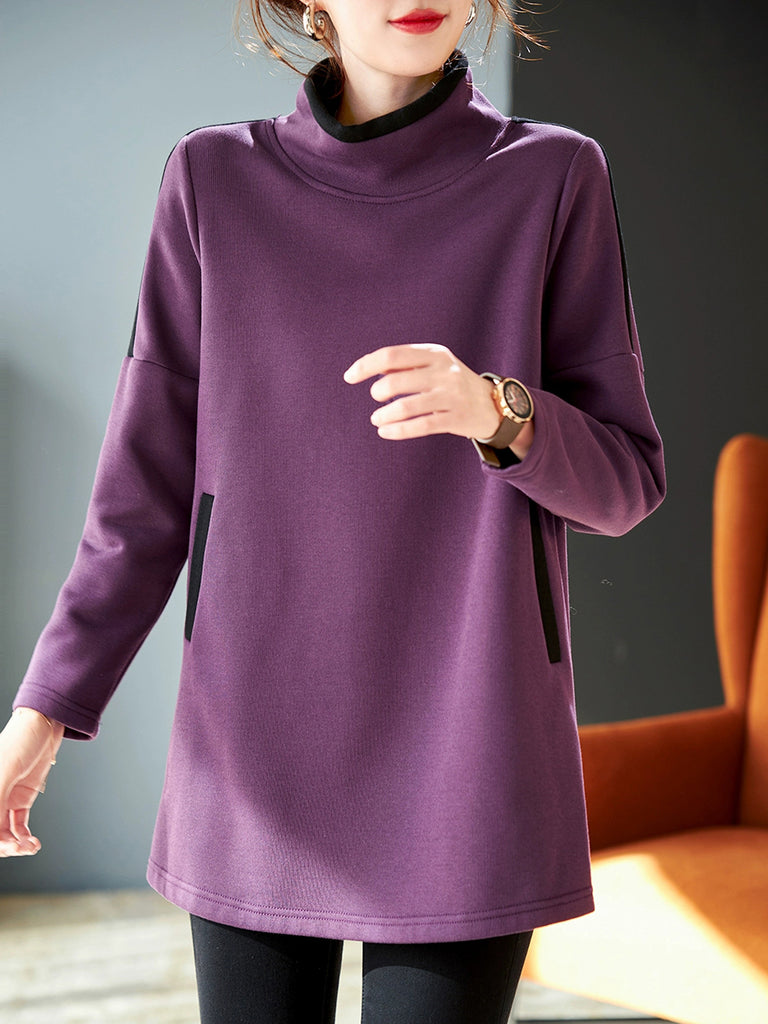Women Winter Colorblock Stand Collar Fleece-lined Blouse