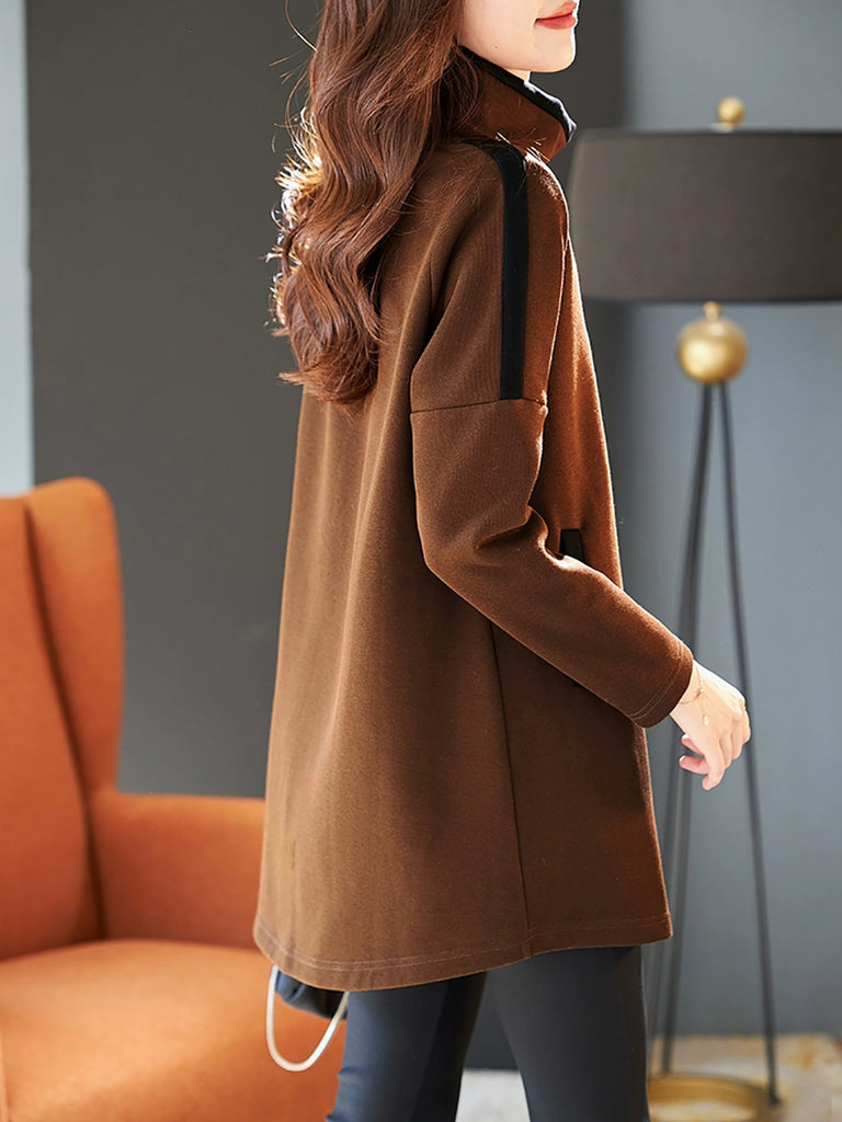 This winter essential combines practical design with contemporary style. Crafted entirely from polyester for durability and easy care, it features a distinctive colorblock pattern that adds visual interest to your seasonal wardrobe. The stand collar provides a polished silhouette, while raglan sleeves offer enhanced mobility and comfort. Full-length sleeves deliver warmth through autumn and winter months, making this casual blouse an ideal layering piece or standalone option for cooler weather.