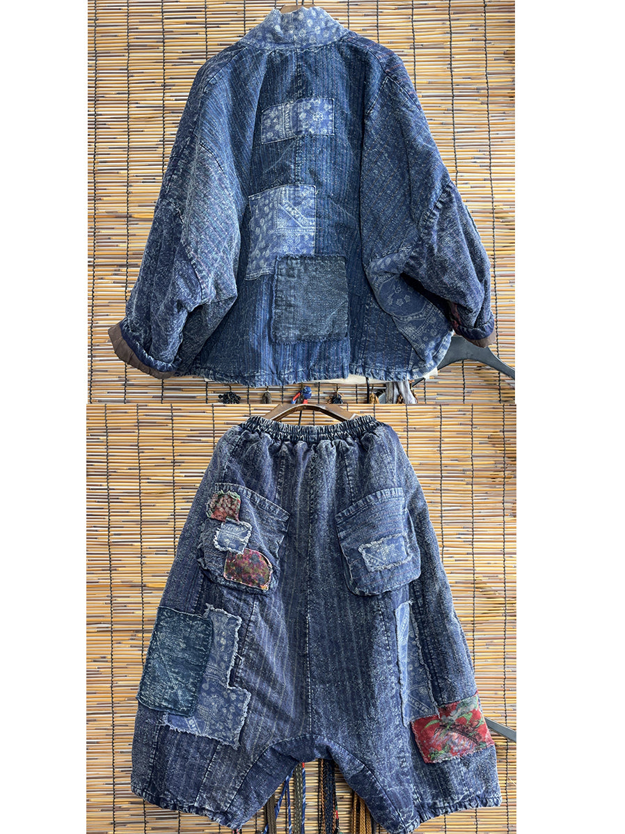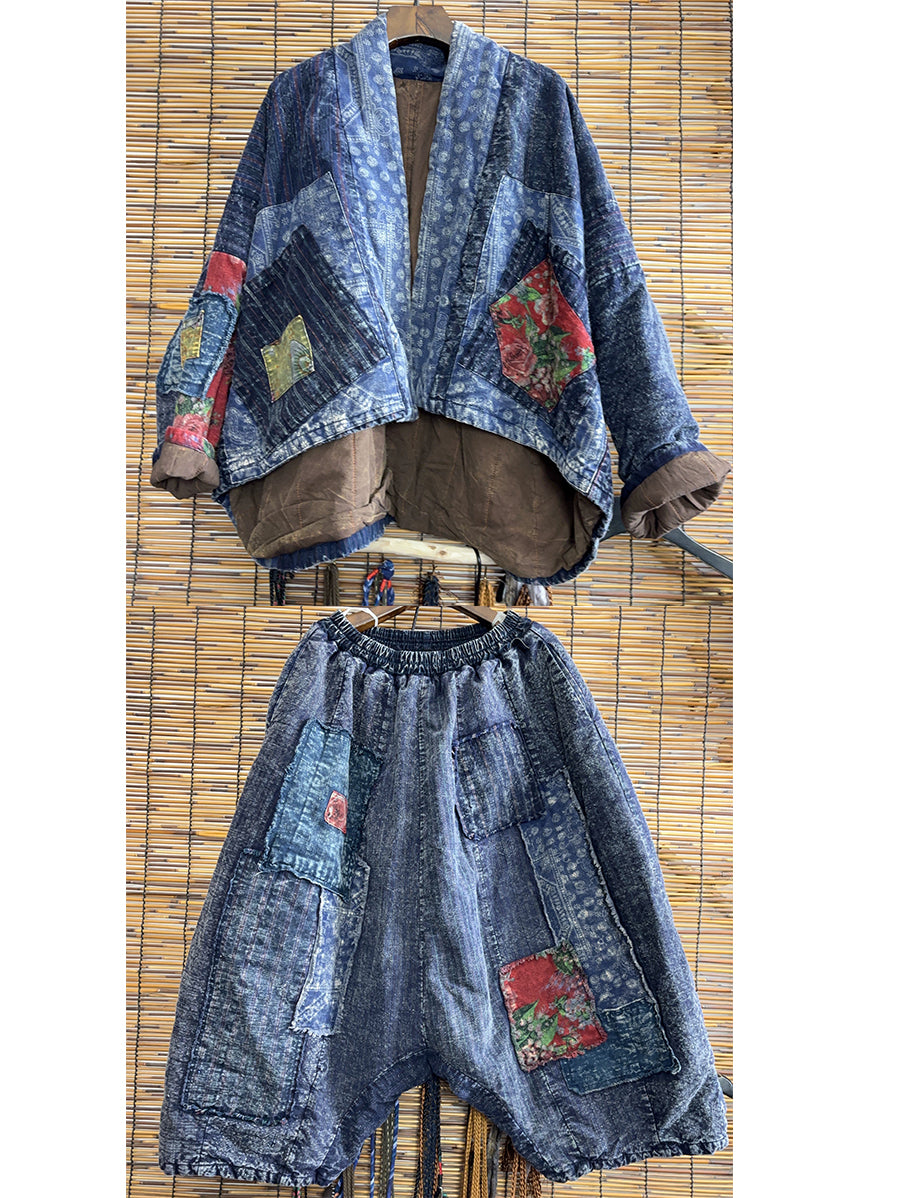 Women Winter Ethnic Patchwork V-Neck Padded Suits
