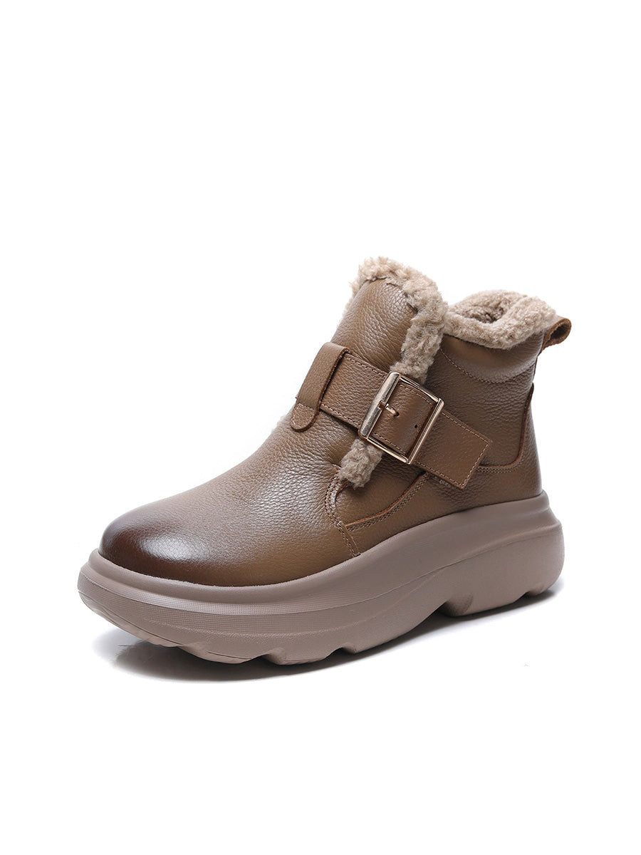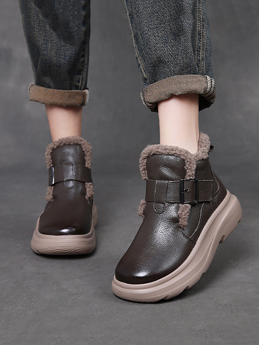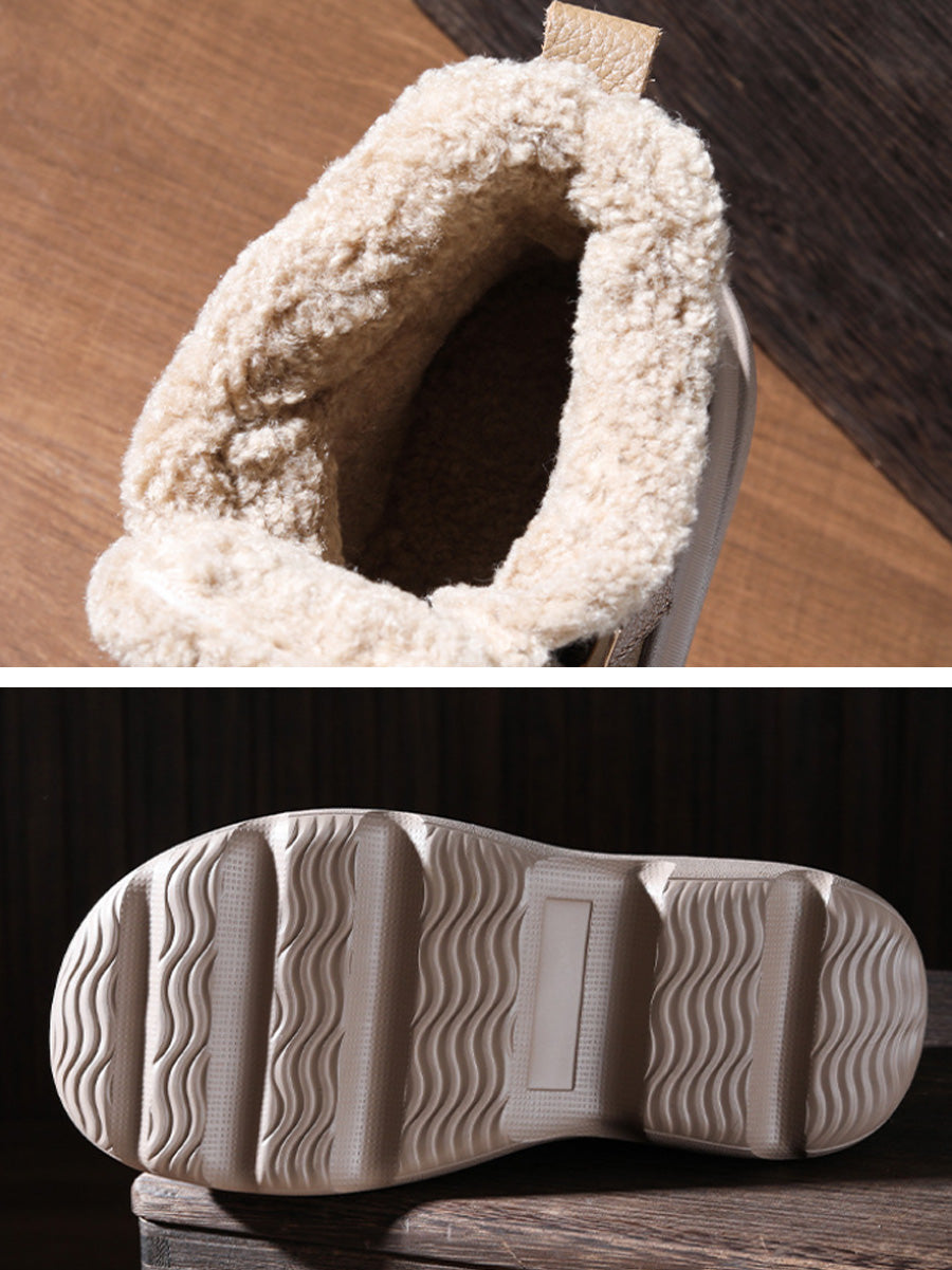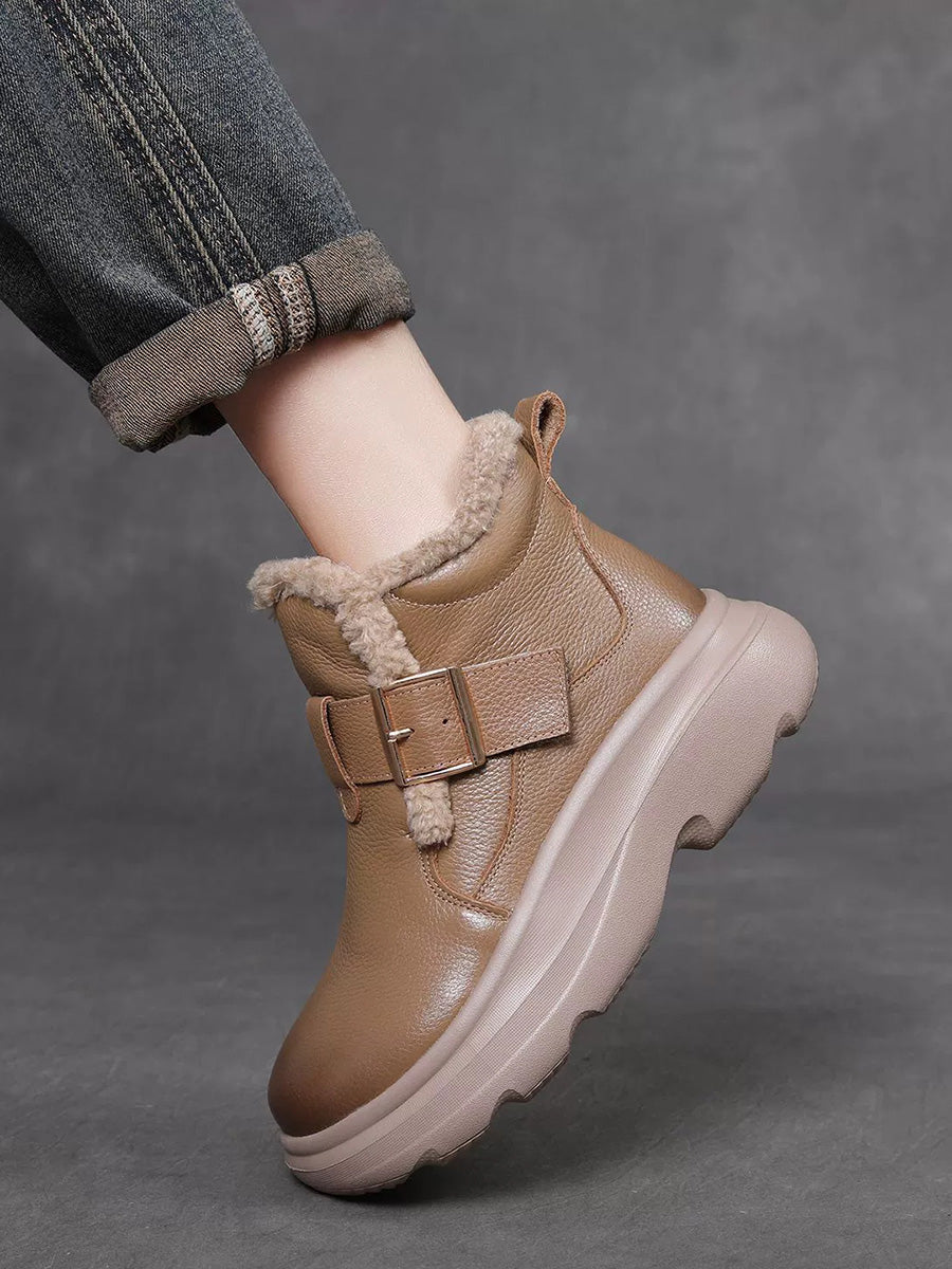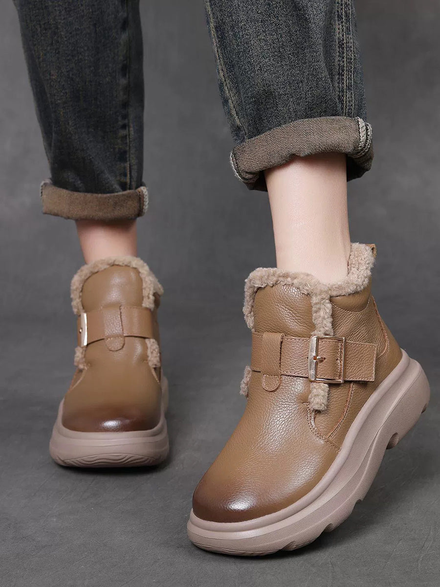 Women Winter Genuine Leather Fleece-lined Ankle Boots