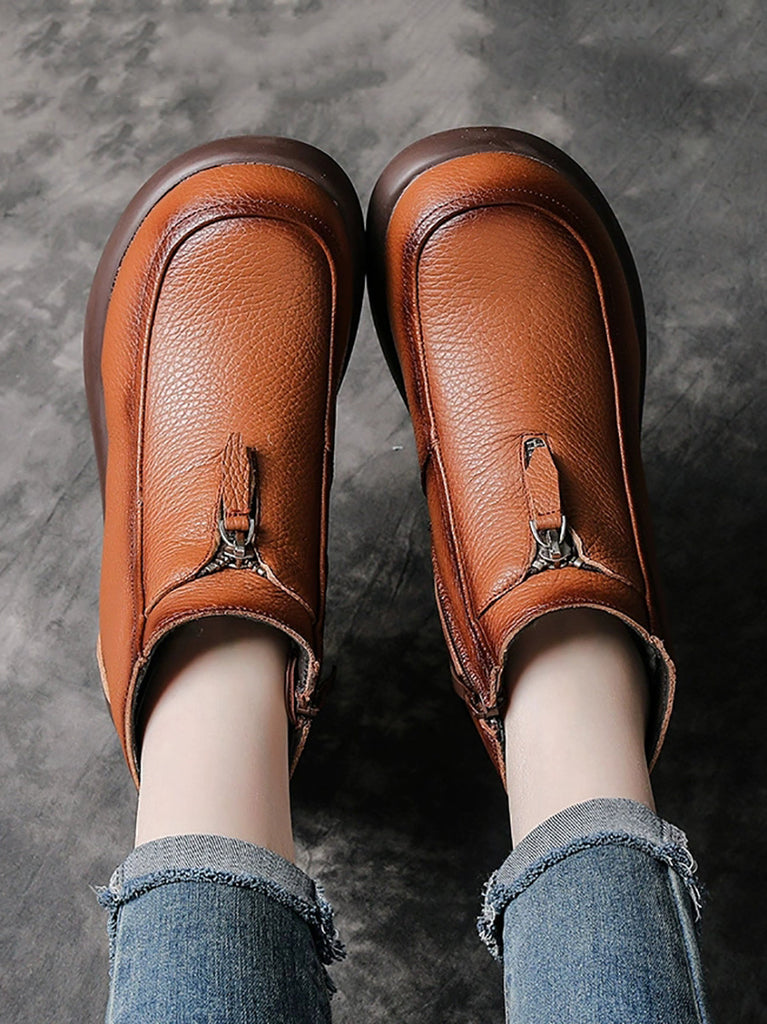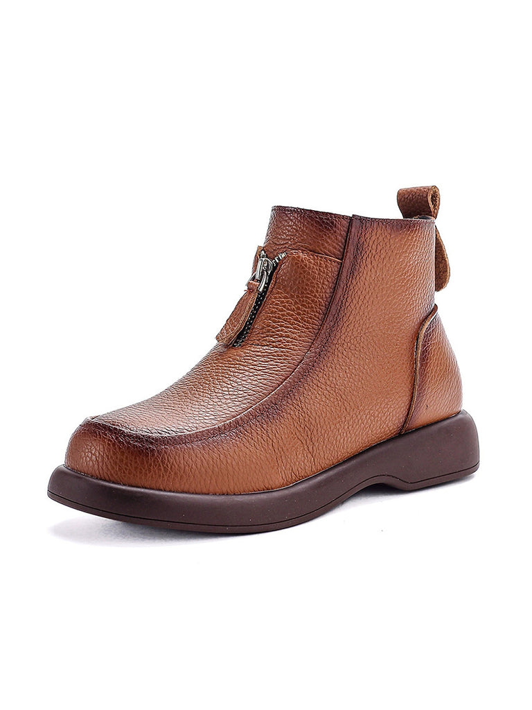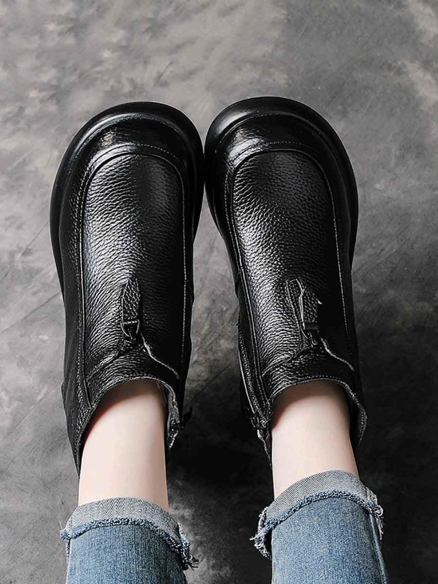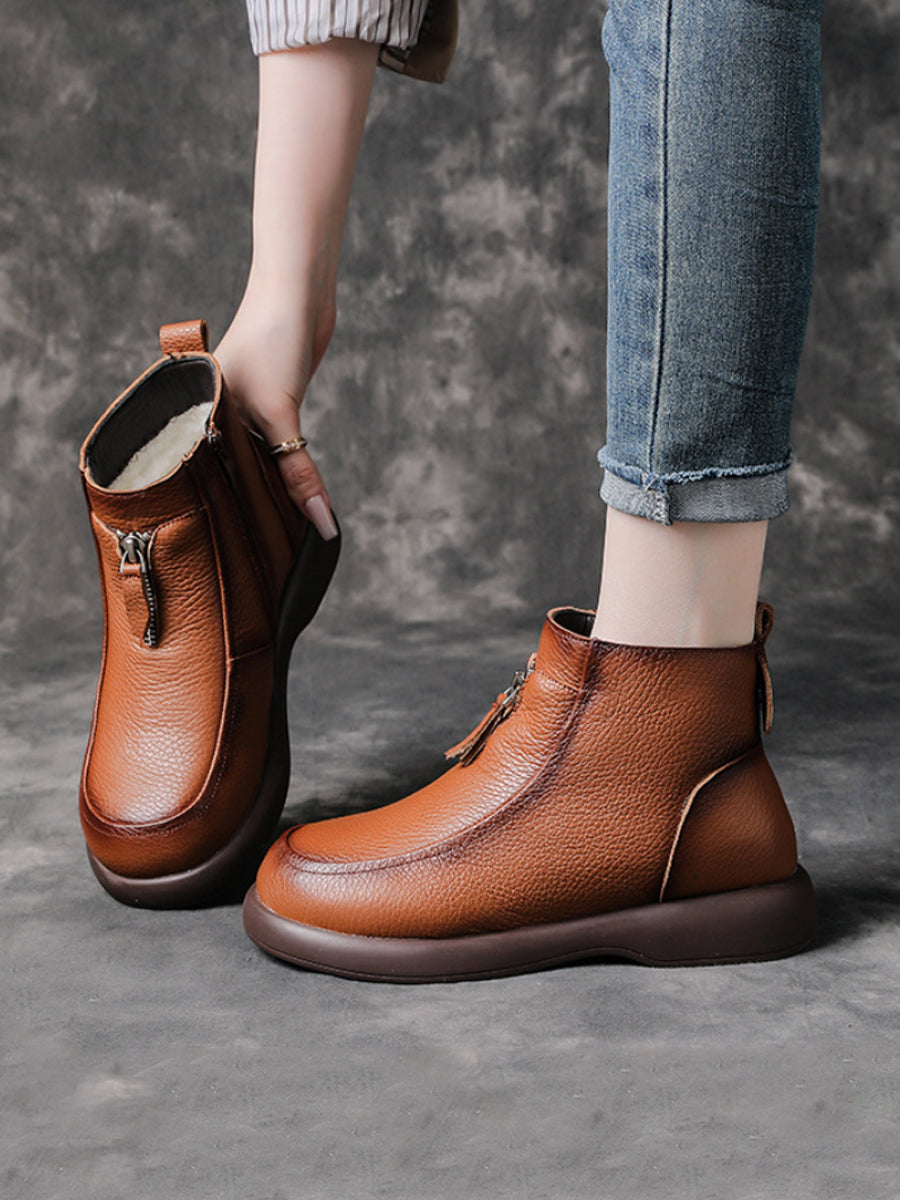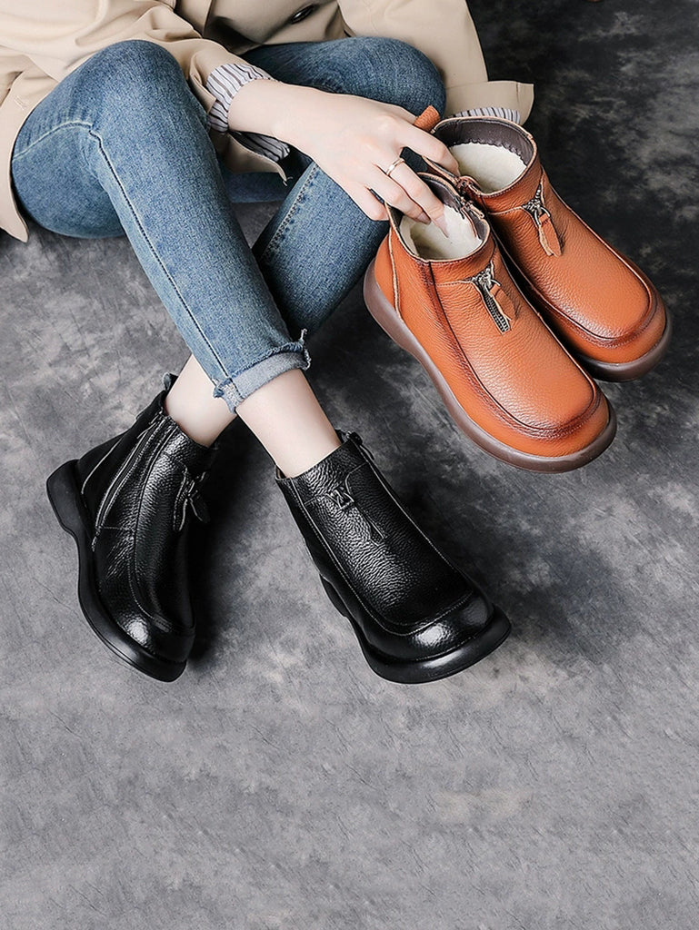 Women Winter Genuine Leather Fleece-lined Ankle Boots