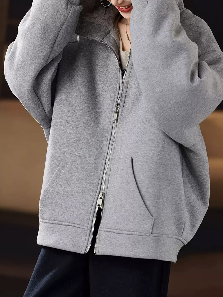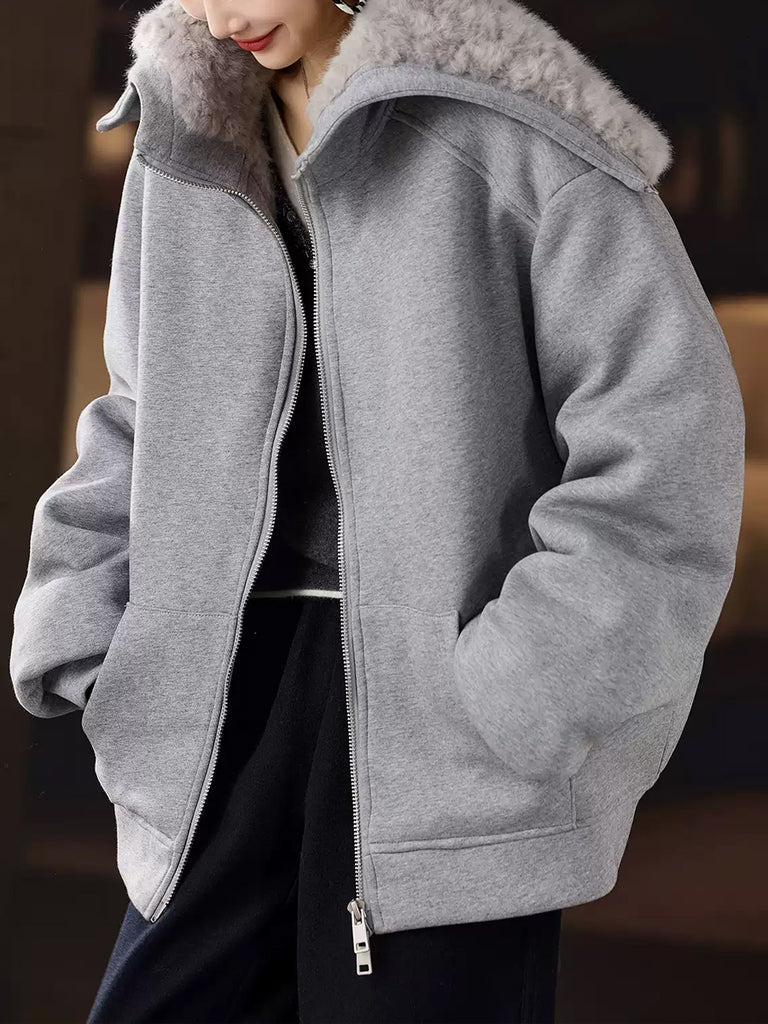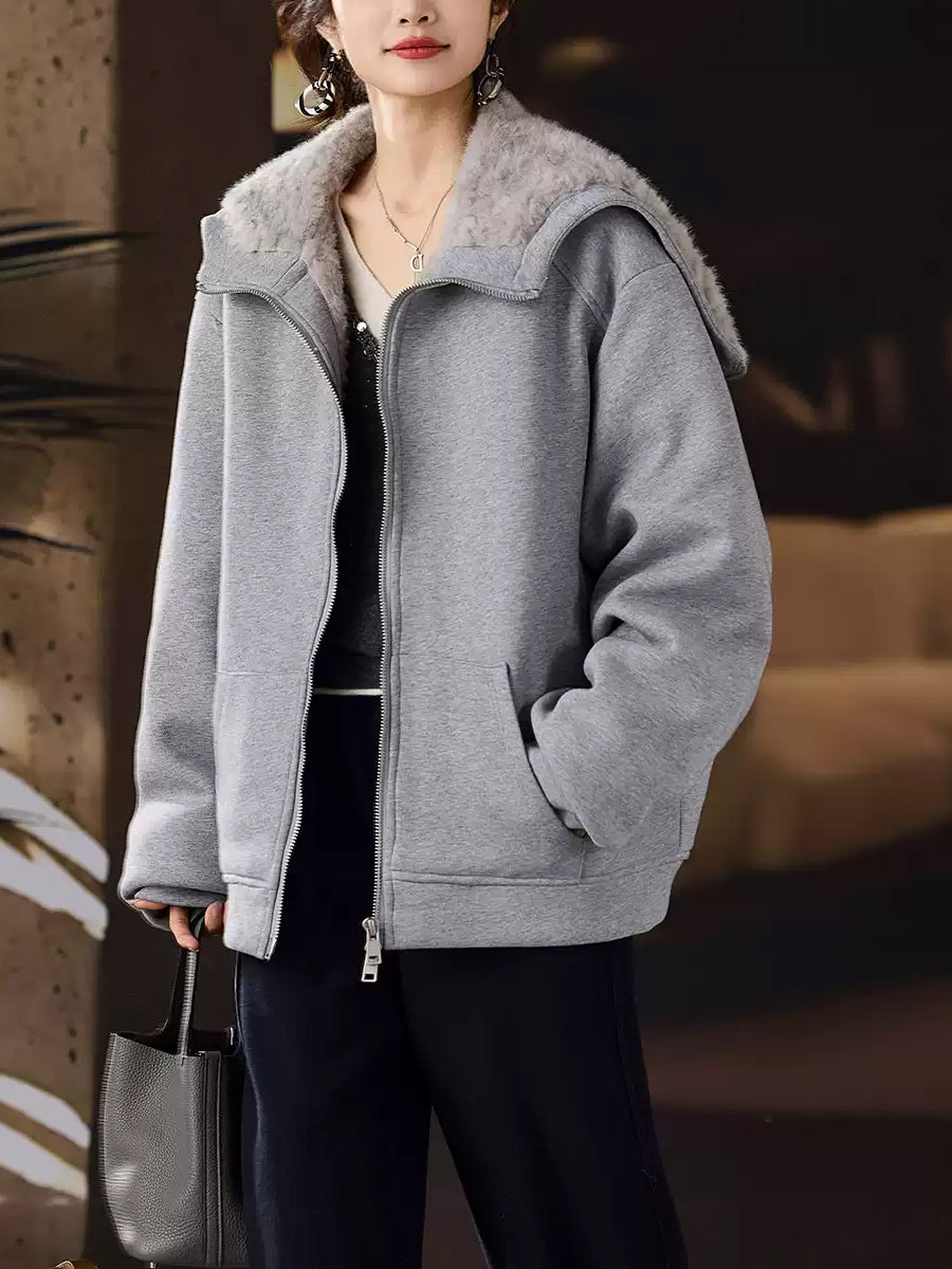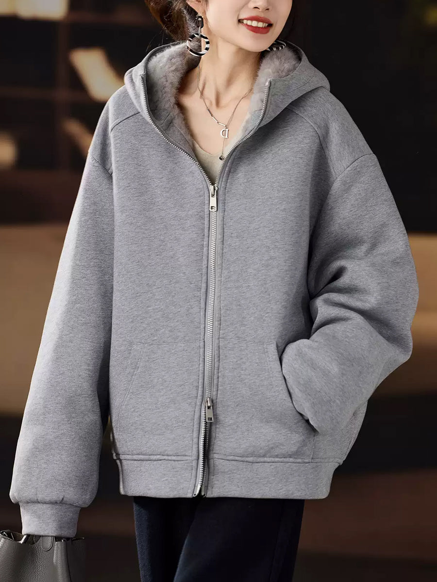 Women Winter Pure Color Fleece Spliced Down Hooded Coat