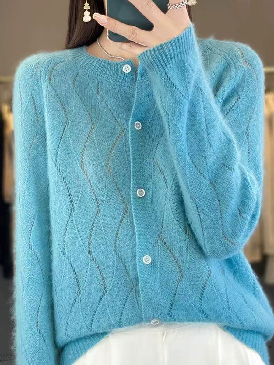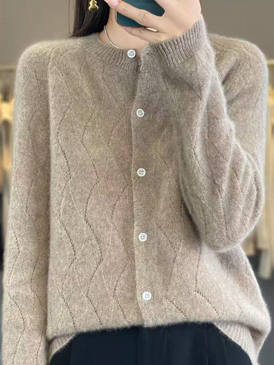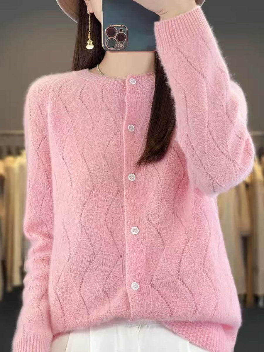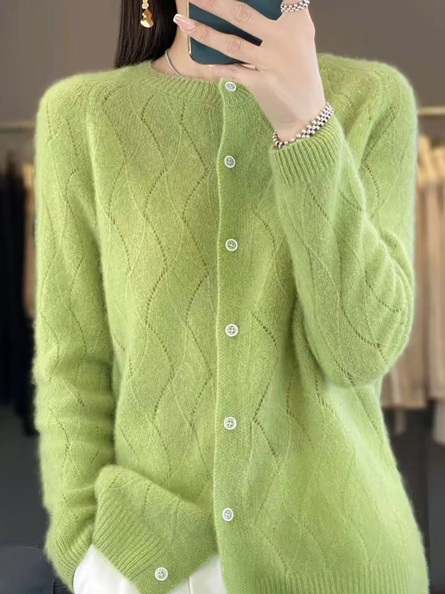 Women Winter Pure Color Knitted O-Neck Cardigan Sweater