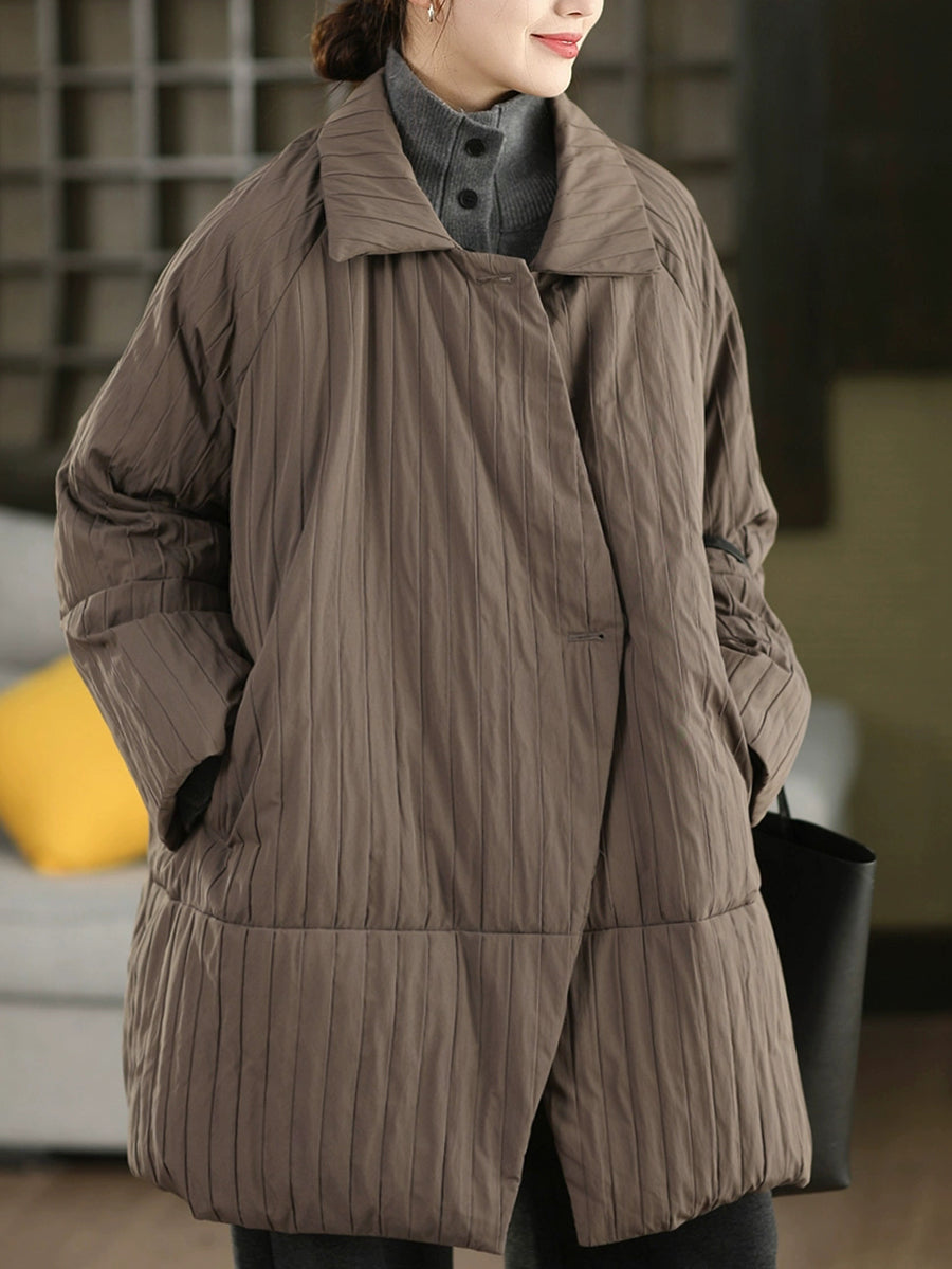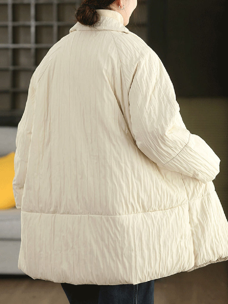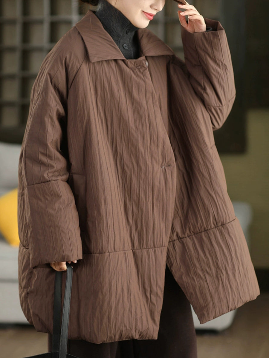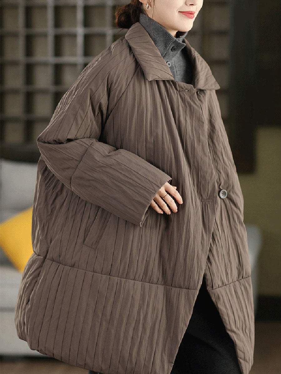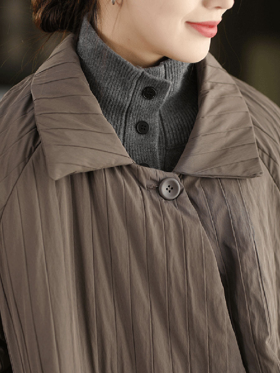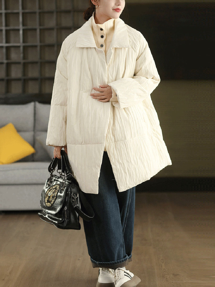 Women Winter Pure Color Turn-down Collar Down Overcoat
