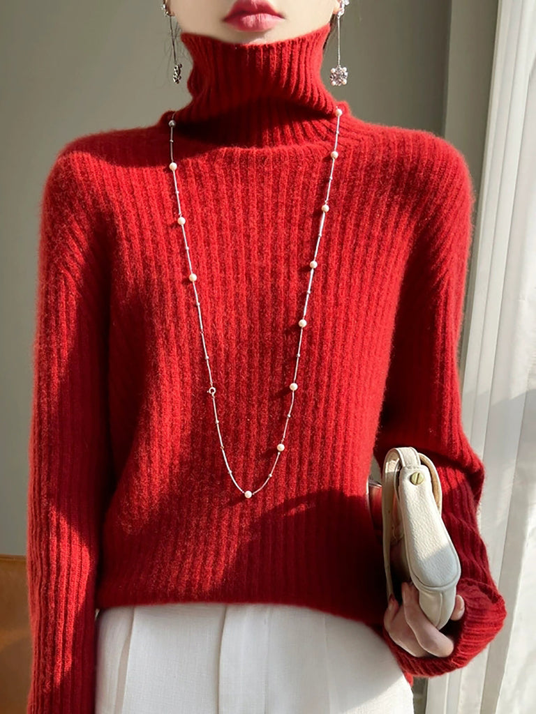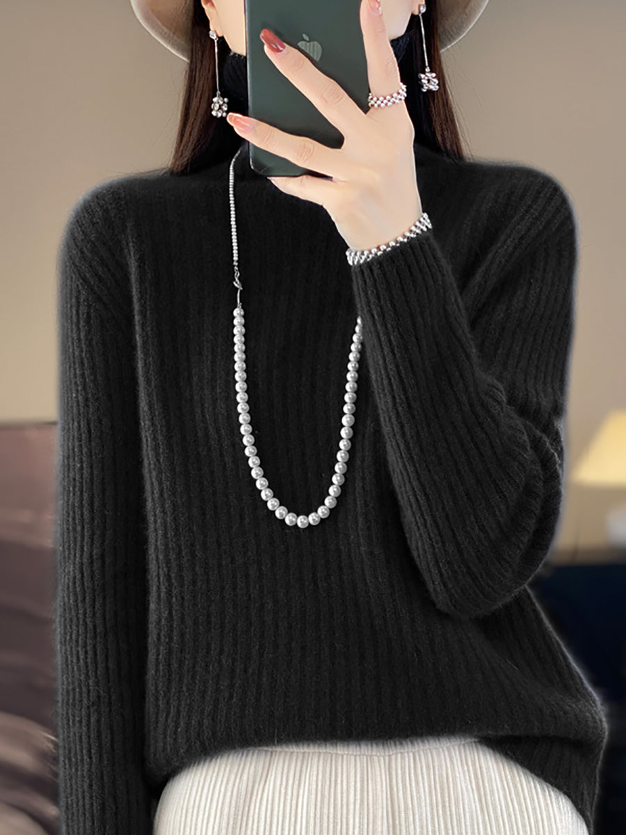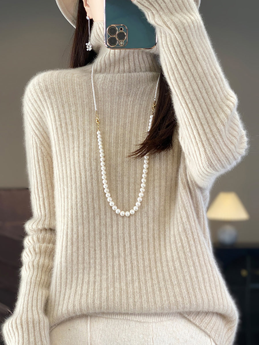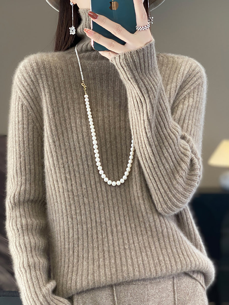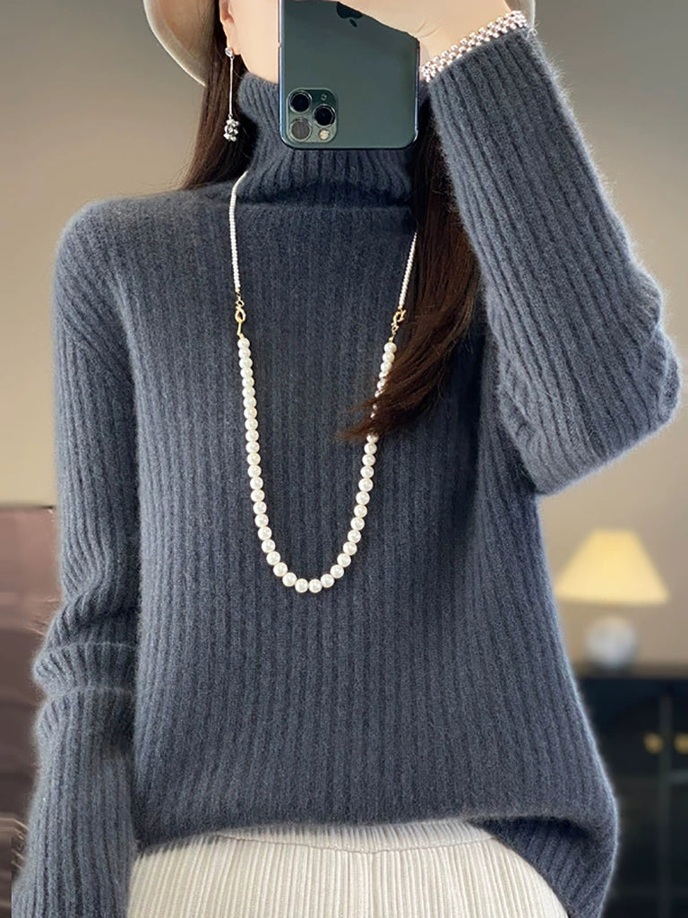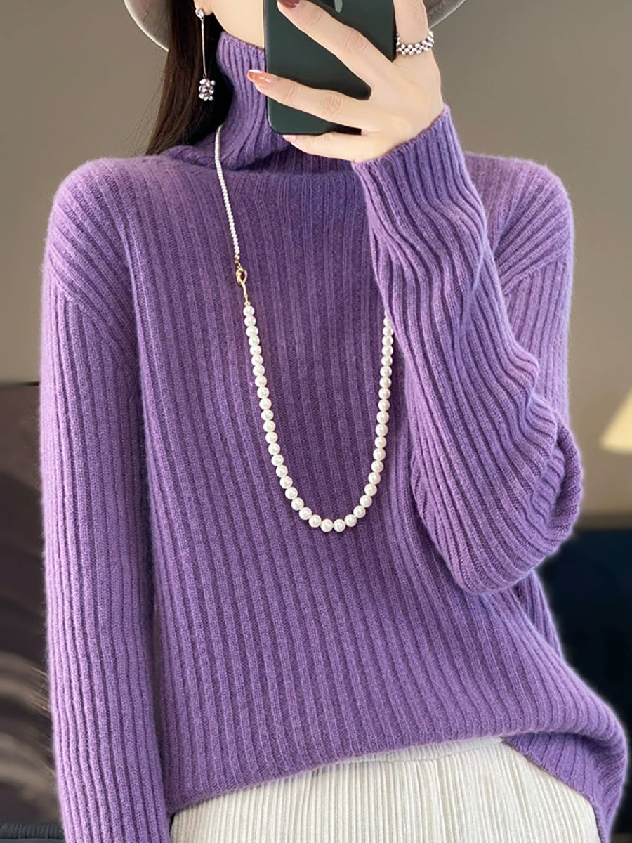 Women Winter Pure Color Wool Turtleneck Sweater