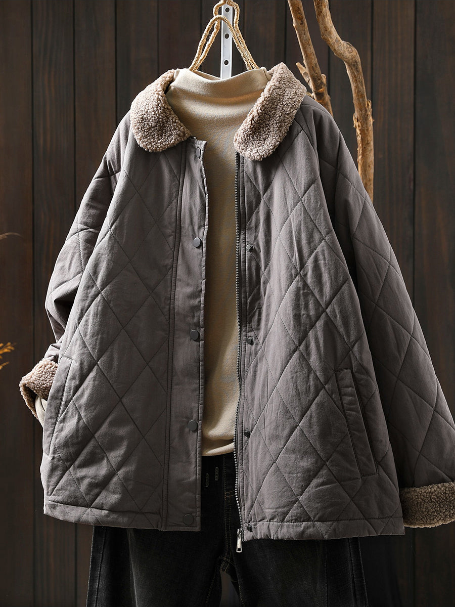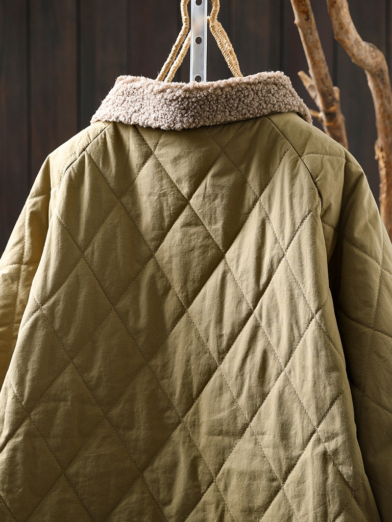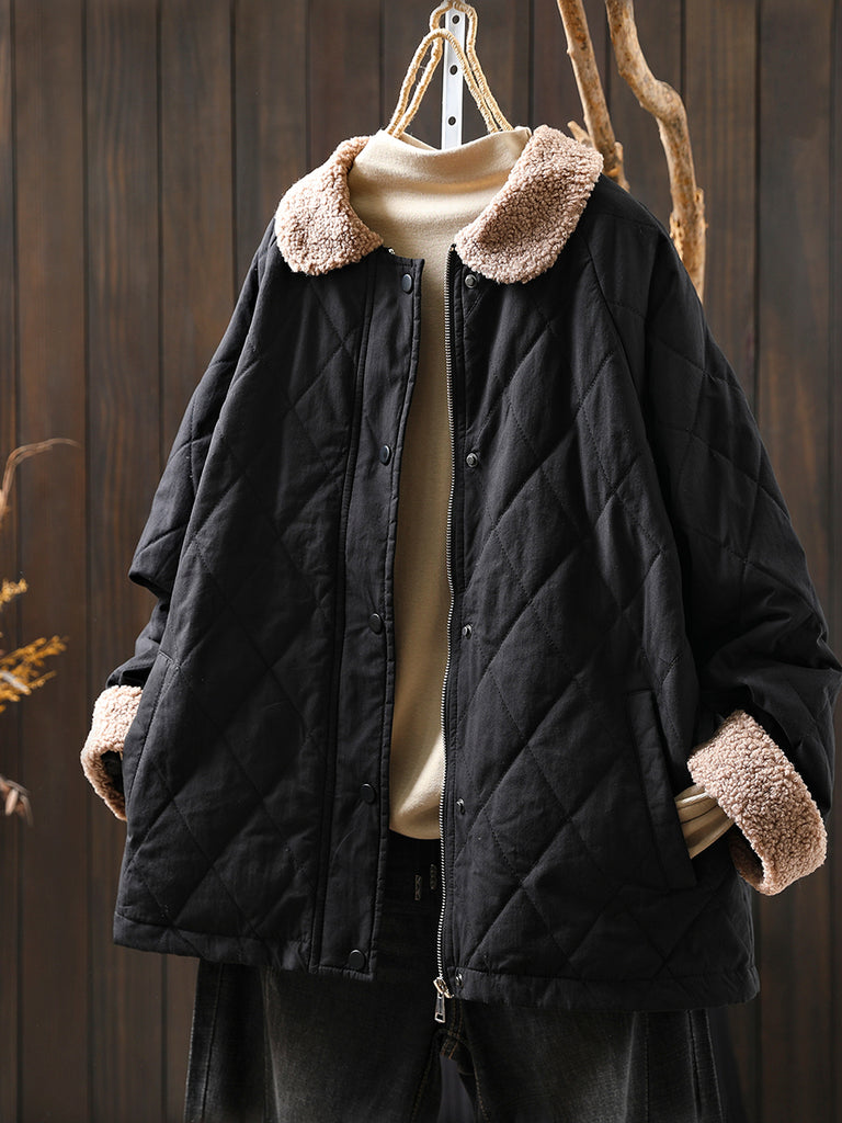 Women Winter Retro Fleece Spliced Turn-down Collar Coat