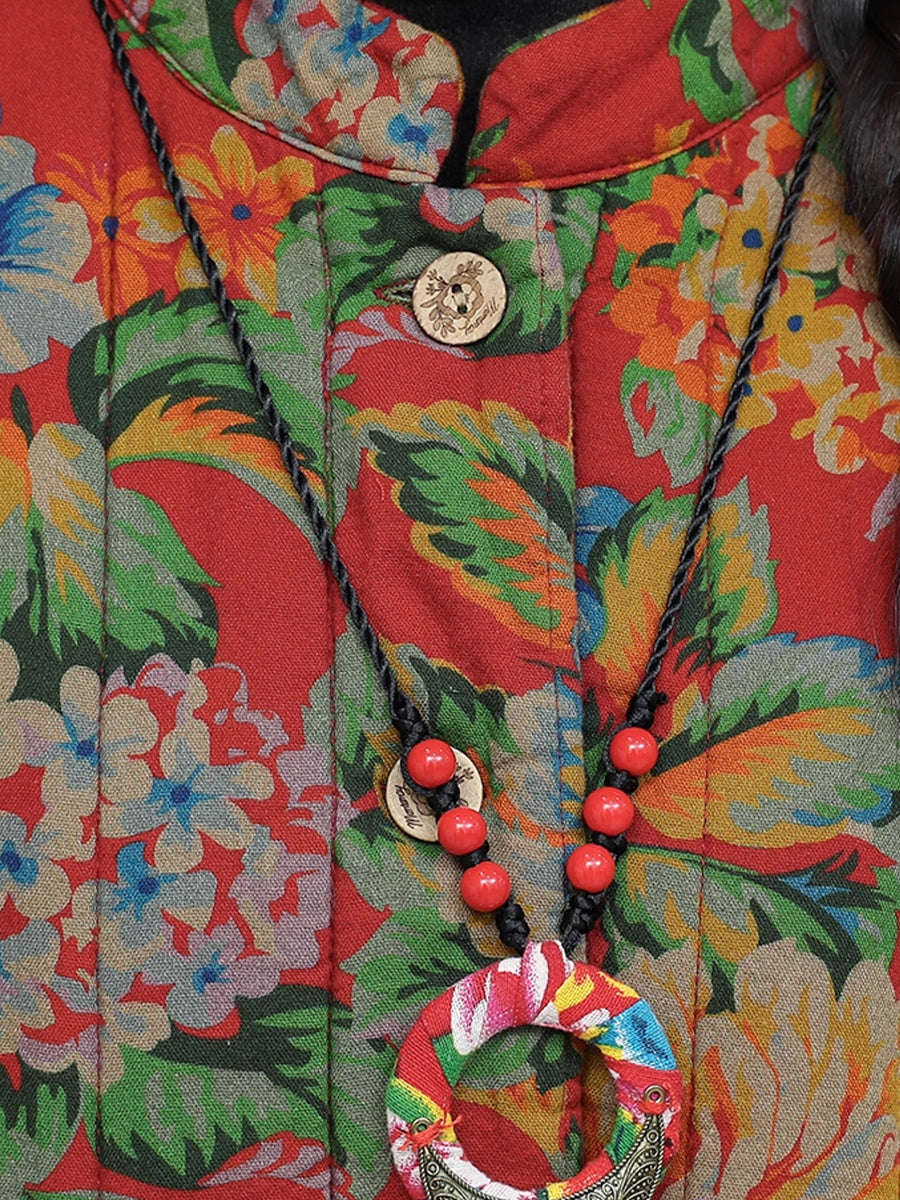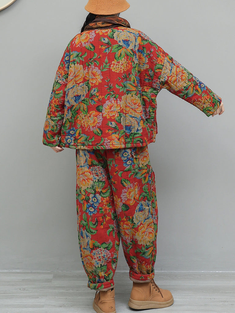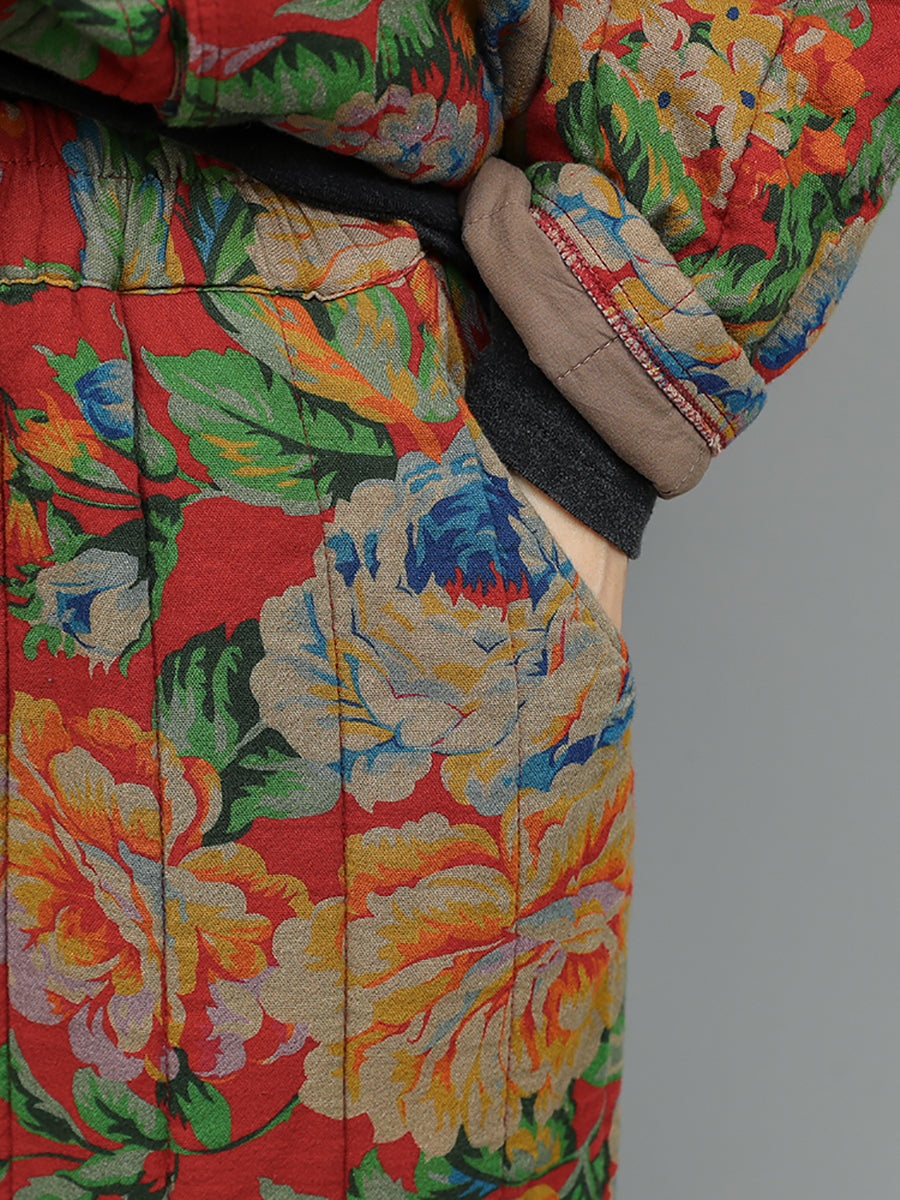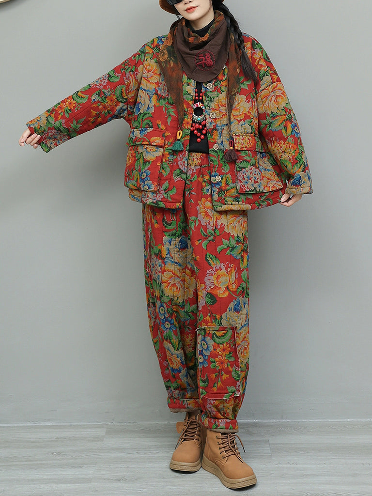 Women Winter Retro Flower Stand Collar Padded Suits