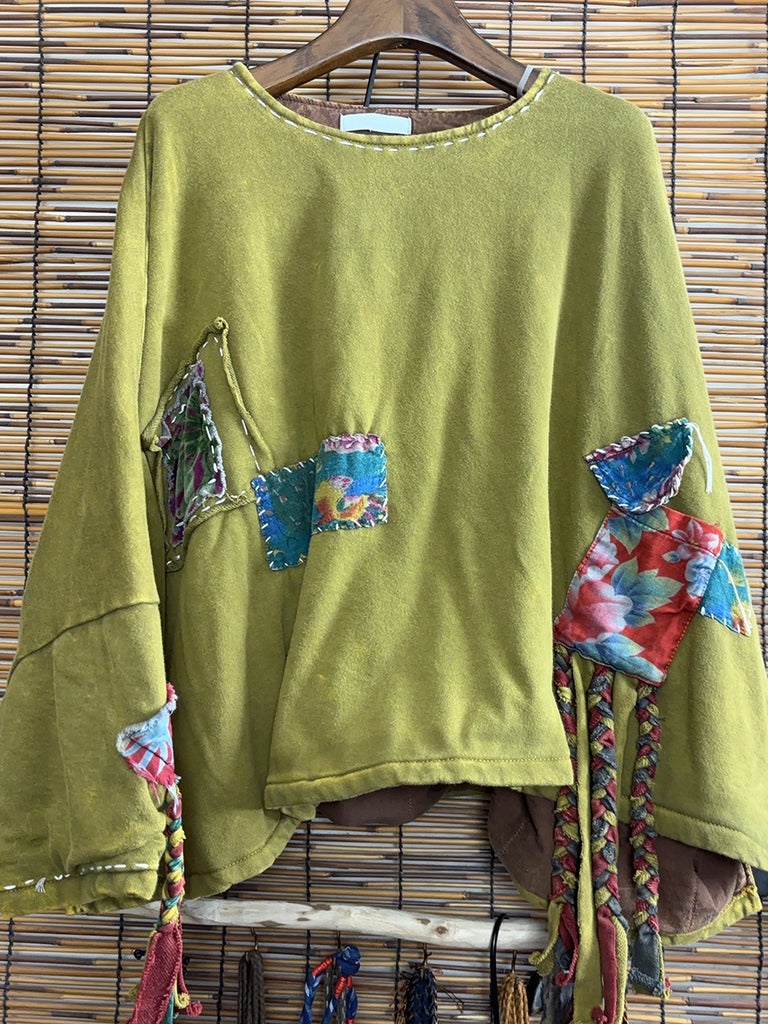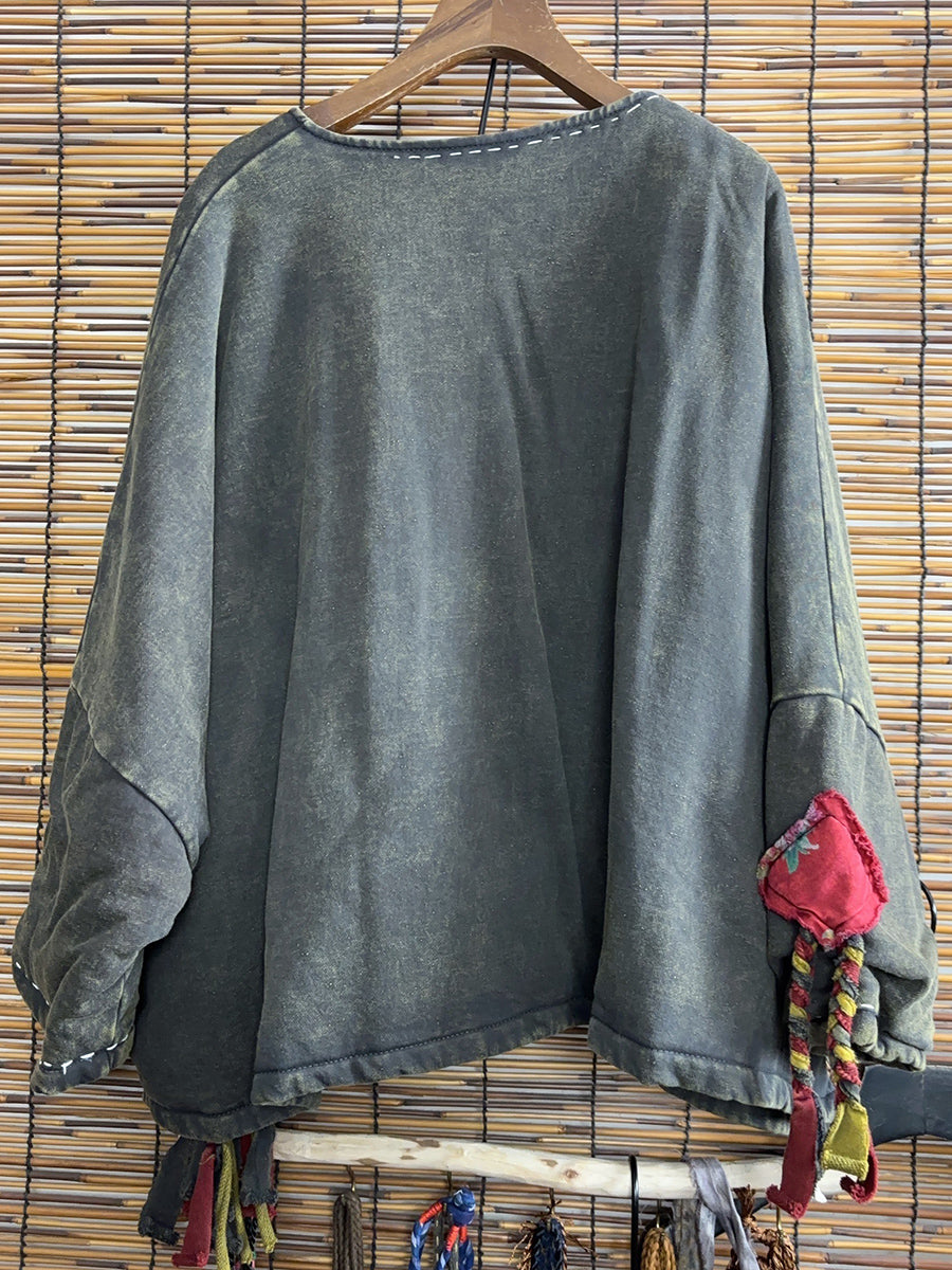 Women Winter Retro Patchwork O-Neck Tassel Suits