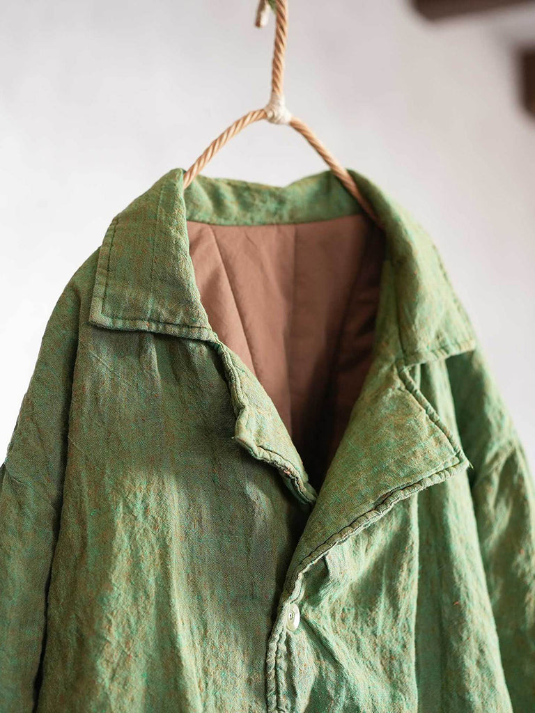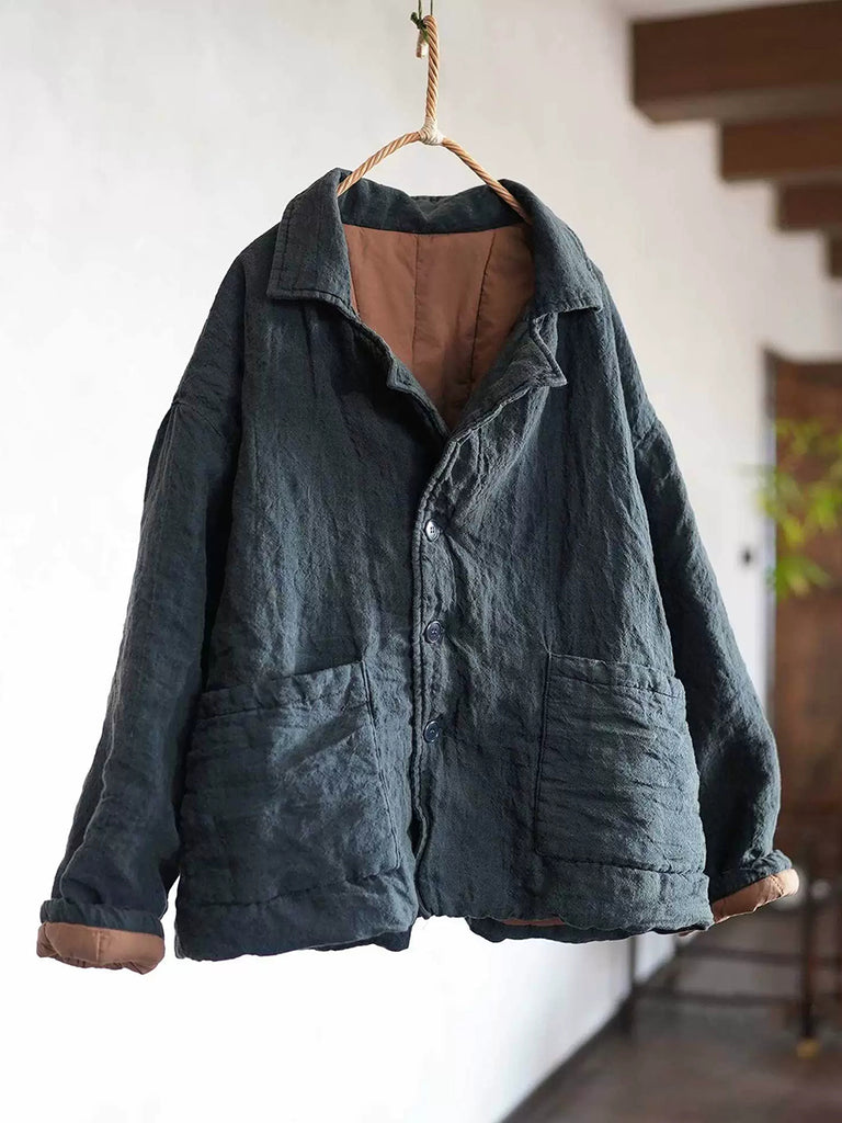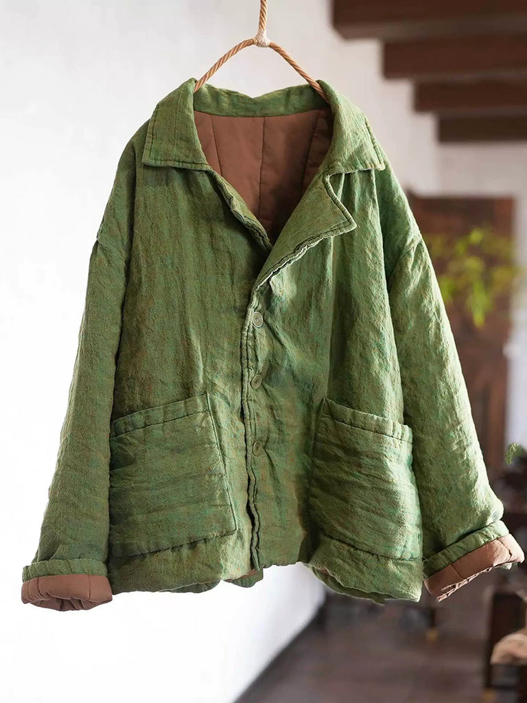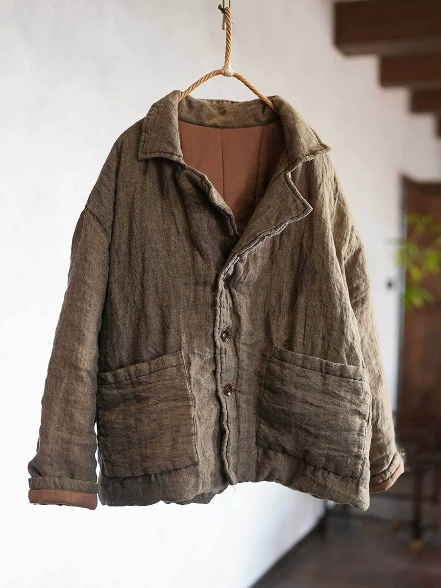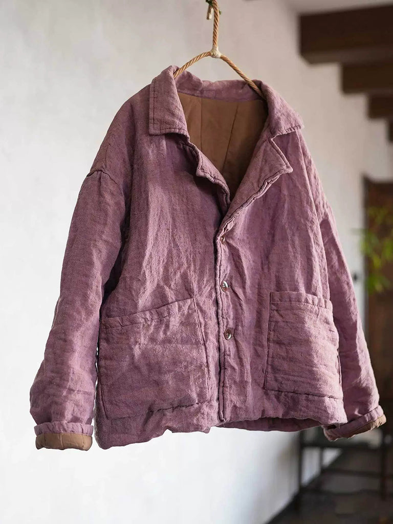 Women Winter Retro Pure Color Turn-down Collar Padded Coat