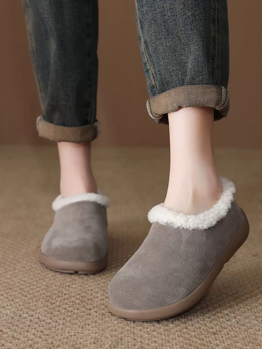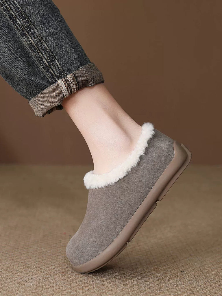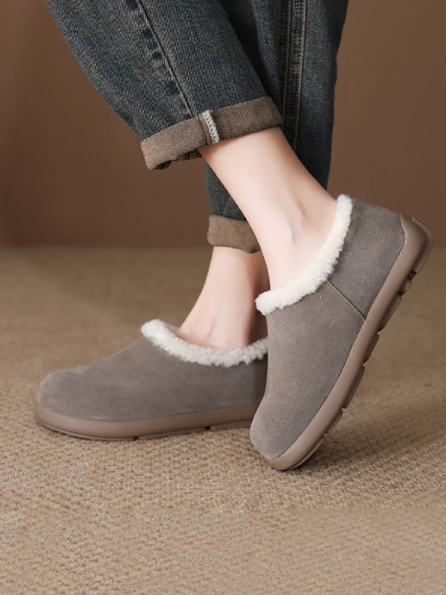 Women Winter Suded Leather Fleece-lined Flat Shoes