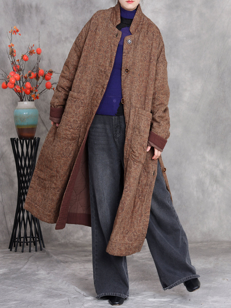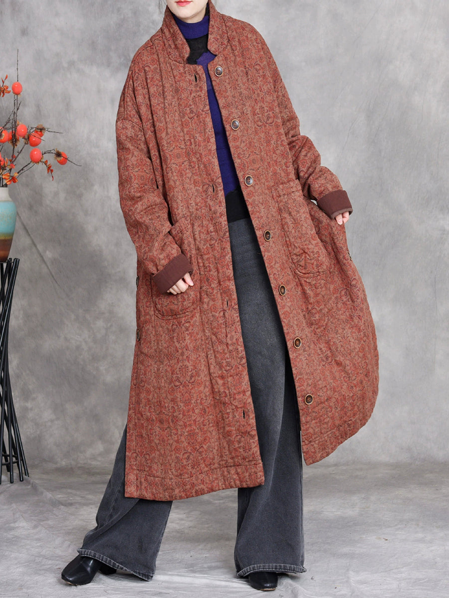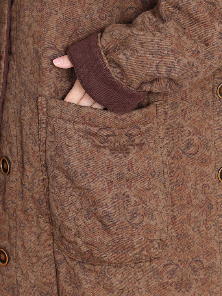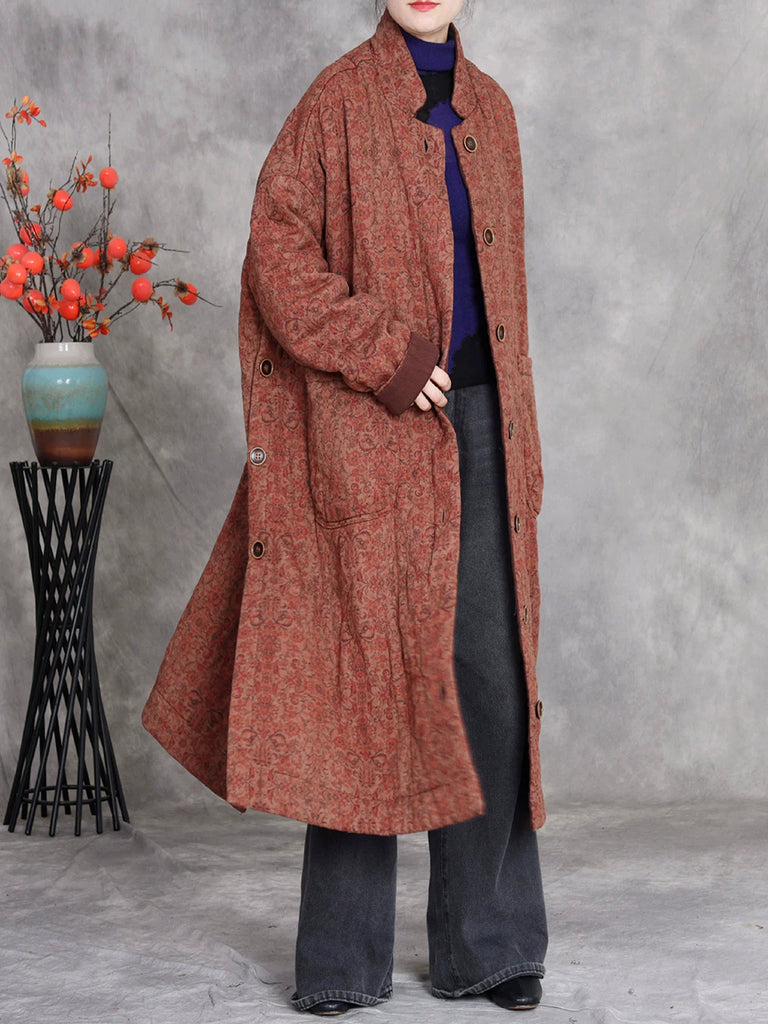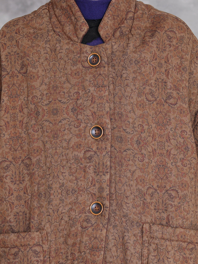 Women Winter Vintage Floral Stand Collar Padded Coat