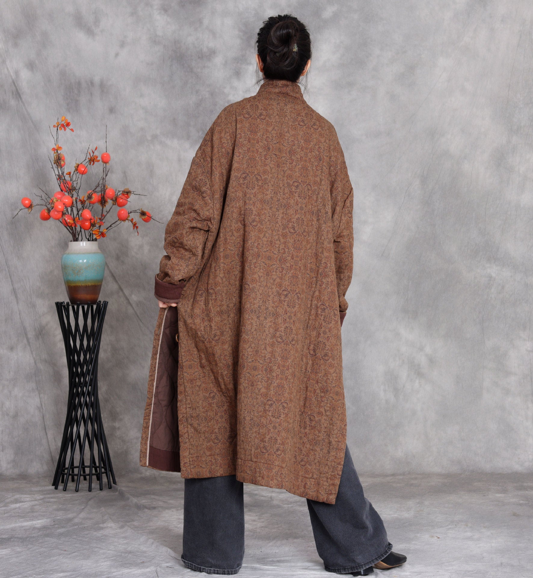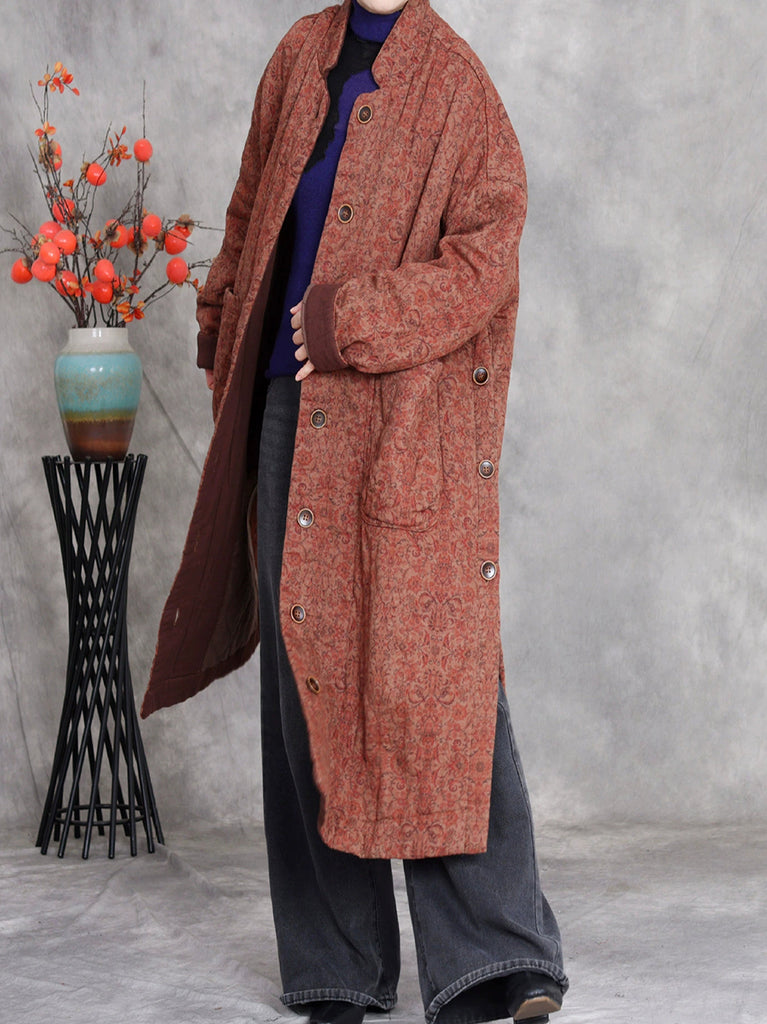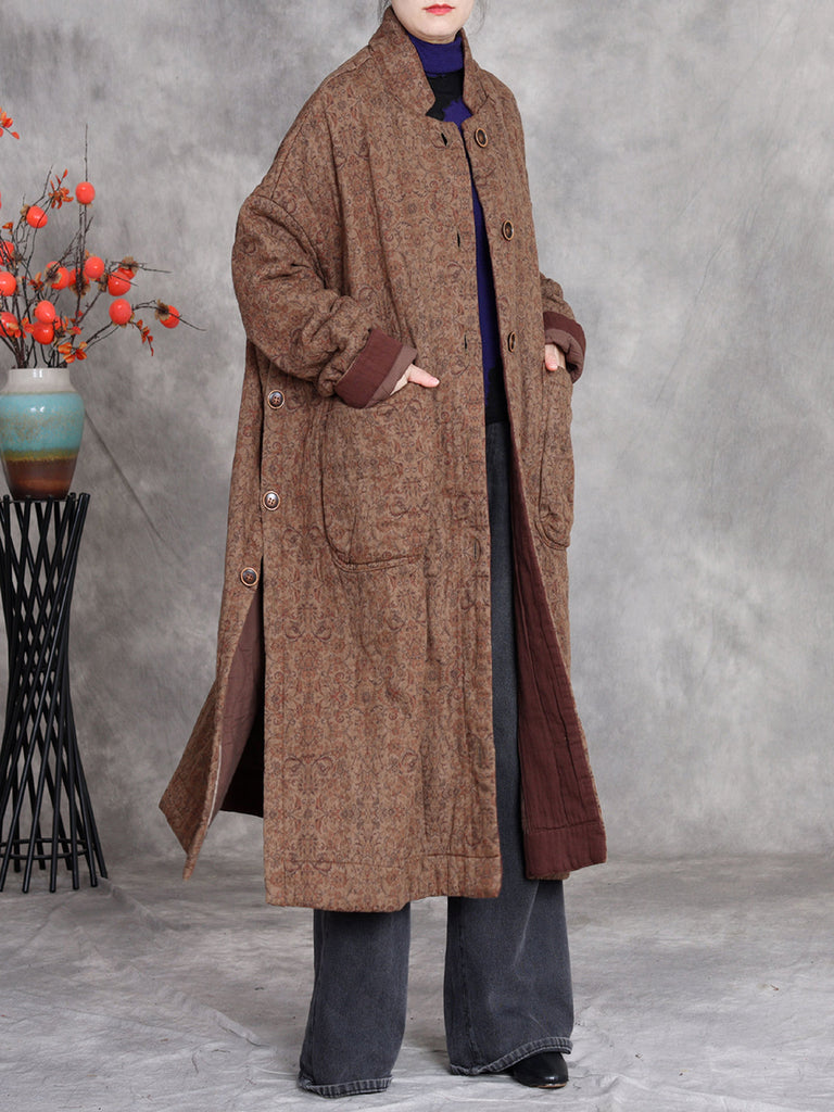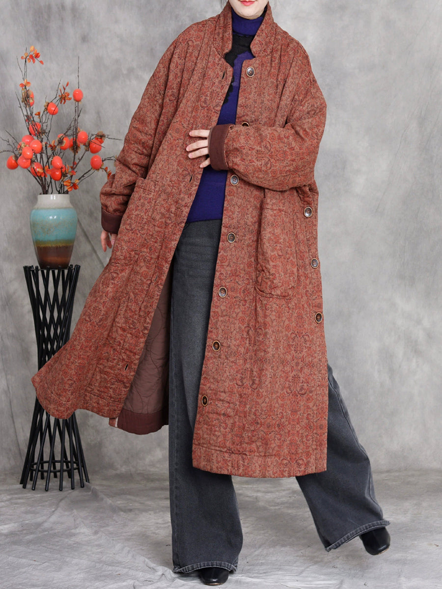 Women Winter Vintage Floral Stand Collar Padded Coat