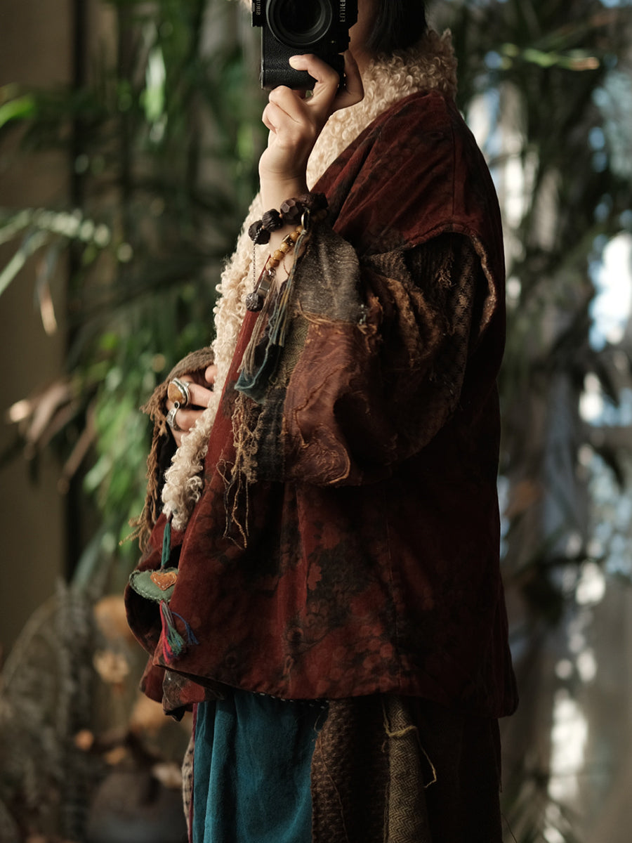 This product features a V-neck style and vintage design, perfect for the winter and autumn seasons. The material used is cotton, with a flower pattern and a comfortable fleece lining.