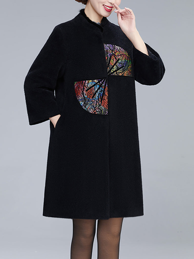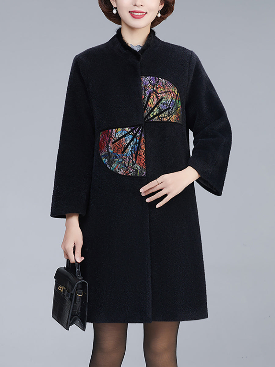 Women Winter Vintage Flower Patch Padded Hooded Coat