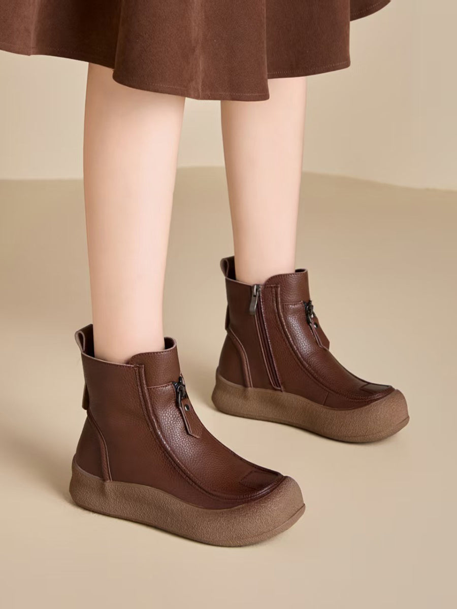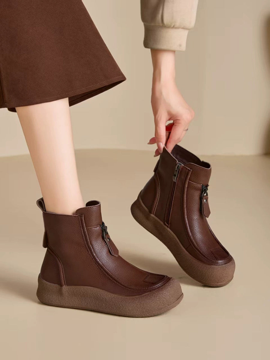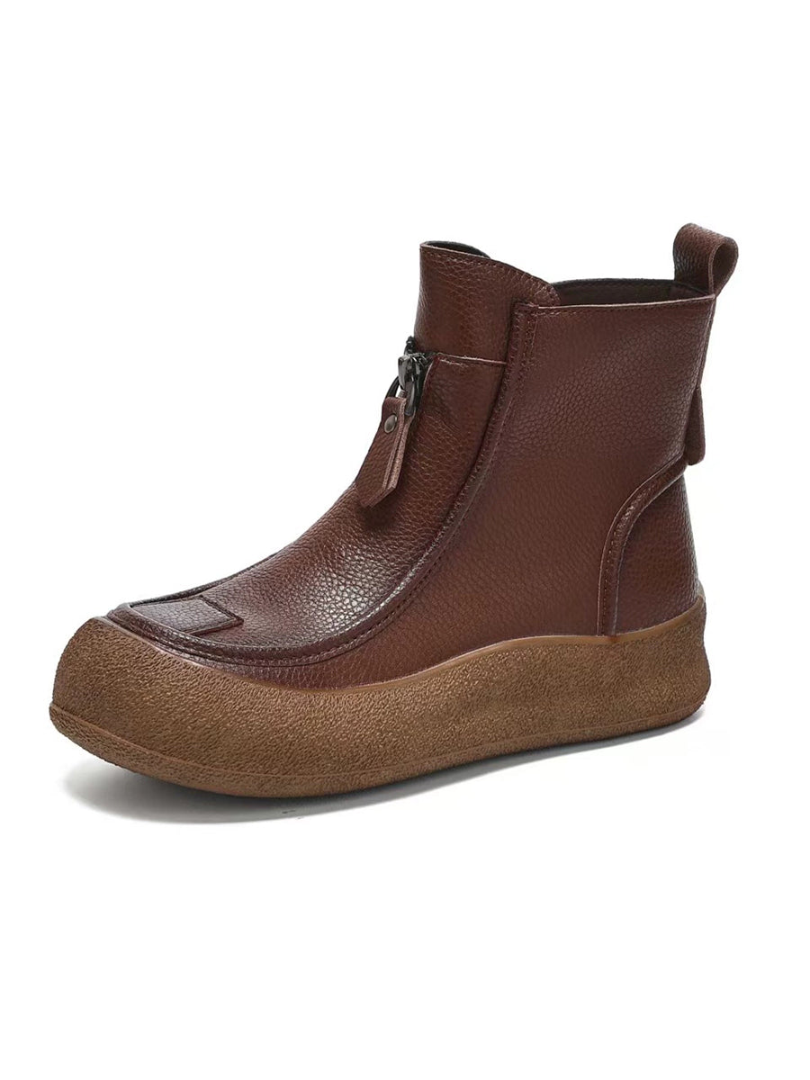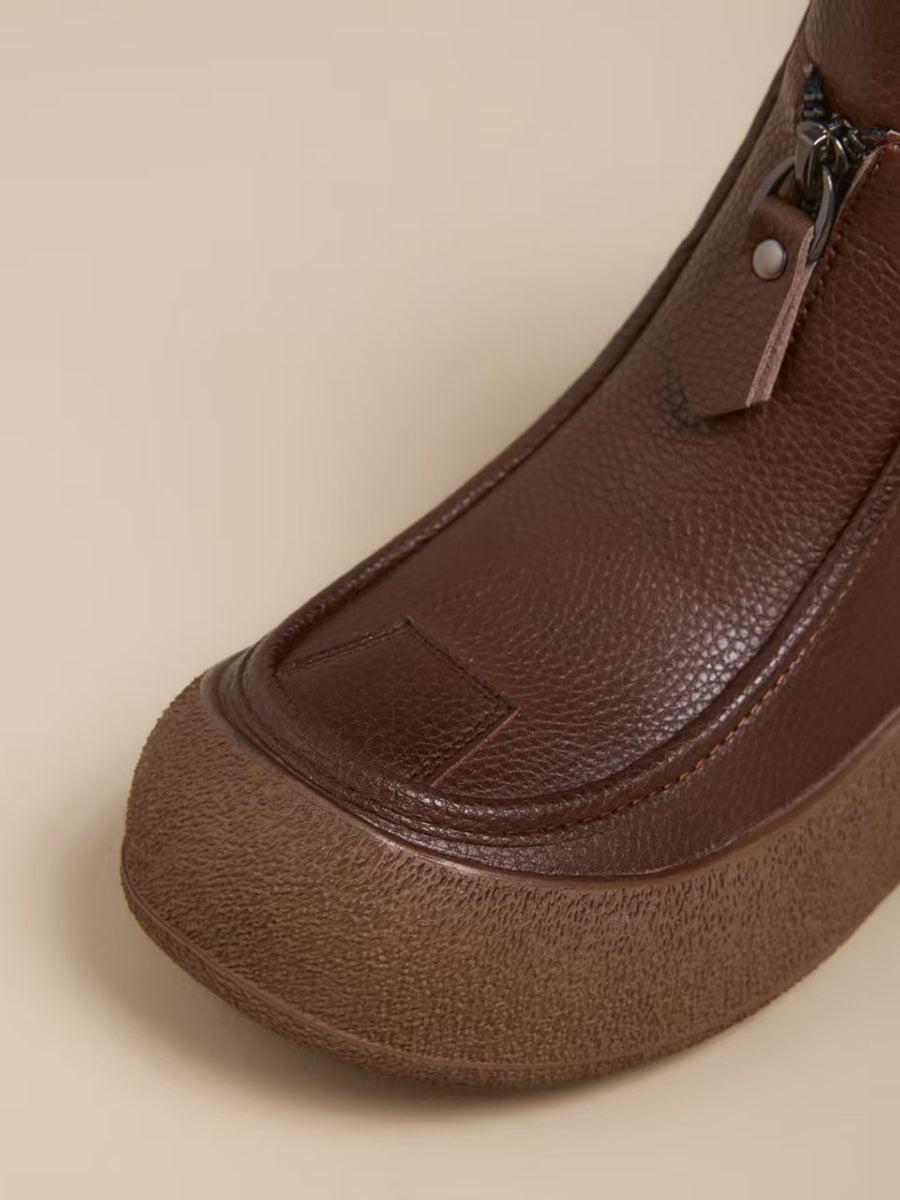 Women Winter Vintage Genuine Leather Flat Boots