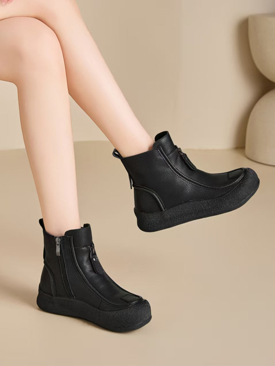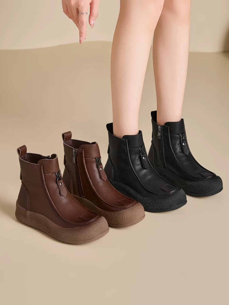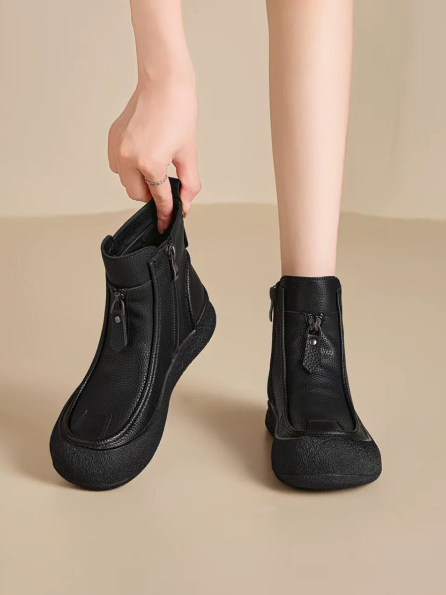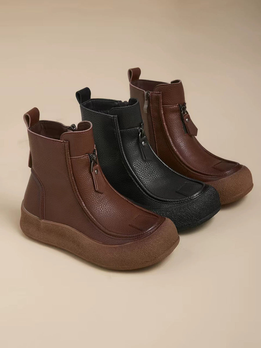 Women Winter Vintage Genuine Leather Flat Boots