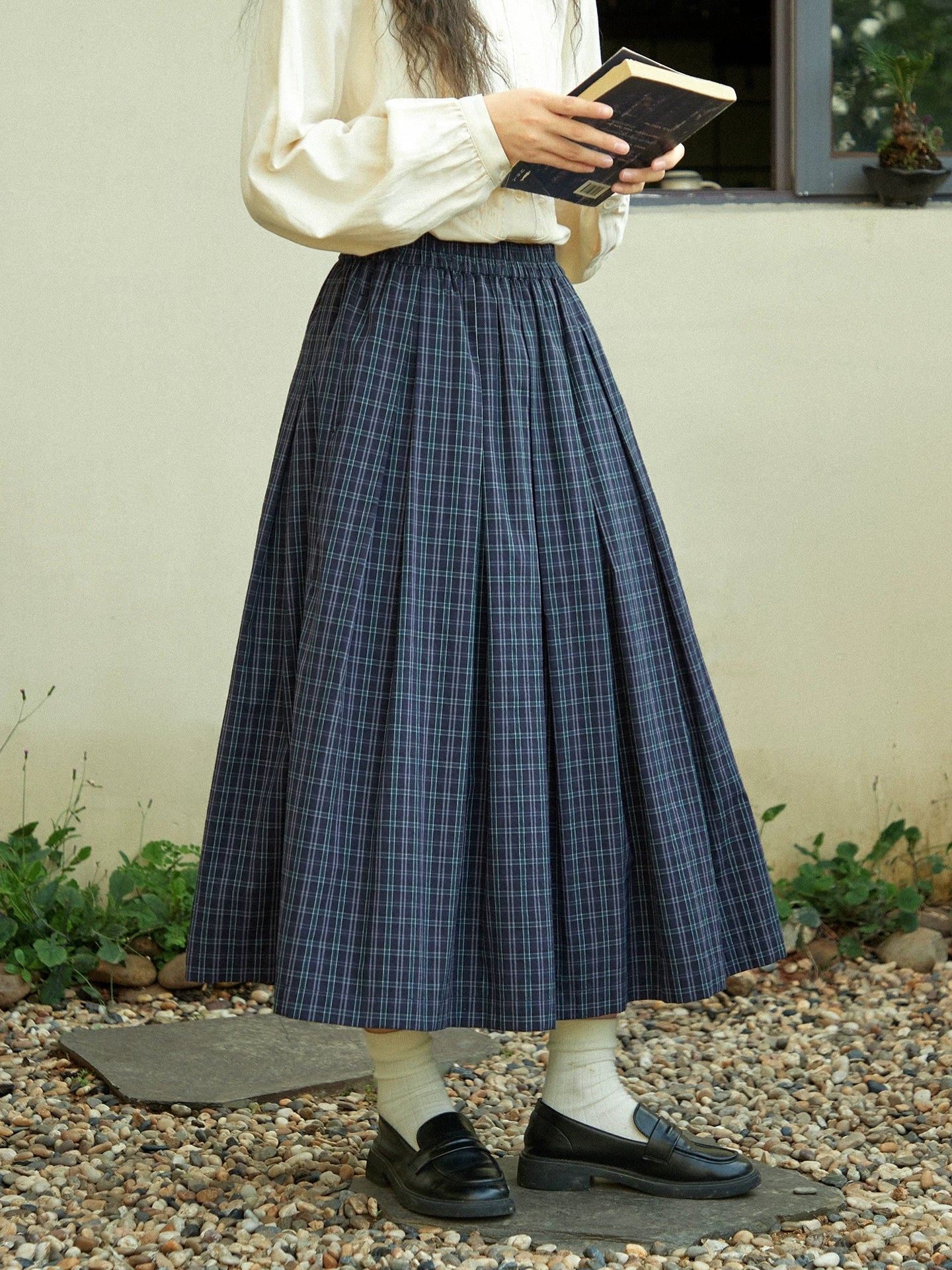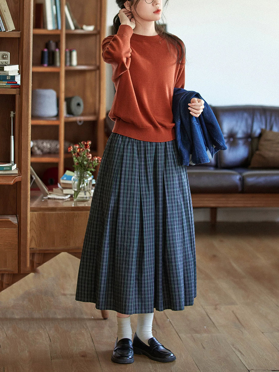 Women Winter Vintage Plaid Pleated A-Shape Skirt