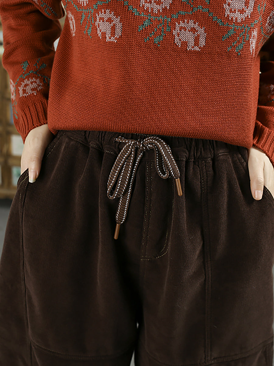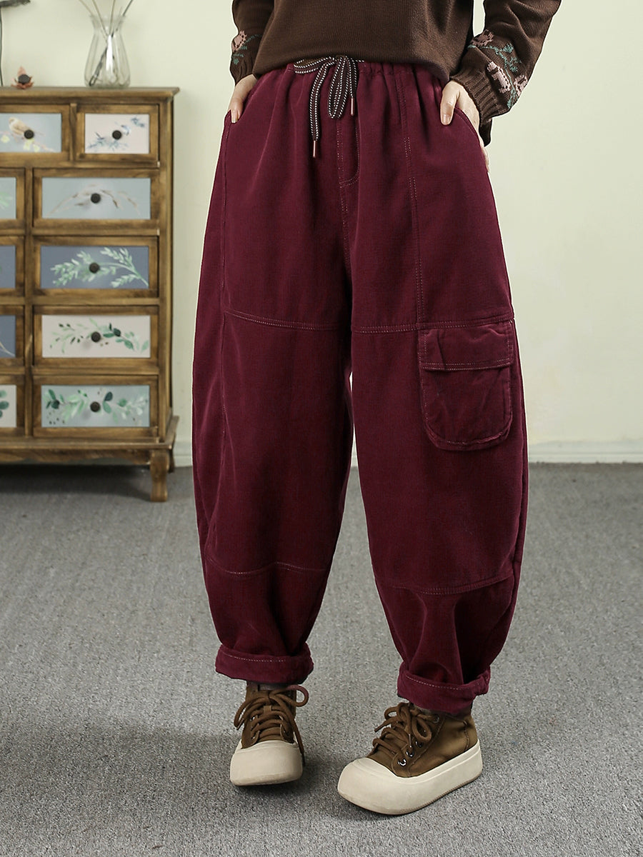 Women Winter Vintage Pure Color Fleece-lined Harem Pants