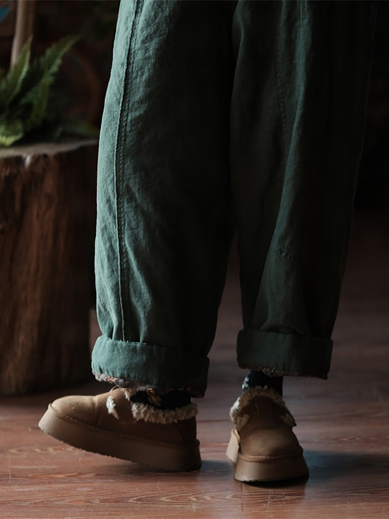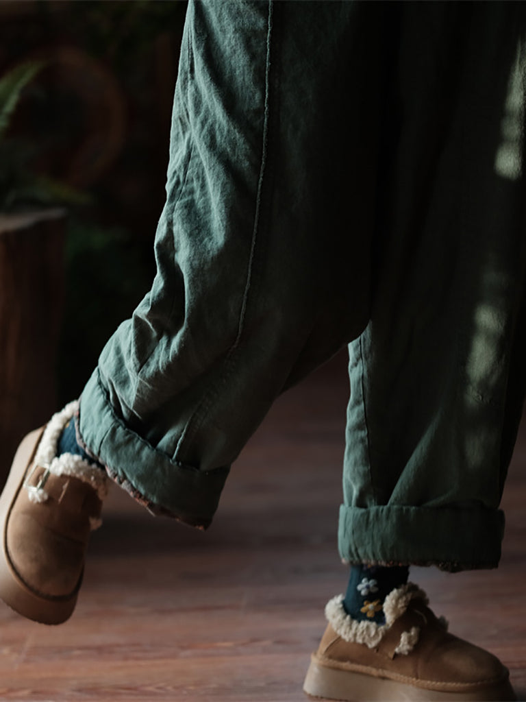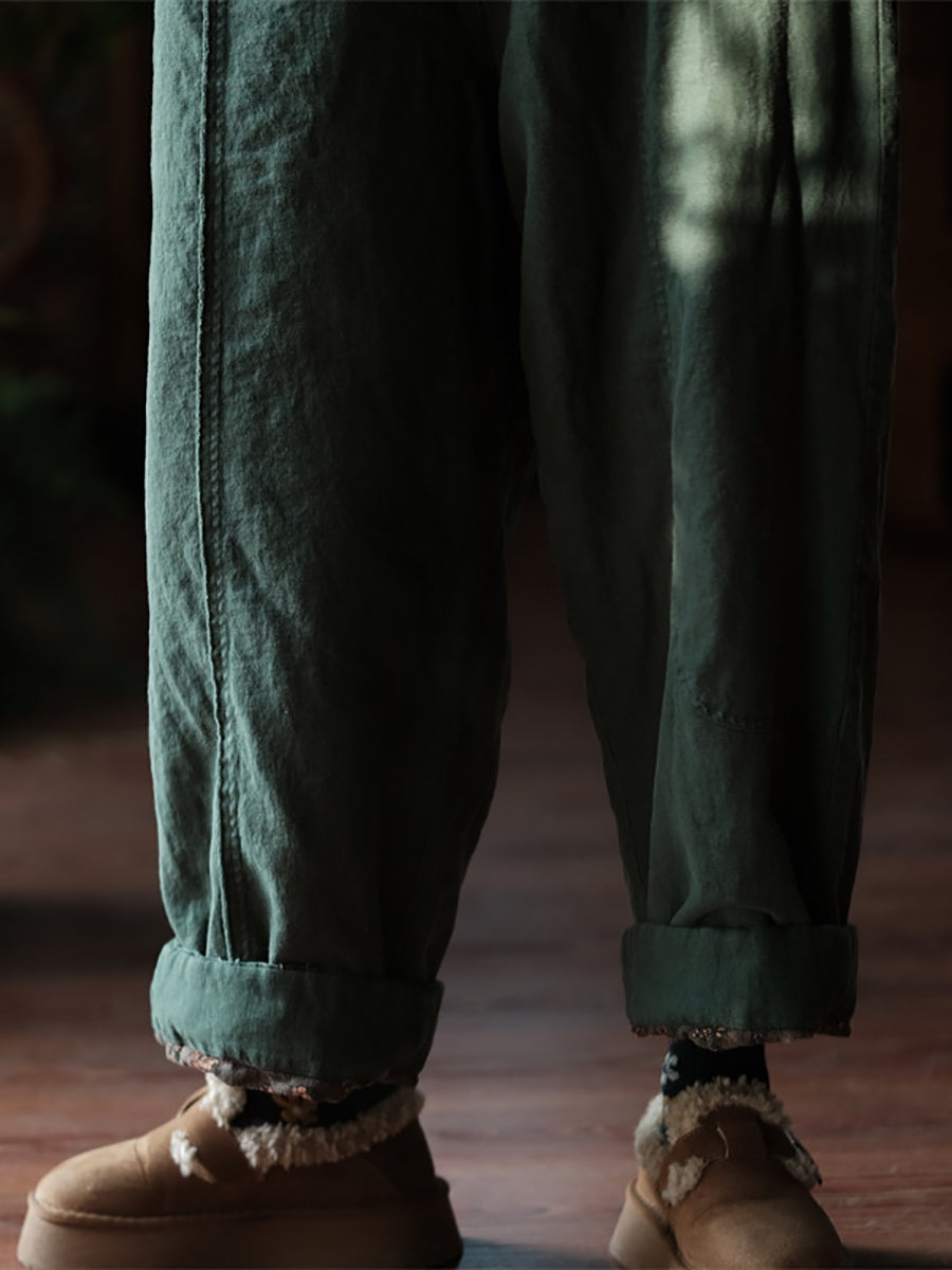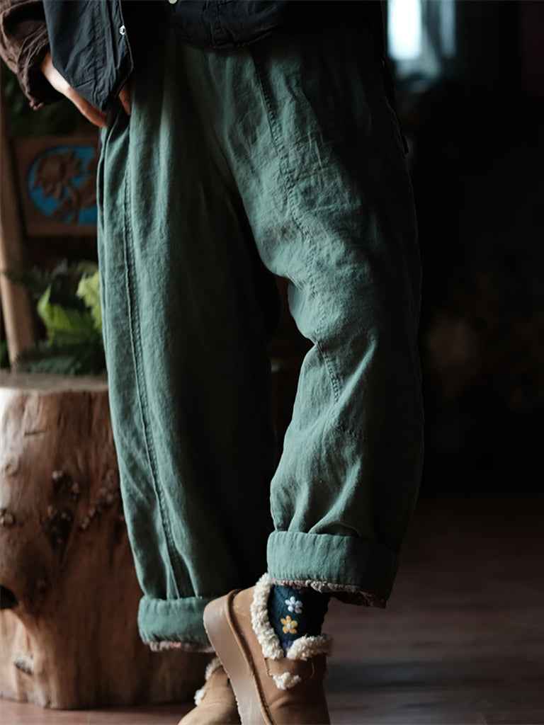 Women Winter Vintage Pure Color Straight Pants