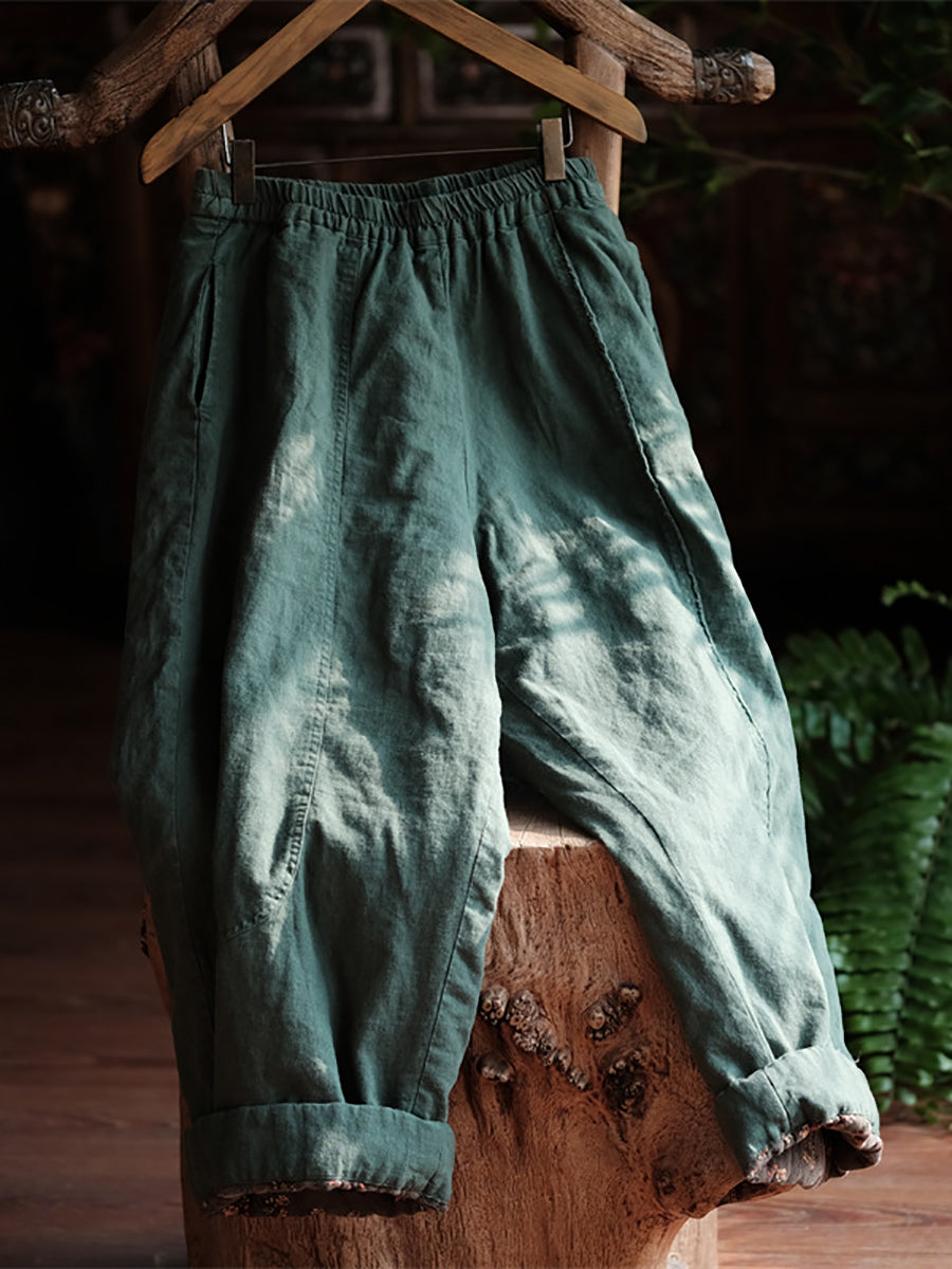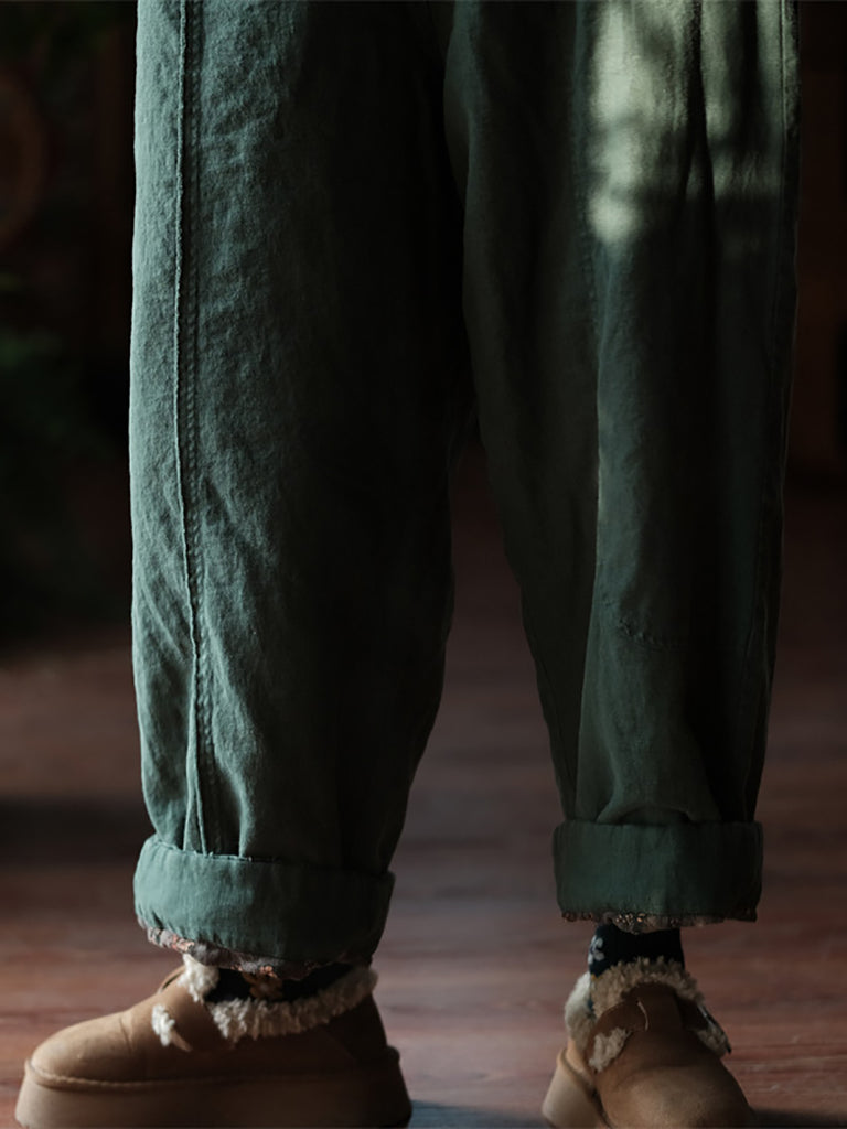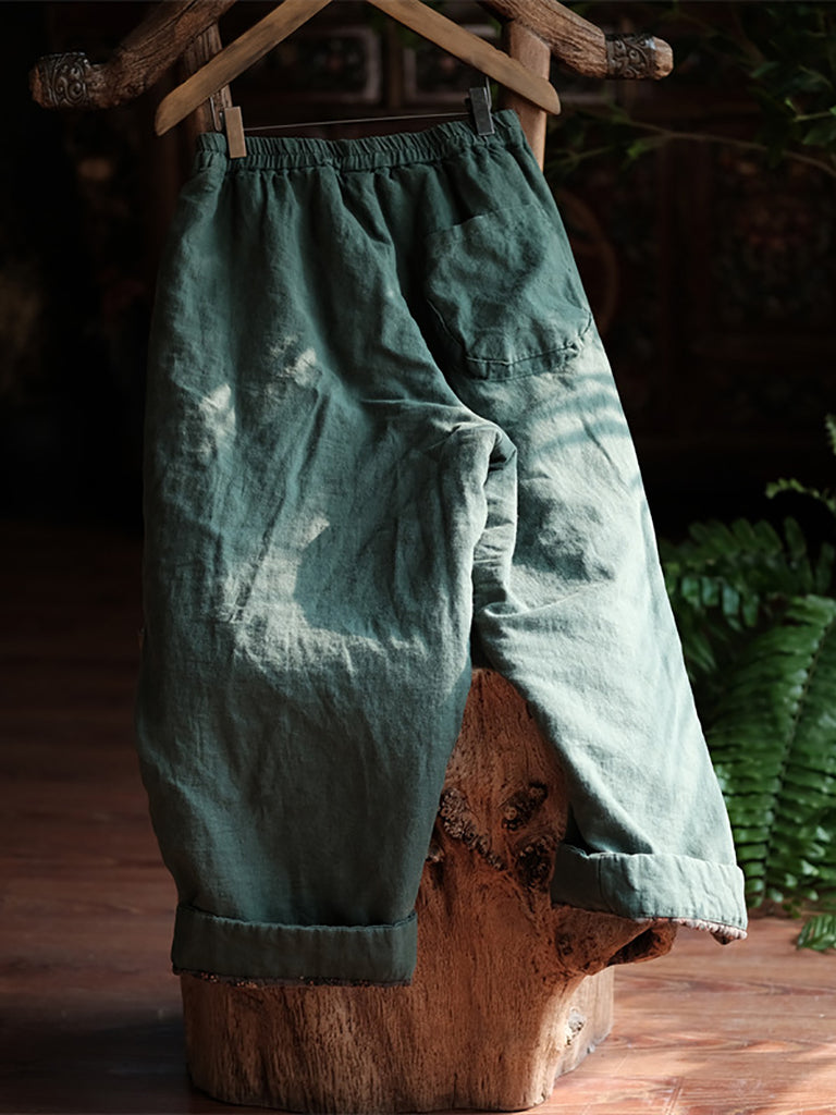 Crafted from a blend of cotton and linen, these straight pants offer both warmth and comfort for women during the winter season. The classic solid pattern and elastic waist provide a vintage touch to the overall design, making it a chic addition to any wardrobe.