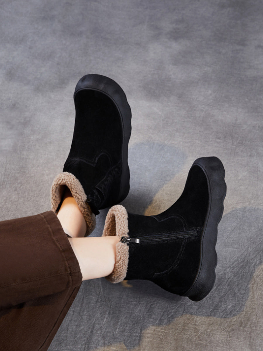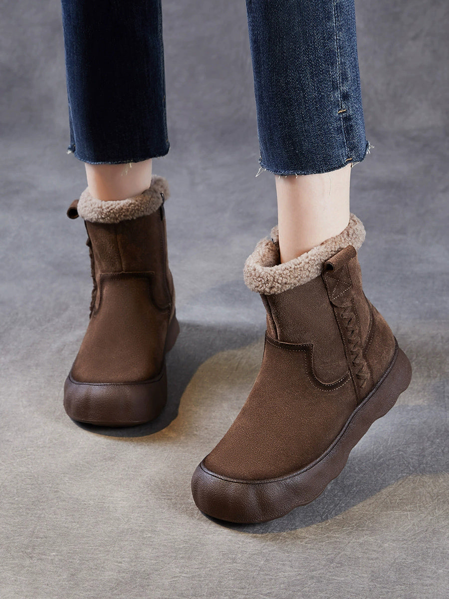 Women Winter Vintage Suded Leather Fleece-lined Boots
