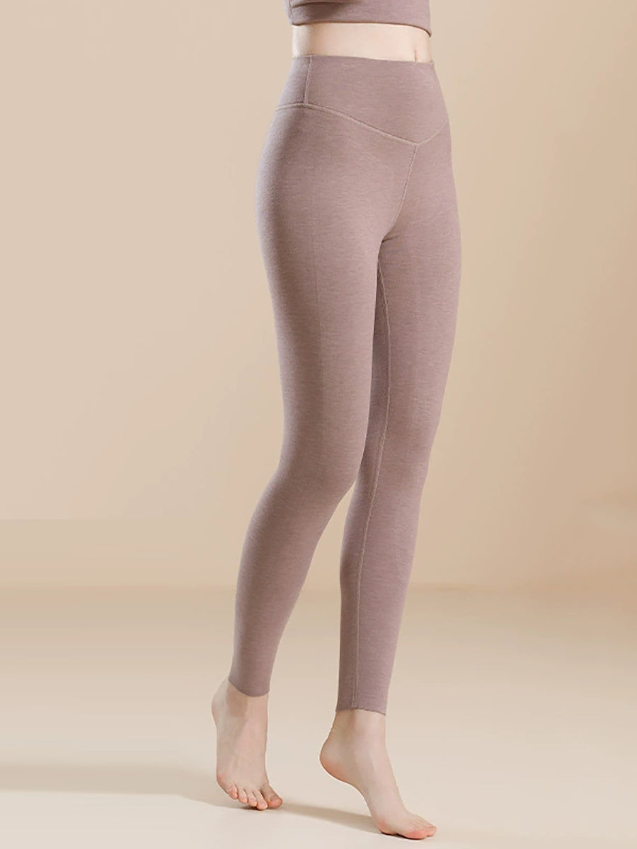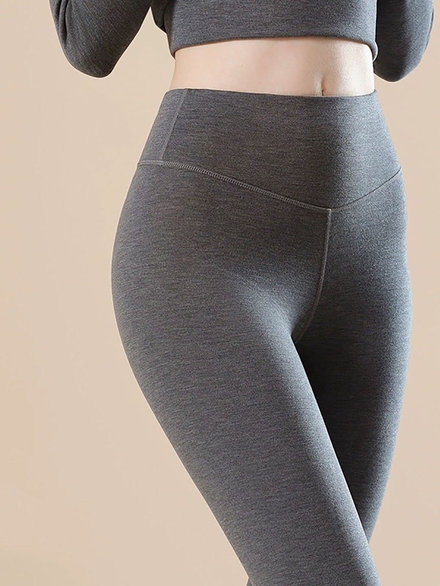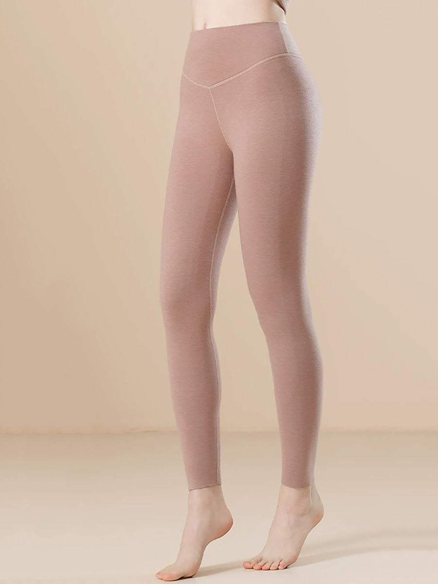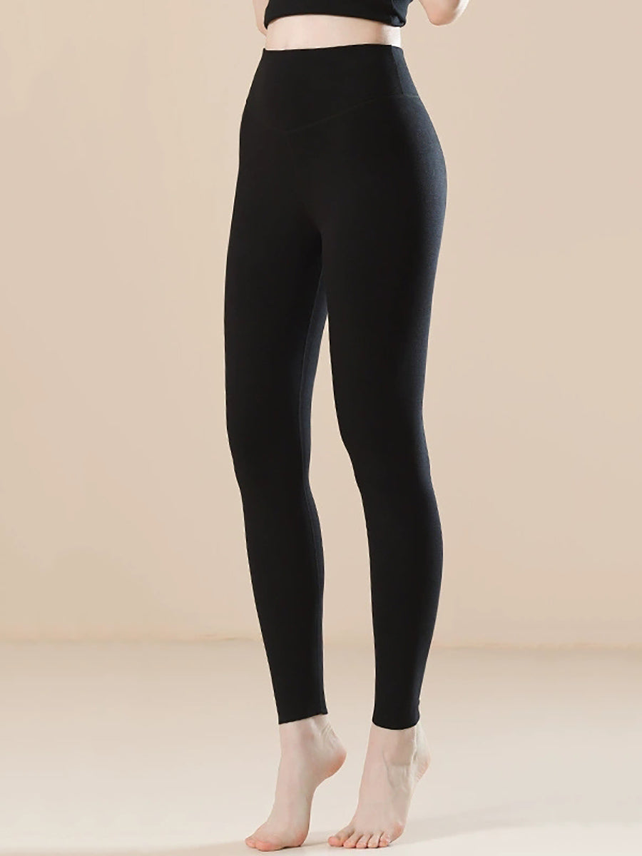 Women Winter Warm Pure Color High-Waist Leggings
