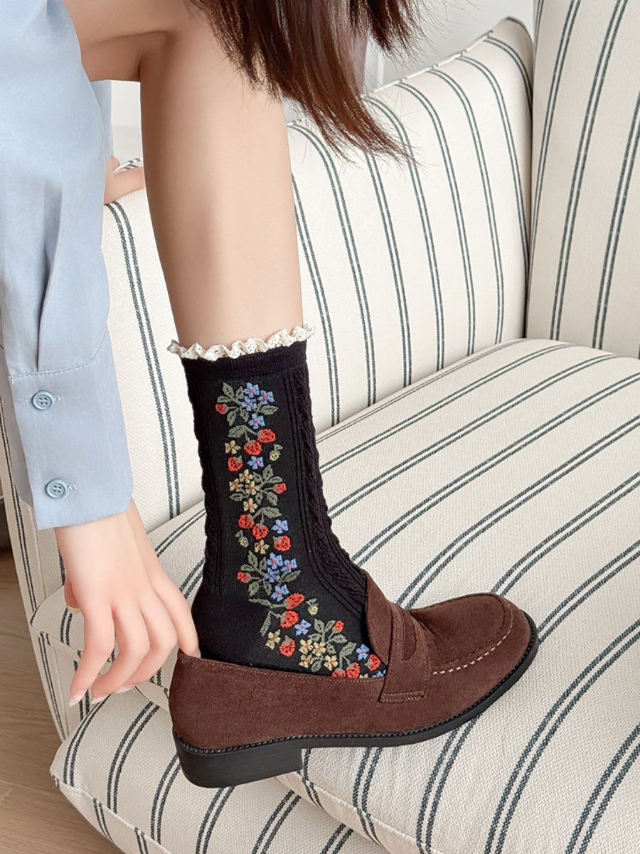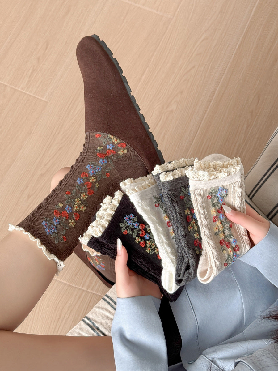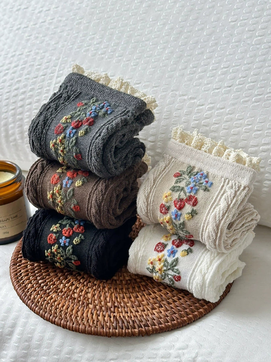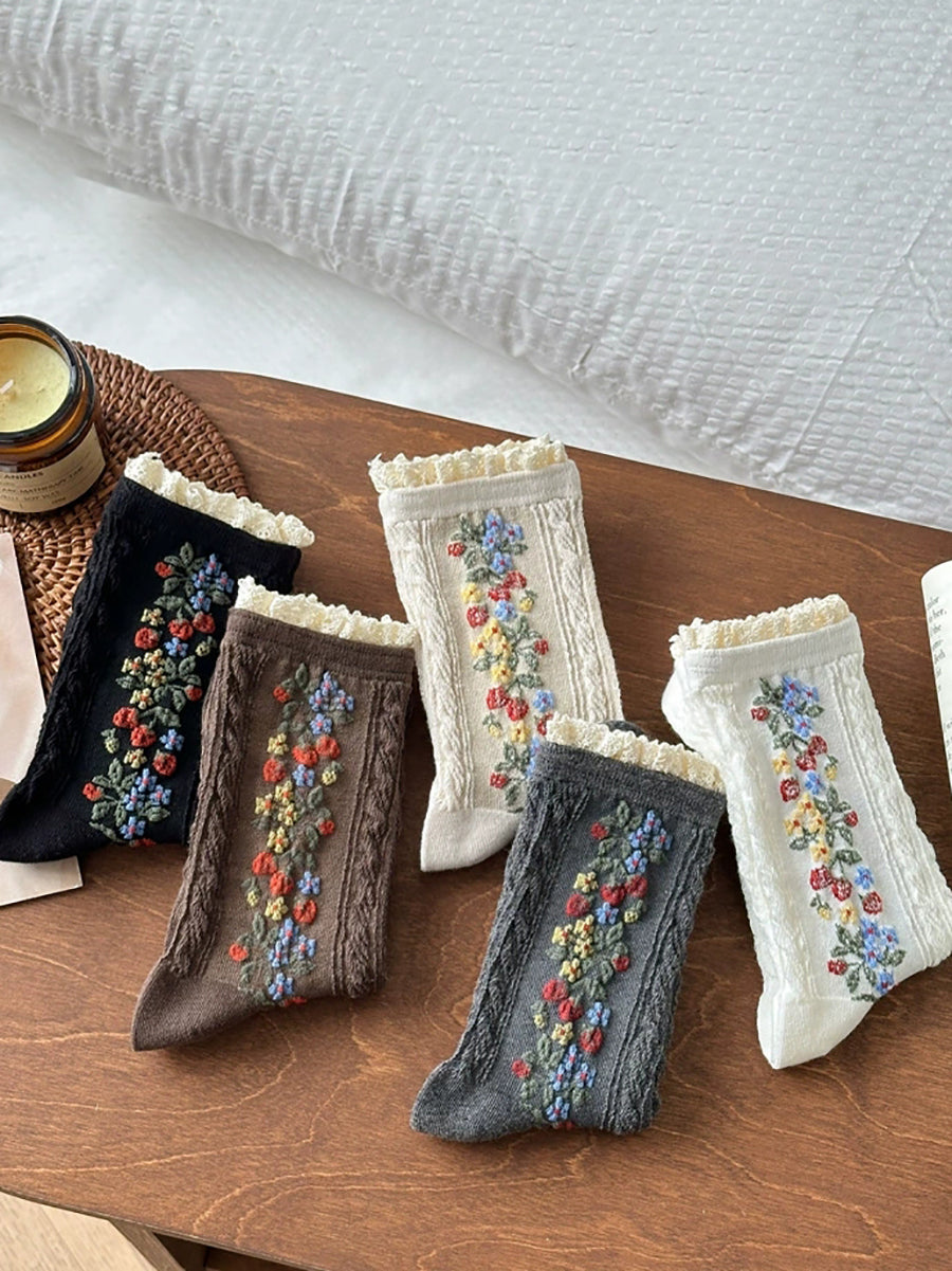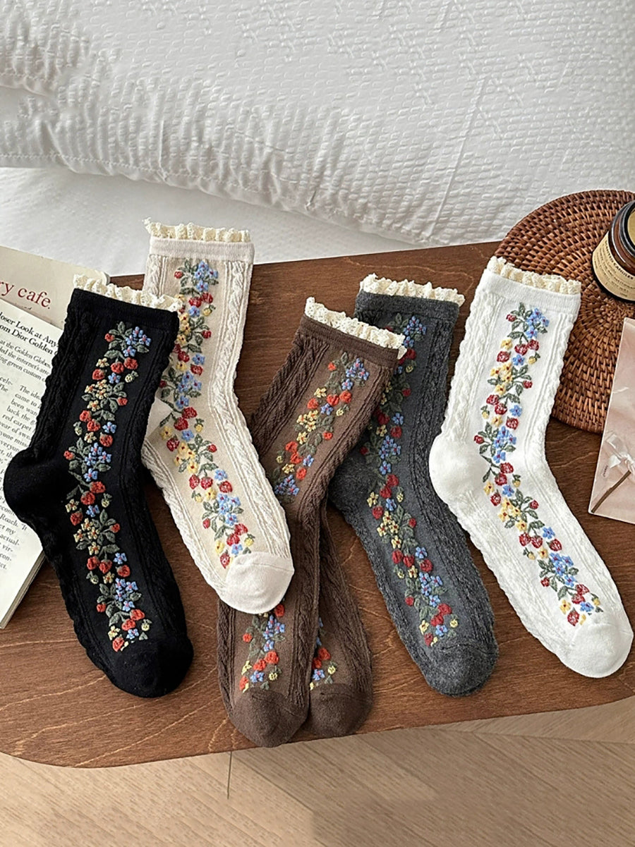 5 párů dámských pletených krajkových ponožek s uměleckým květinovým vzorem