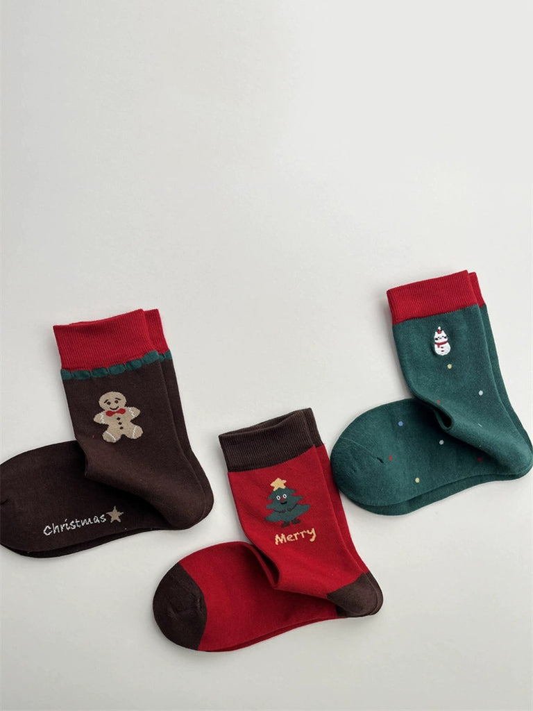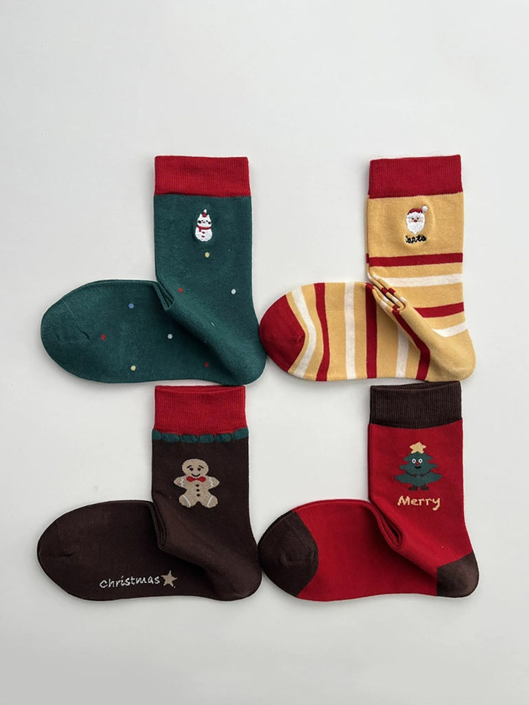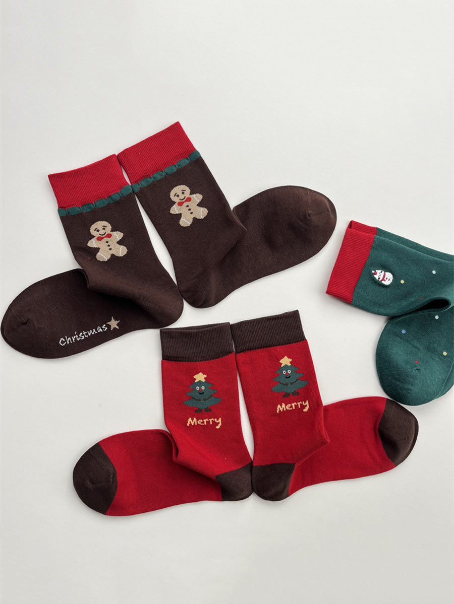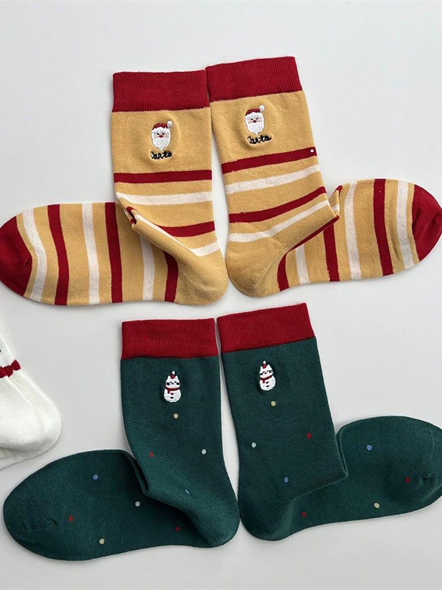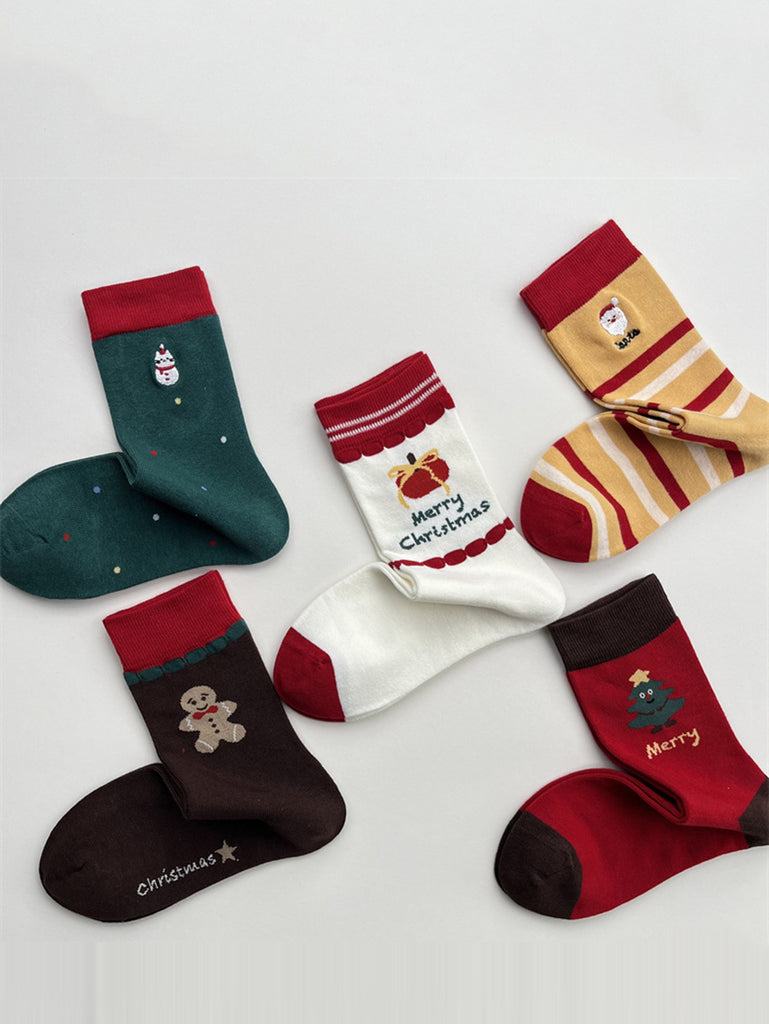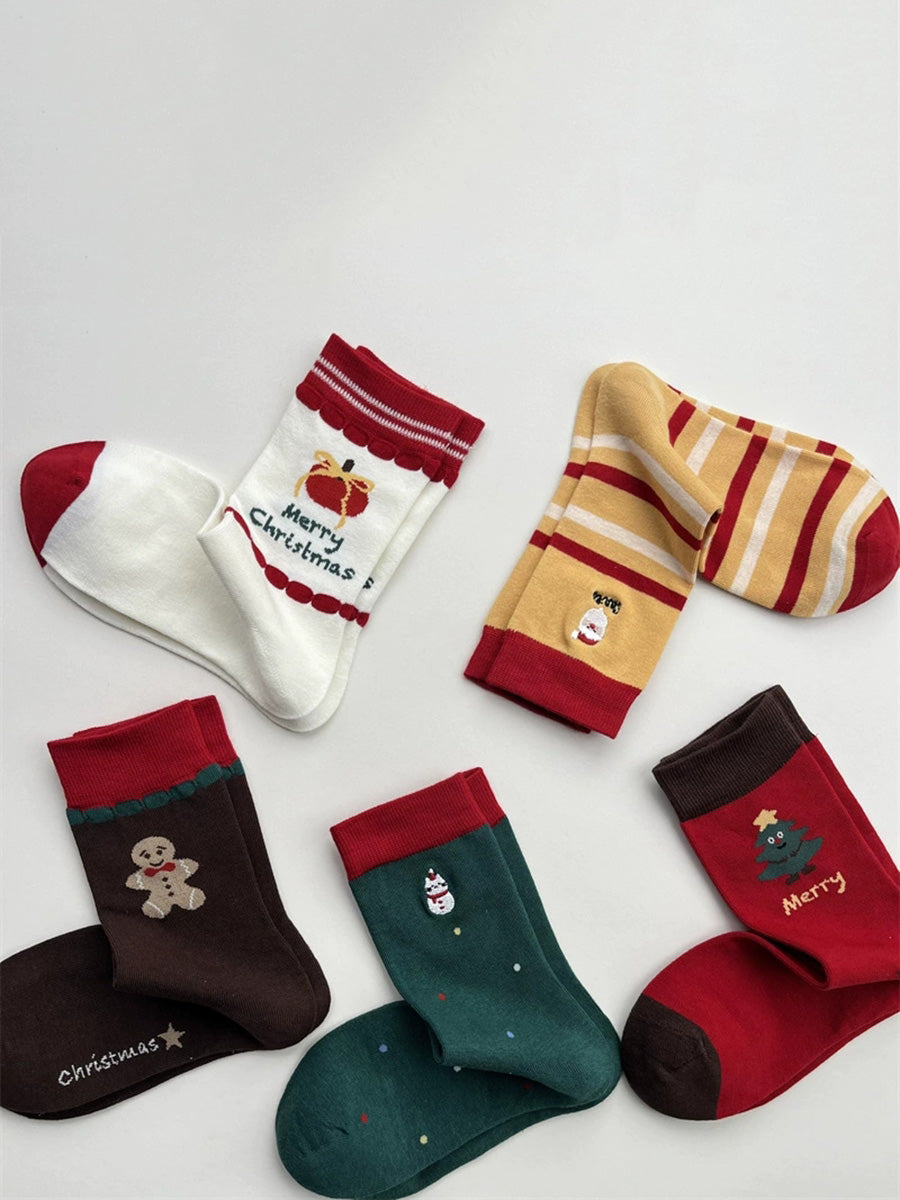 5 párů dámských vánočních bavlněných ponožek Sytle Colorblock