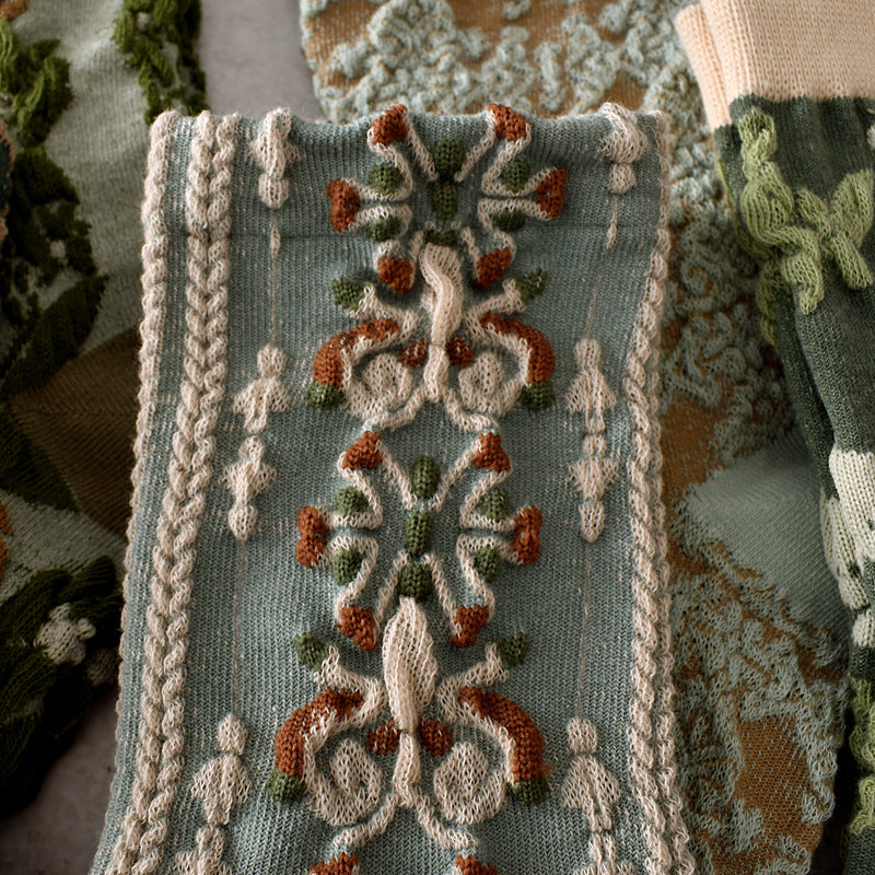 5 párů Dámské Jarní Vintage Rostlinné Jacquard Ponožky
