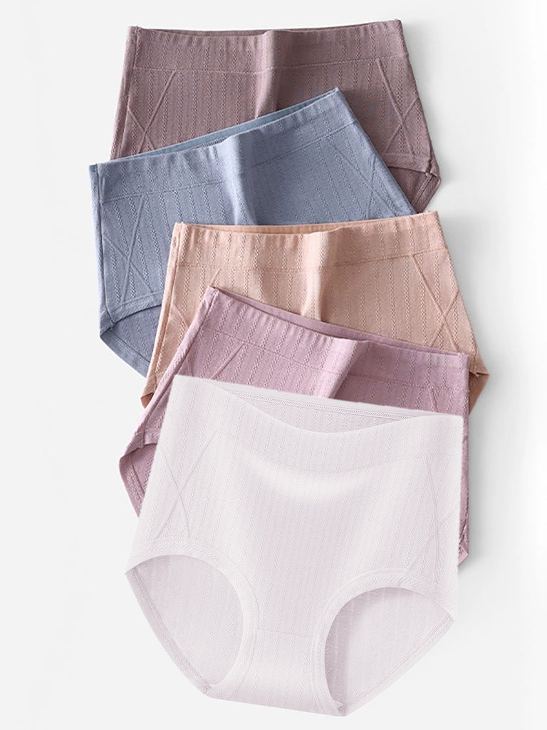 5dílné dámské ležérní spodní prádlo s vysokým pasem v čistých barvách