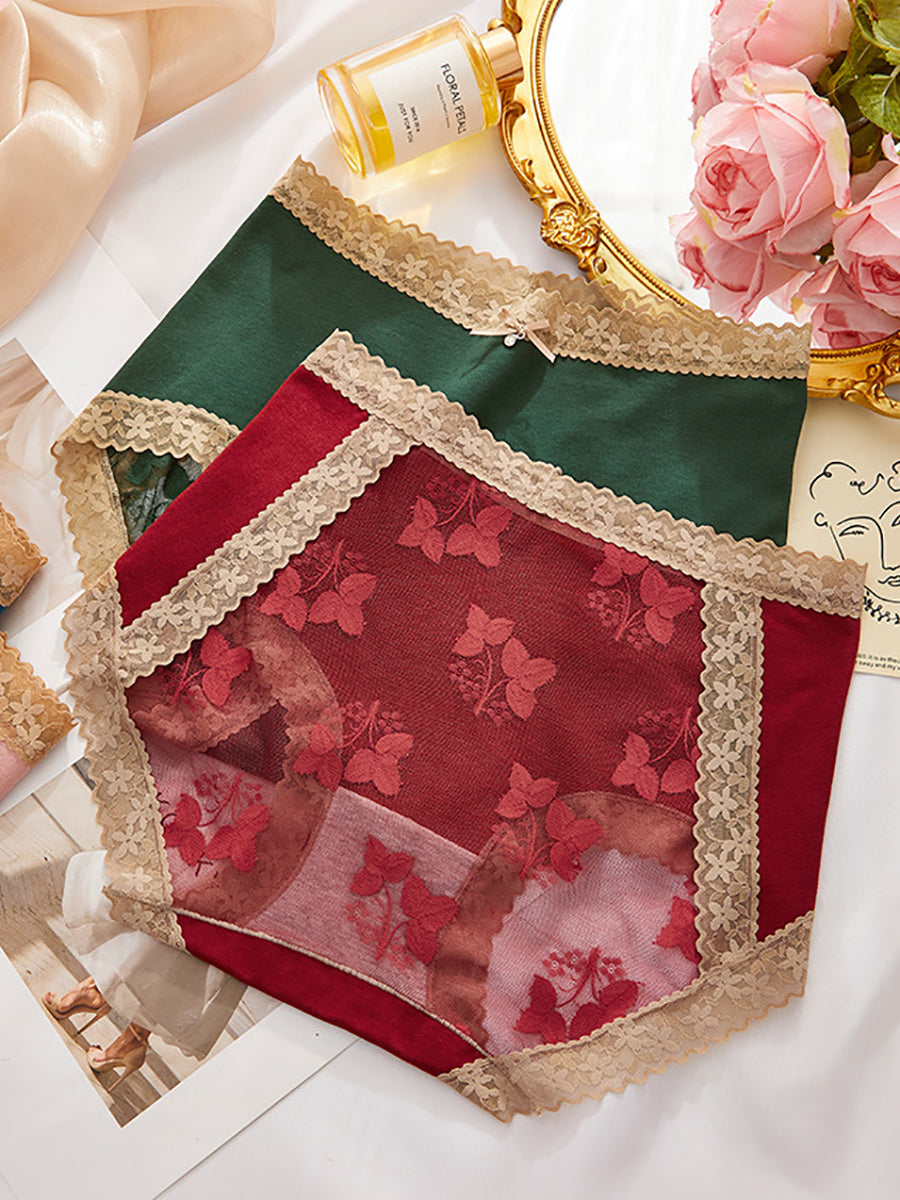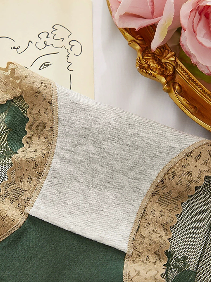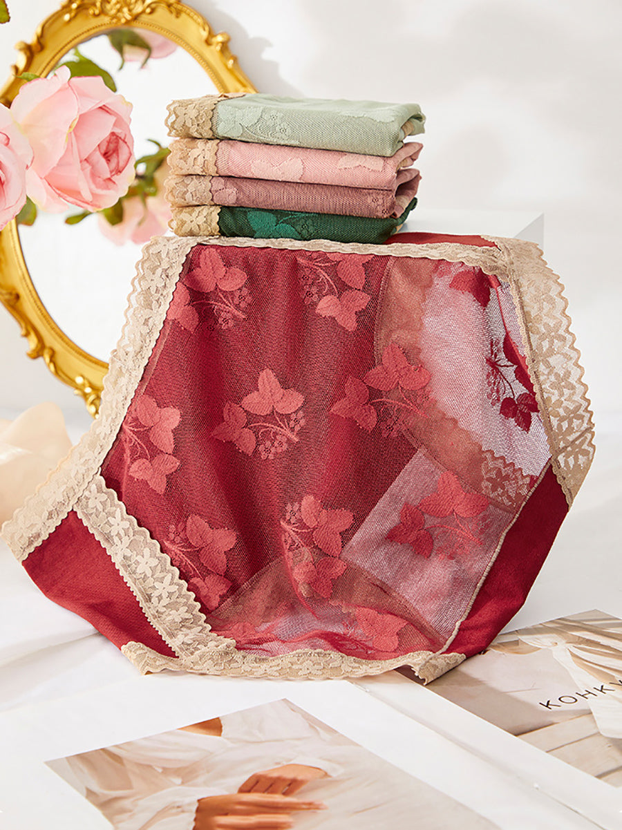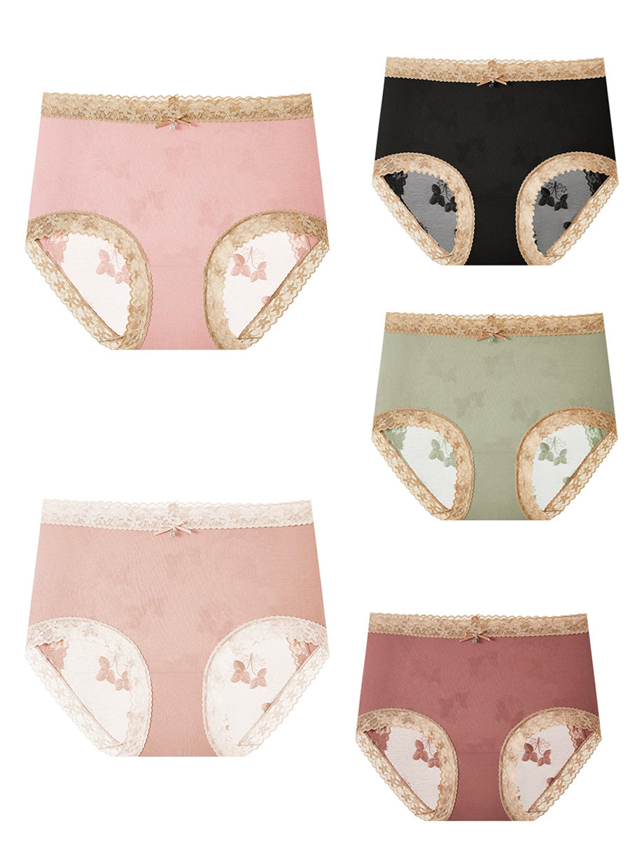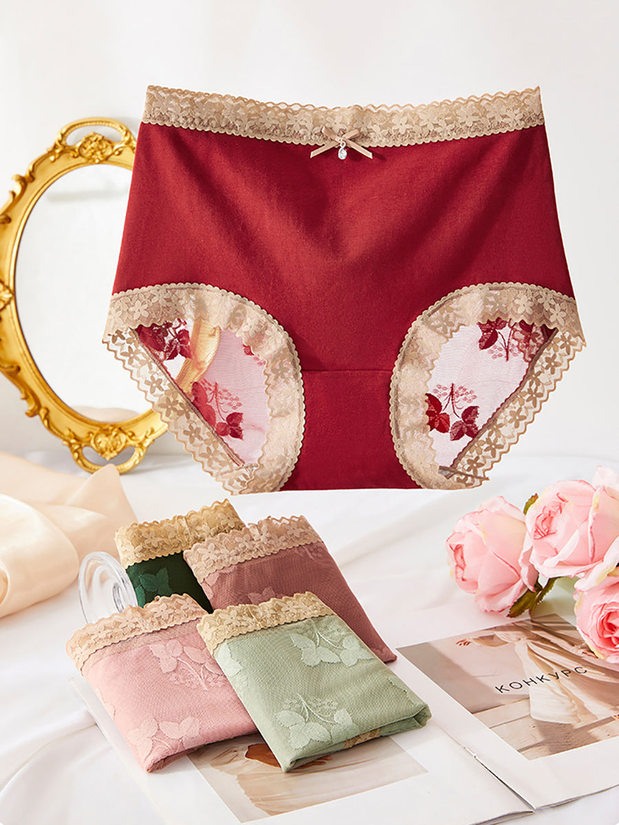 5dílné dámské spodní prádlo s květinovou krajkou a vysokým pasem