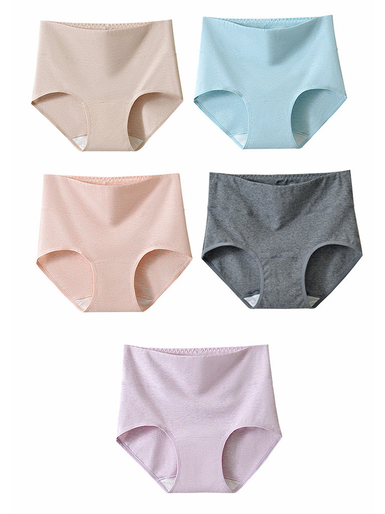 5dílné dámské bavlněné spodní prádlo s vysokým pasem v čistých barvách