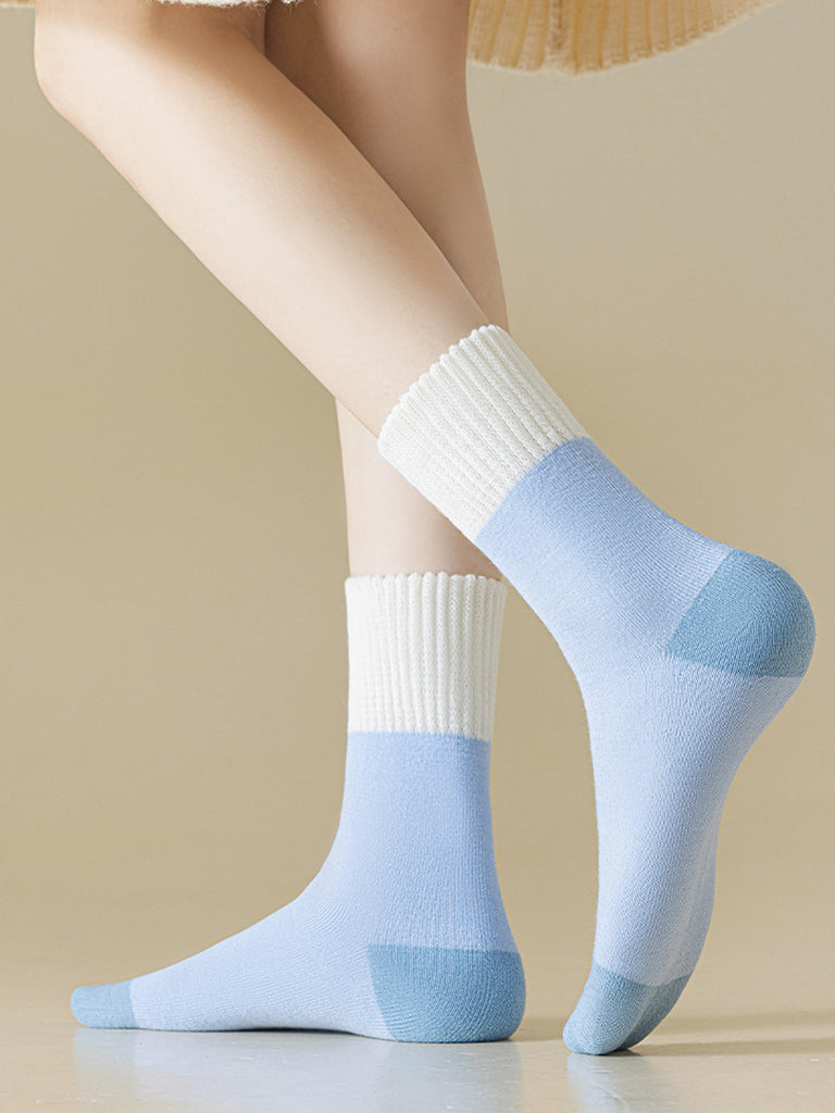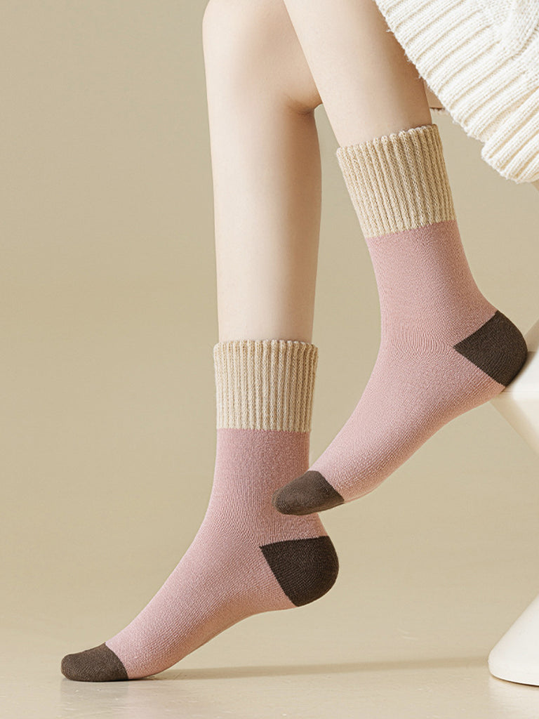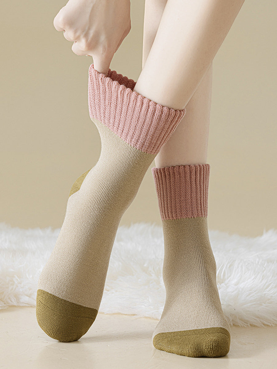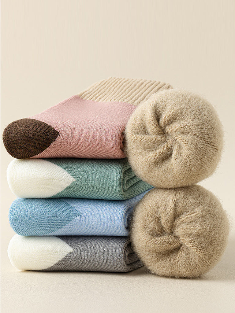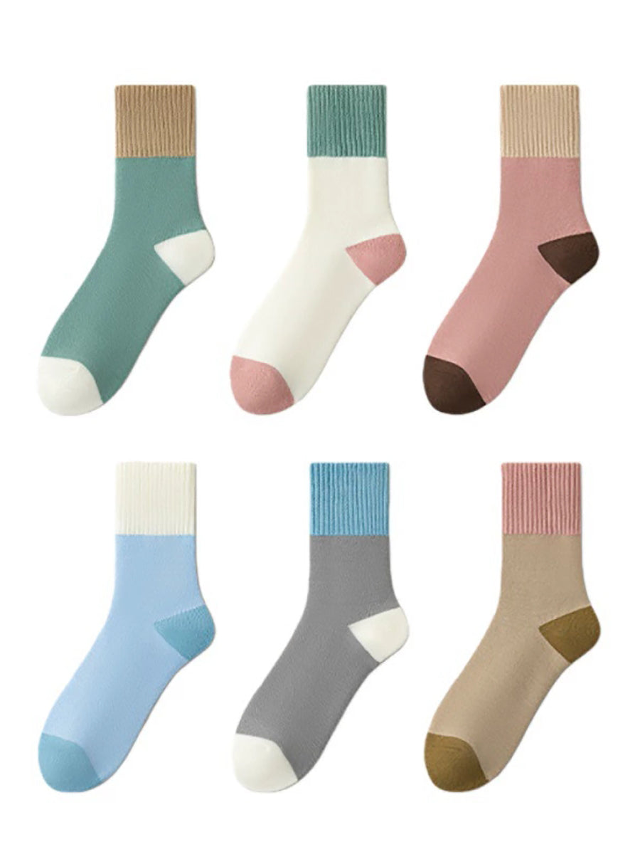 6 párů dámských tlustých ponožek s uměleckými barevnými bloky