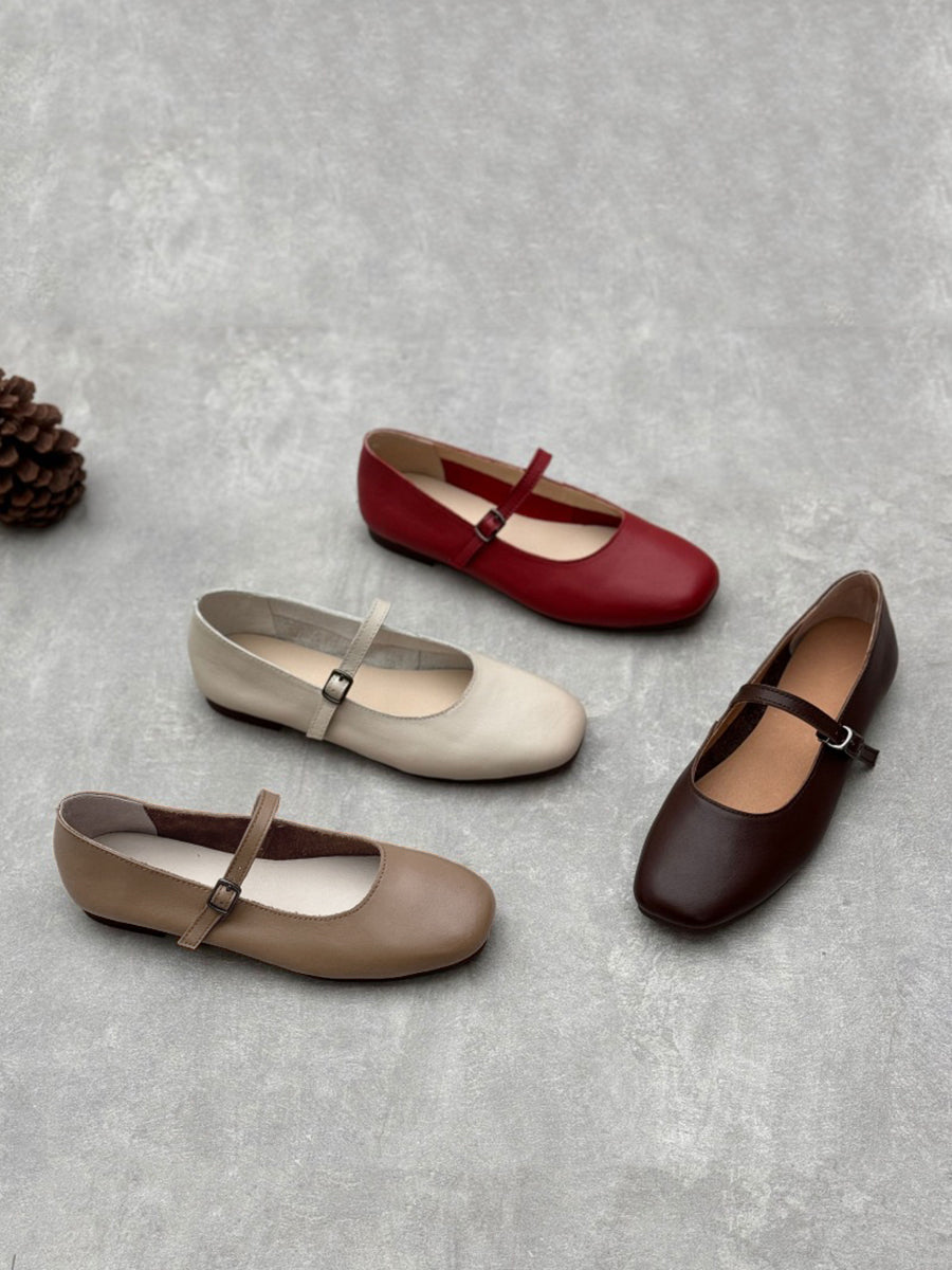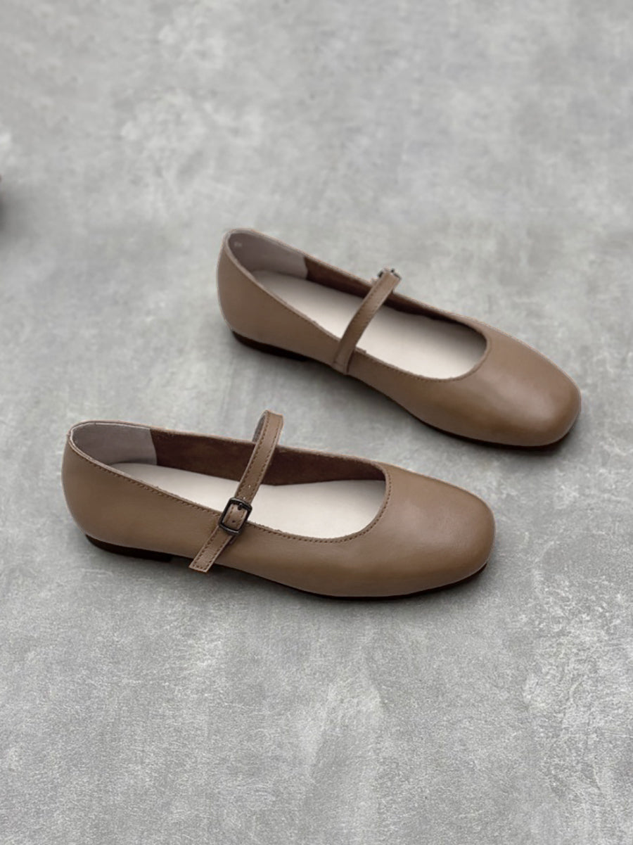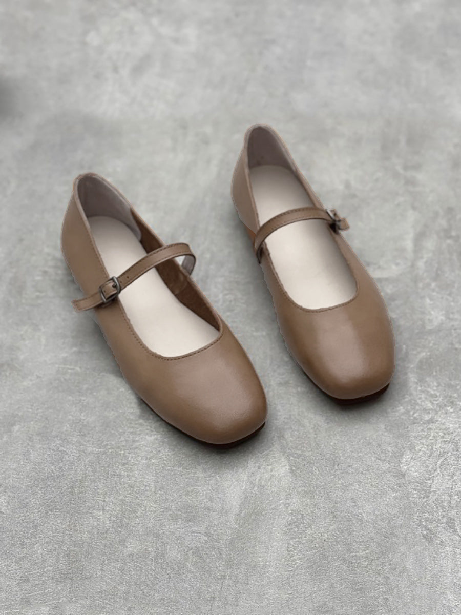Dámské elegantní masivní kožené boty na nízkém podpatku Mary Jane