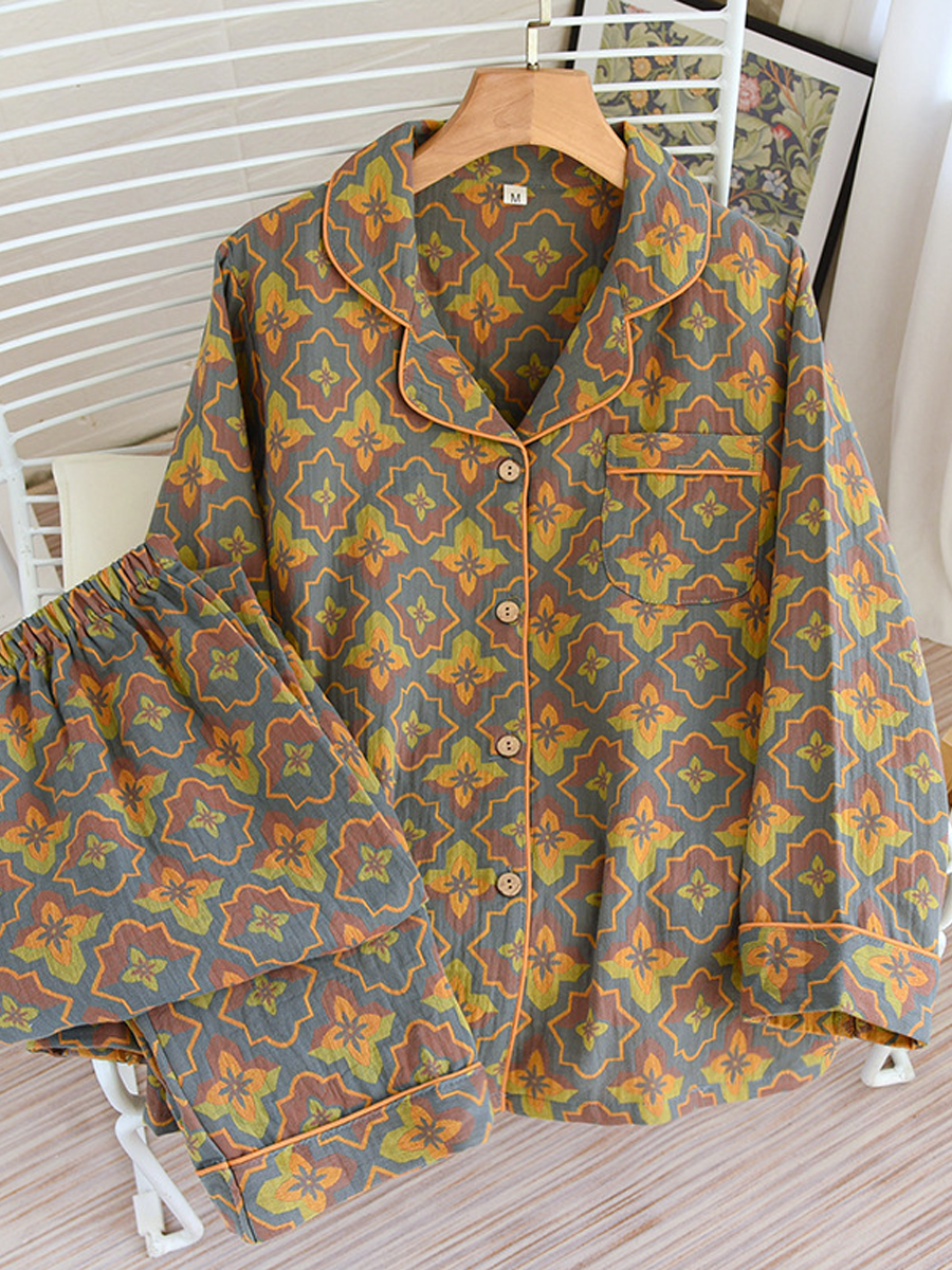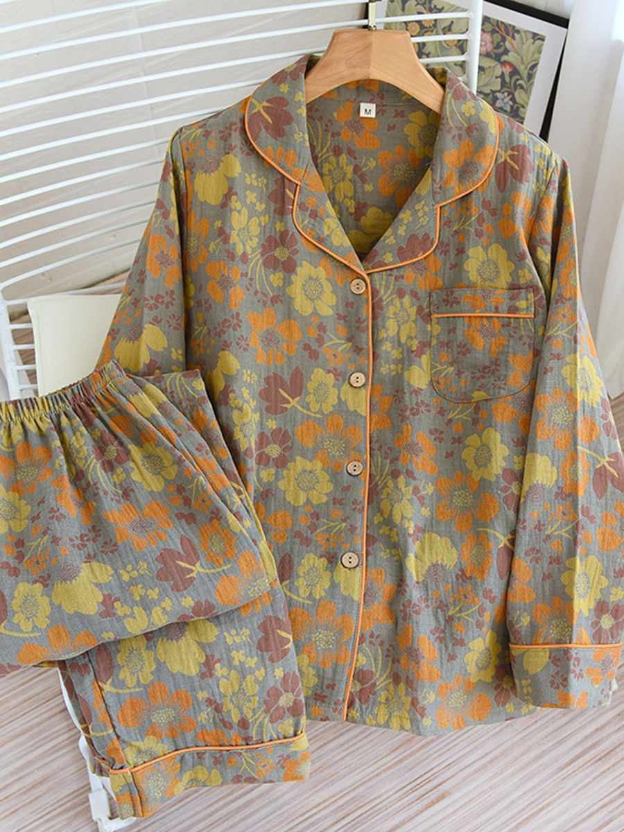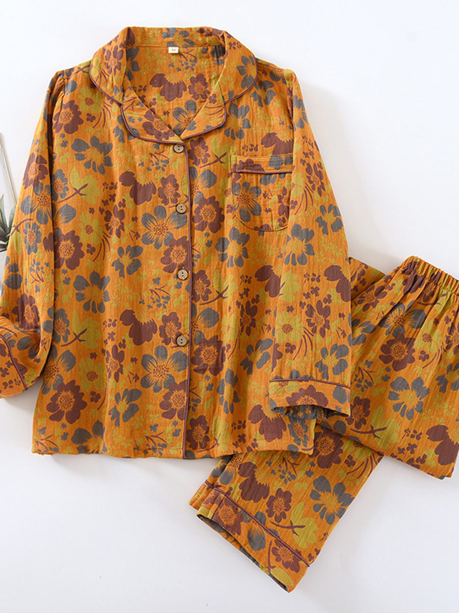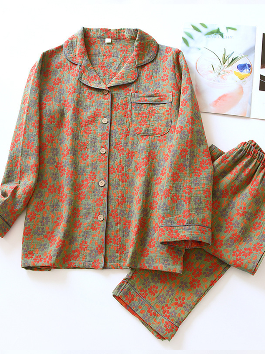 Ten/Ta/To Dámská letní květinová pyžamová sada je vyrobena z měkké žakárové gázy pro pohodlí. Tato stylová souprava má výstřih do V, květinový vzor, dlouhé rukávy a elastický pas s kalhotami po celé délce, které jsou ideální pro lenošení doma.