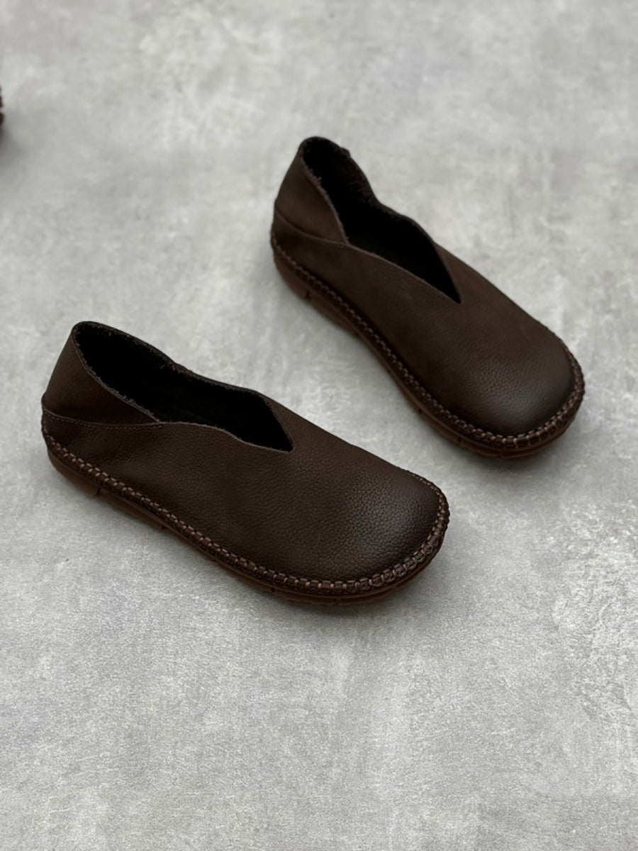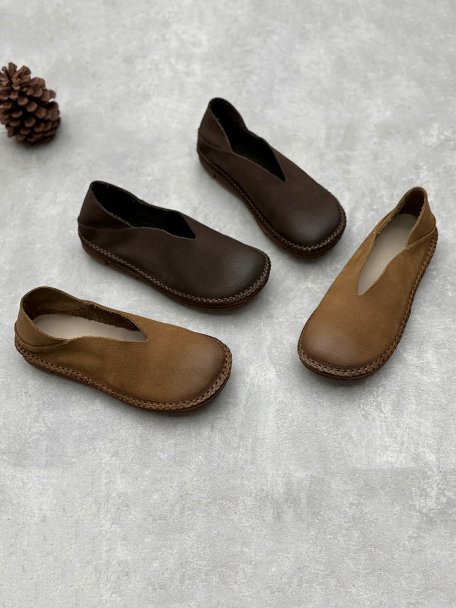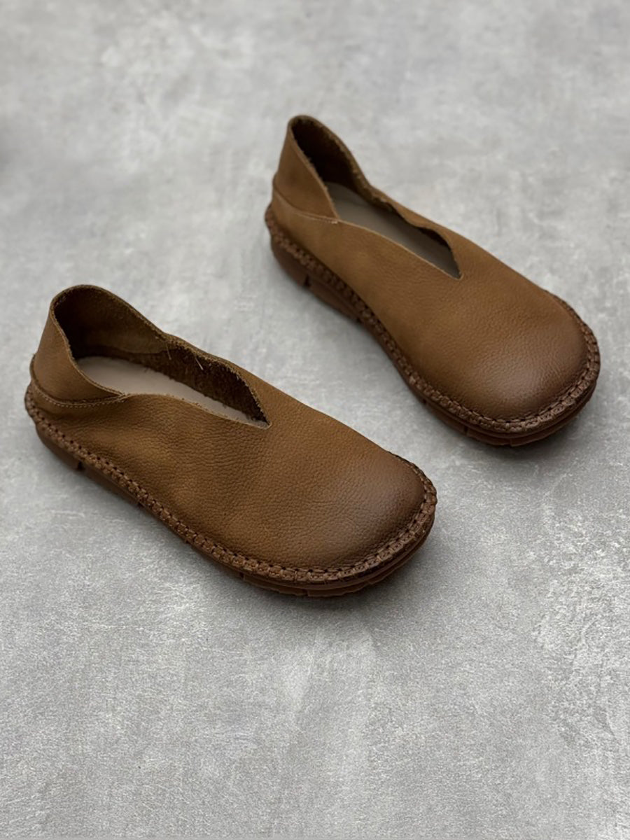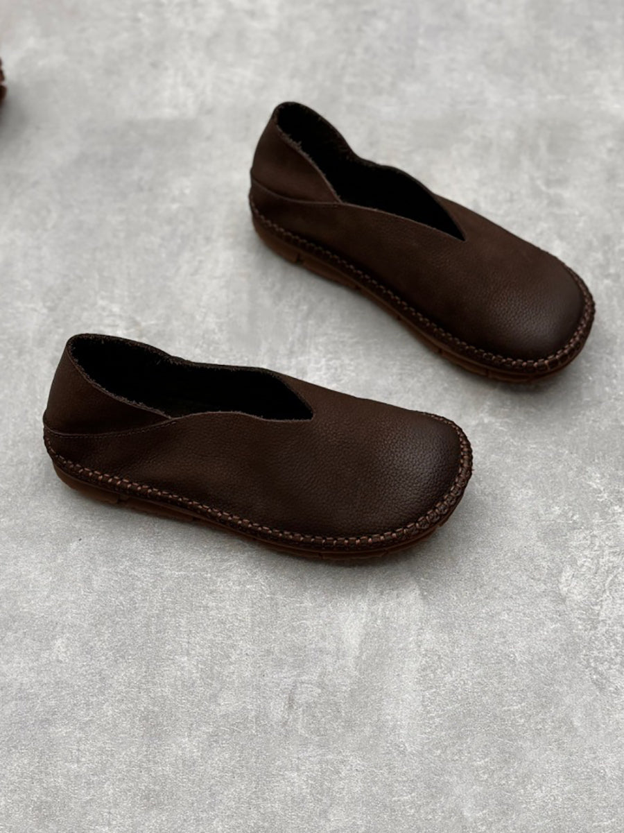 Dámské letní vintage pevné kožené měkké ploché boty