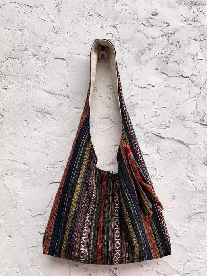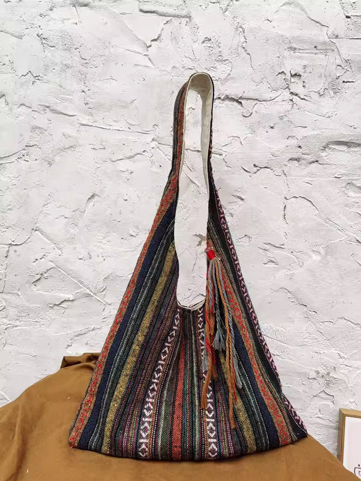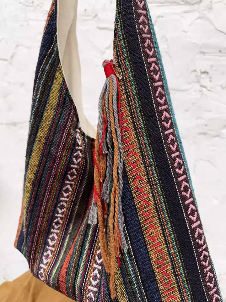 3038 Etnická pruhovaná kabelka přes rameno s barevnými bloky