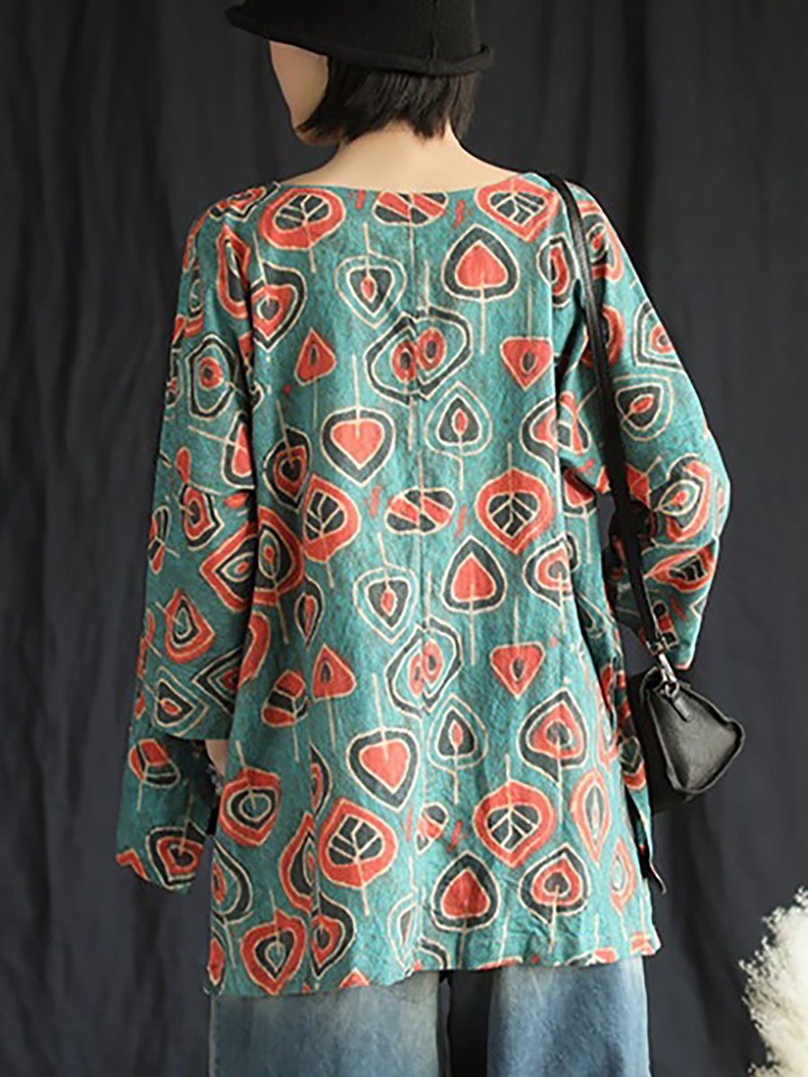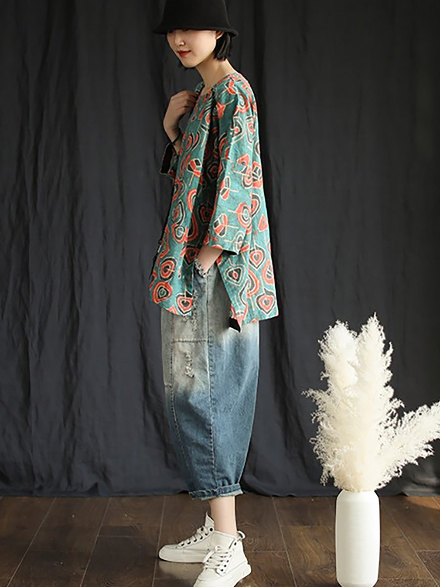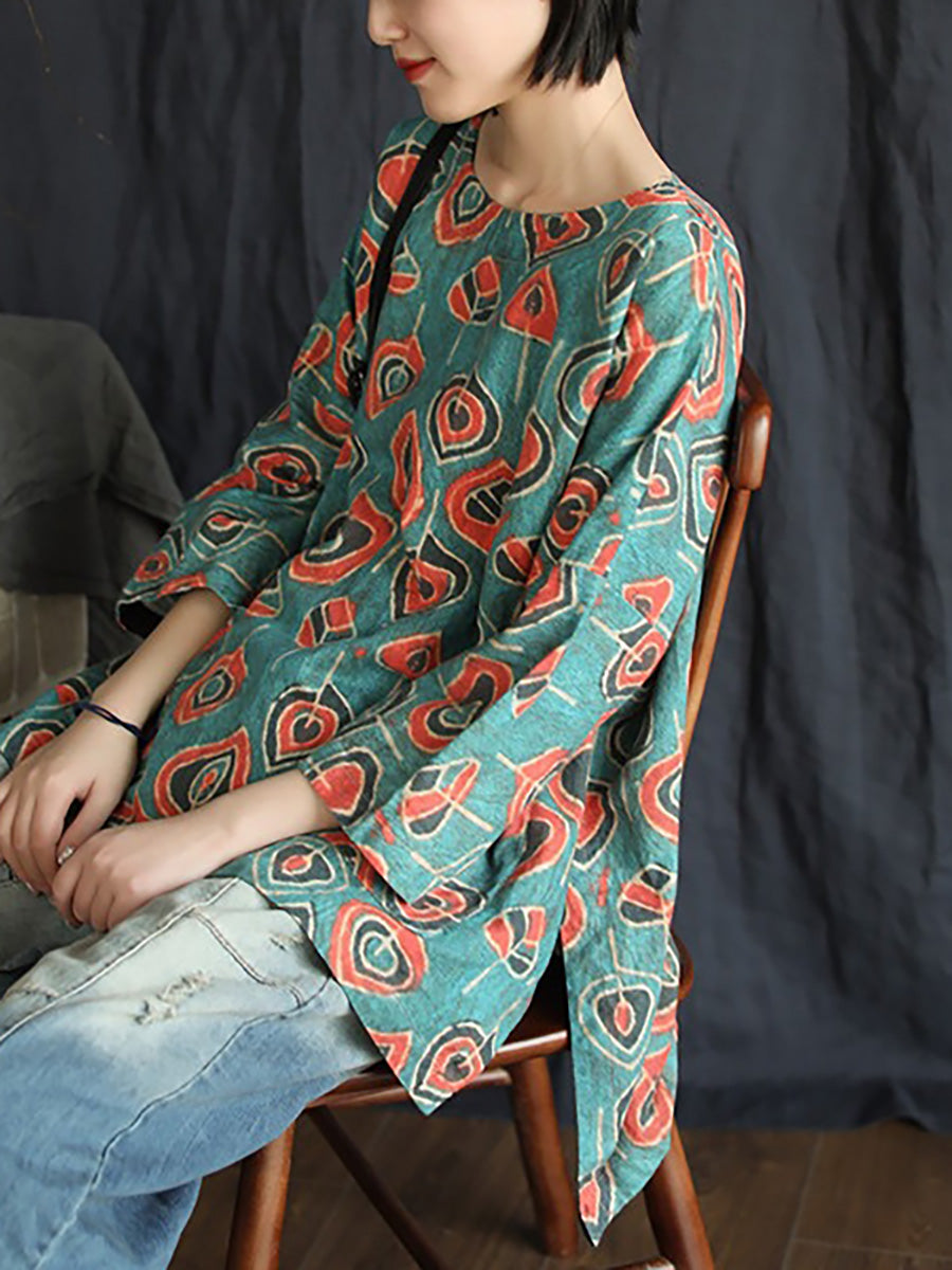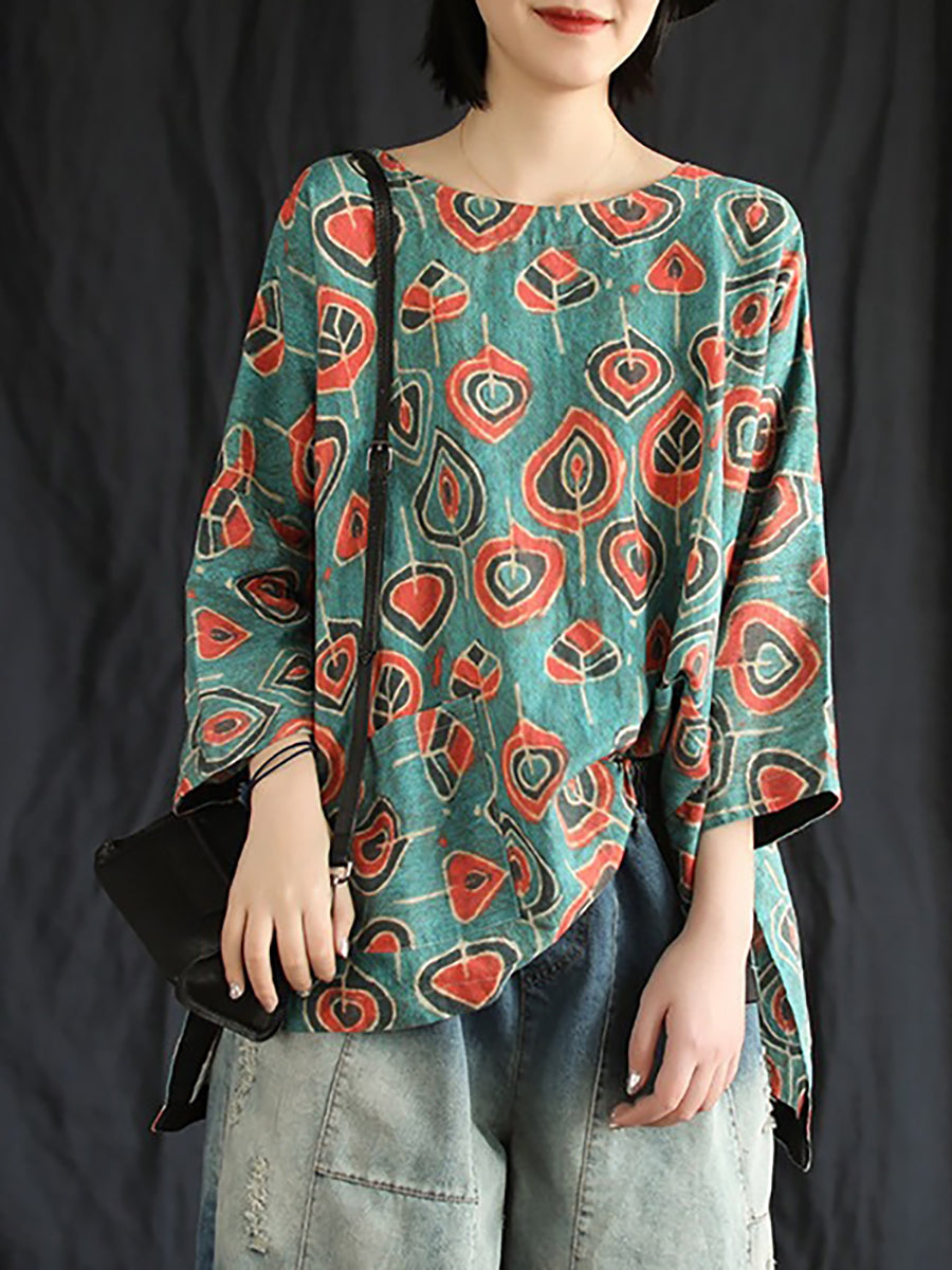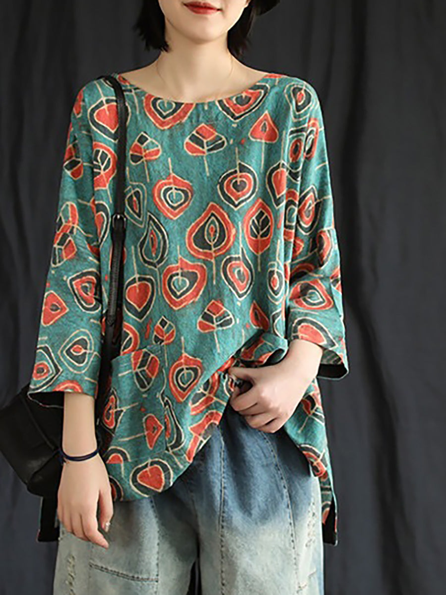 Neformální květinové tričko ze 100% lenu Buykud pro volný čas