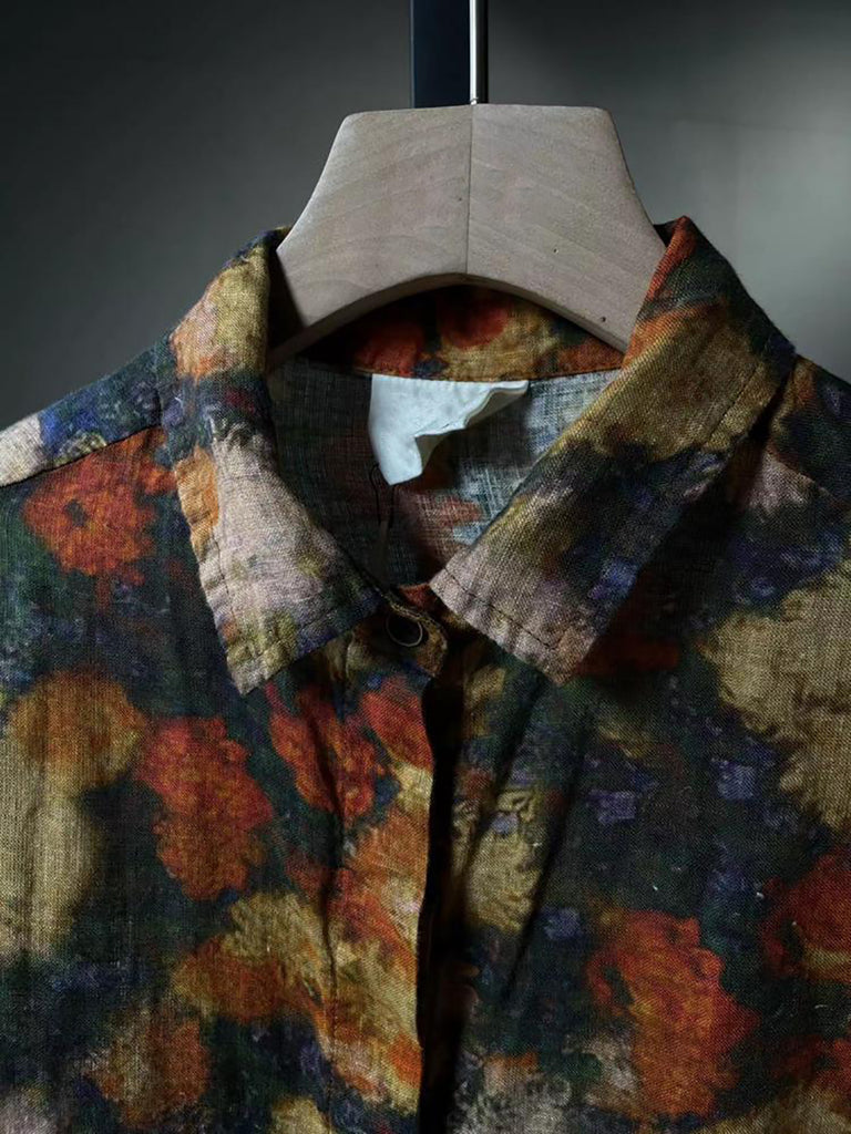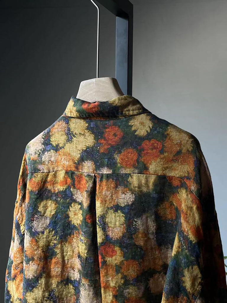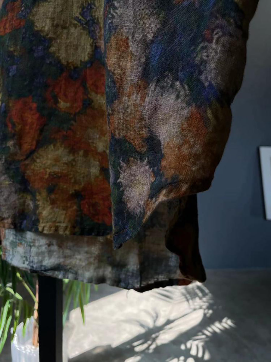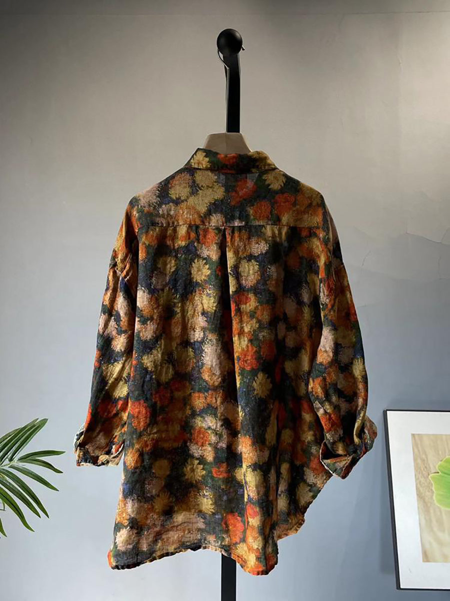 Plátěná košile Plus Size Women Summer Vintage Květinový Cardigan