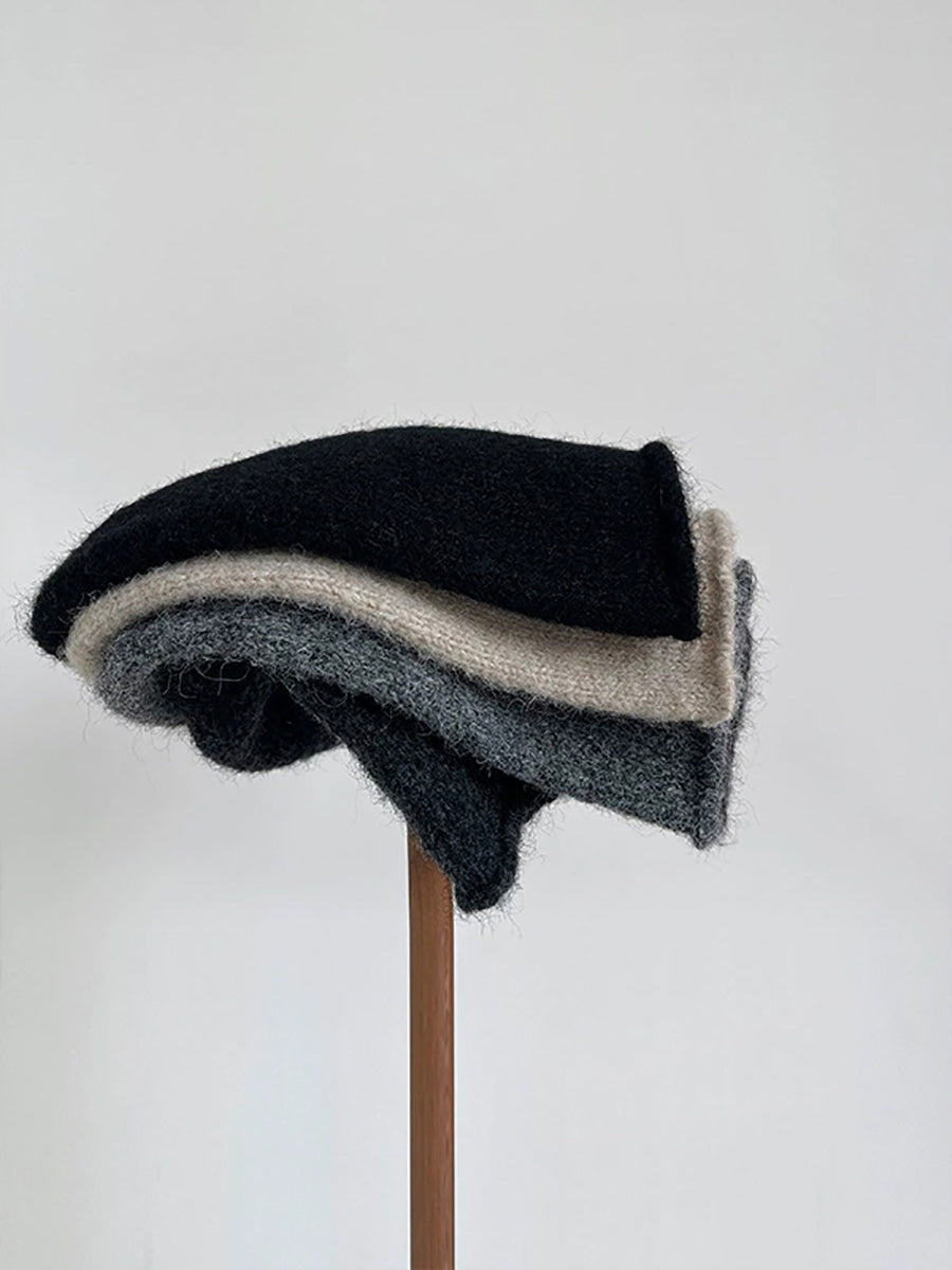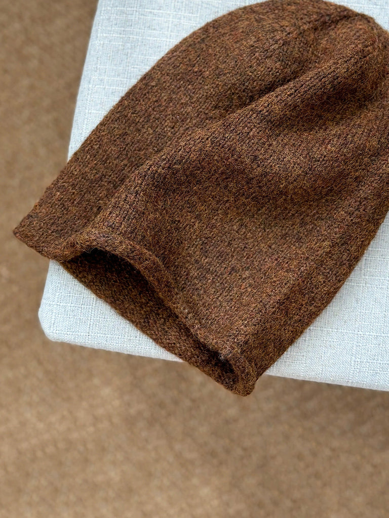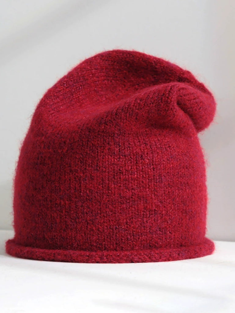 Zimní teplá umělecká čistě barevná teplá pletená čepice